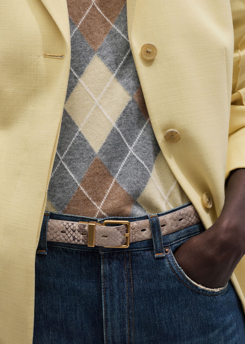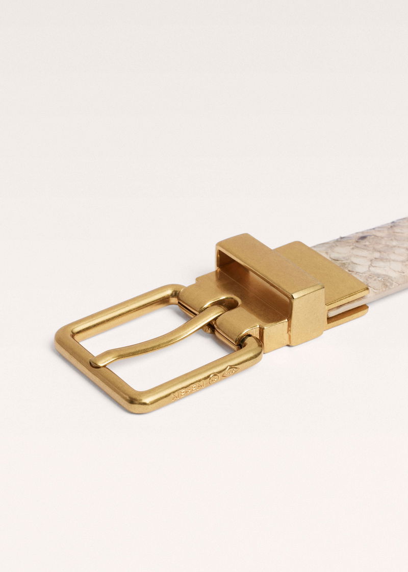 ME+EM's Snake Print Reversible Belt is crafted from snake-embossed Italian leather on one side and a neutral cream hue on the other for two looks in one.