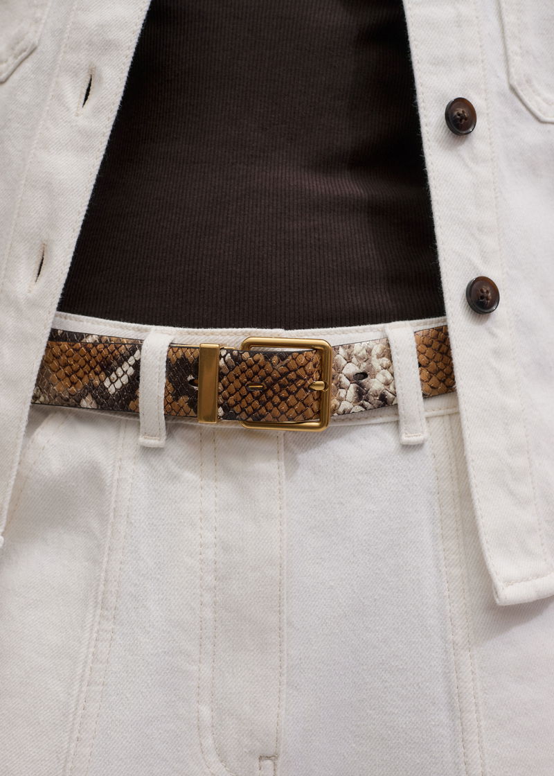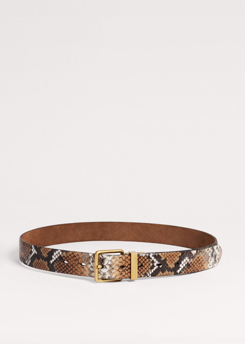 ME+EM's Tan Snake Print Reversible Belt matches our Point Toe Flat to build a cohesive head-to-toe look.