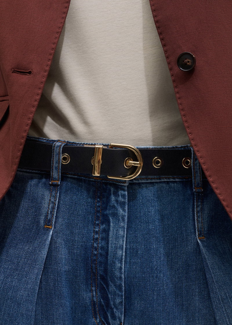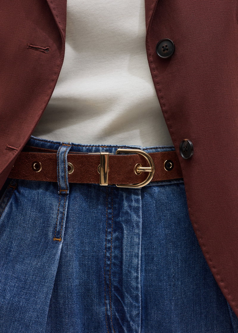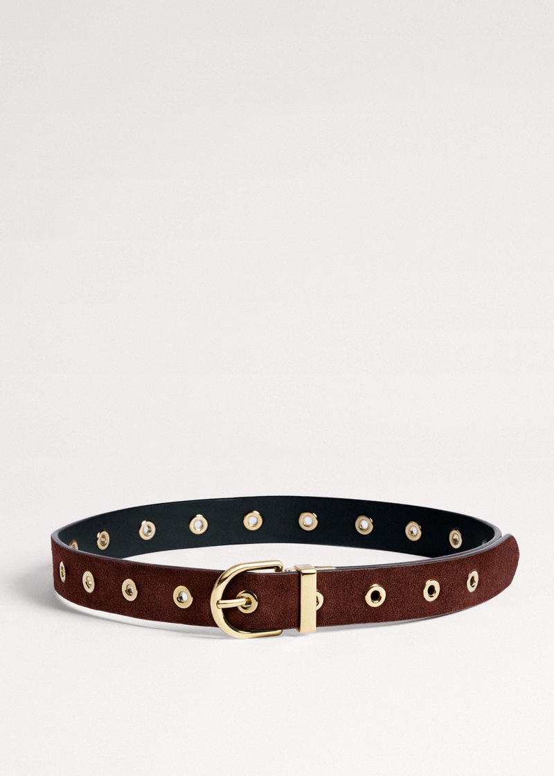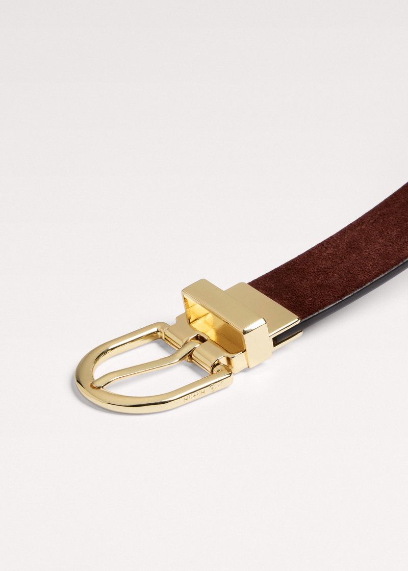 ME+EM's Black Reversible Eyelet Belt features Italian black leather on one side and soft Chestnut brown suede on the other.