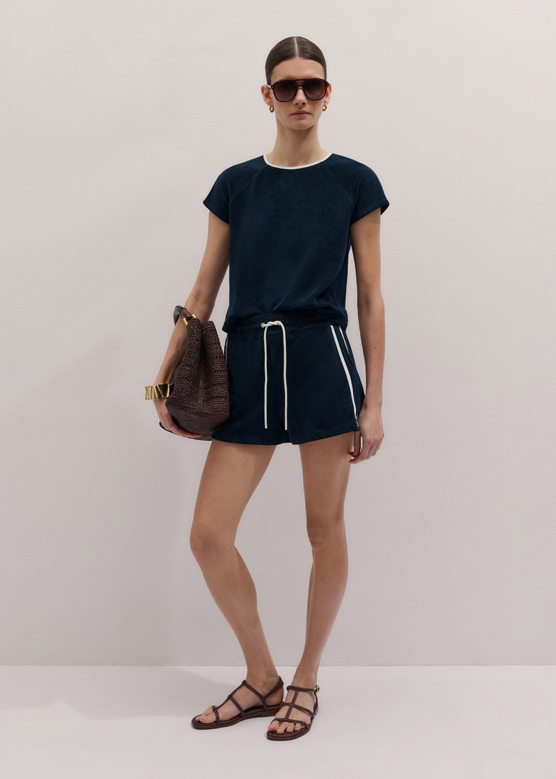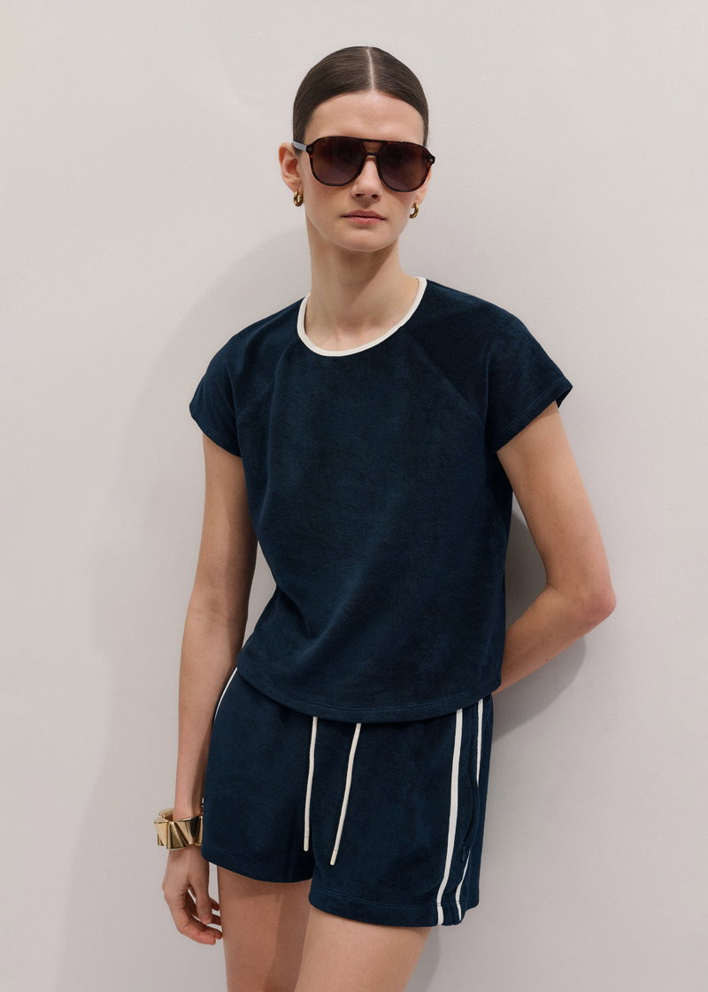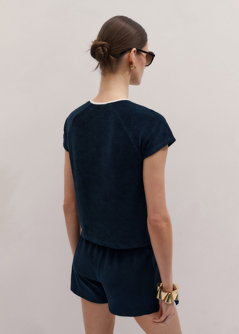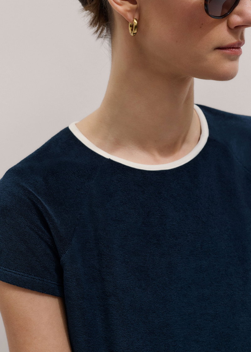 ME+EM's Navy Towelling Rib Trim Baby Tee features raglan seams which add structure to the relaxed fit.