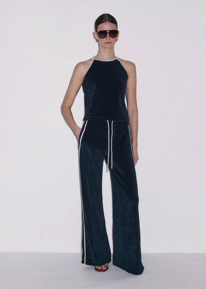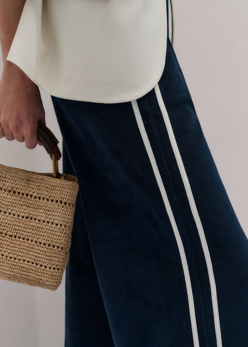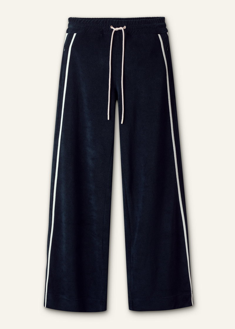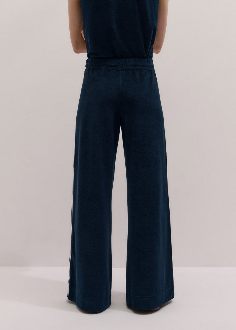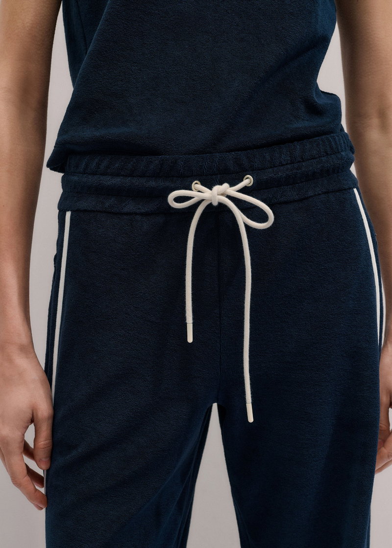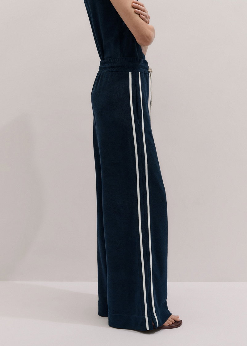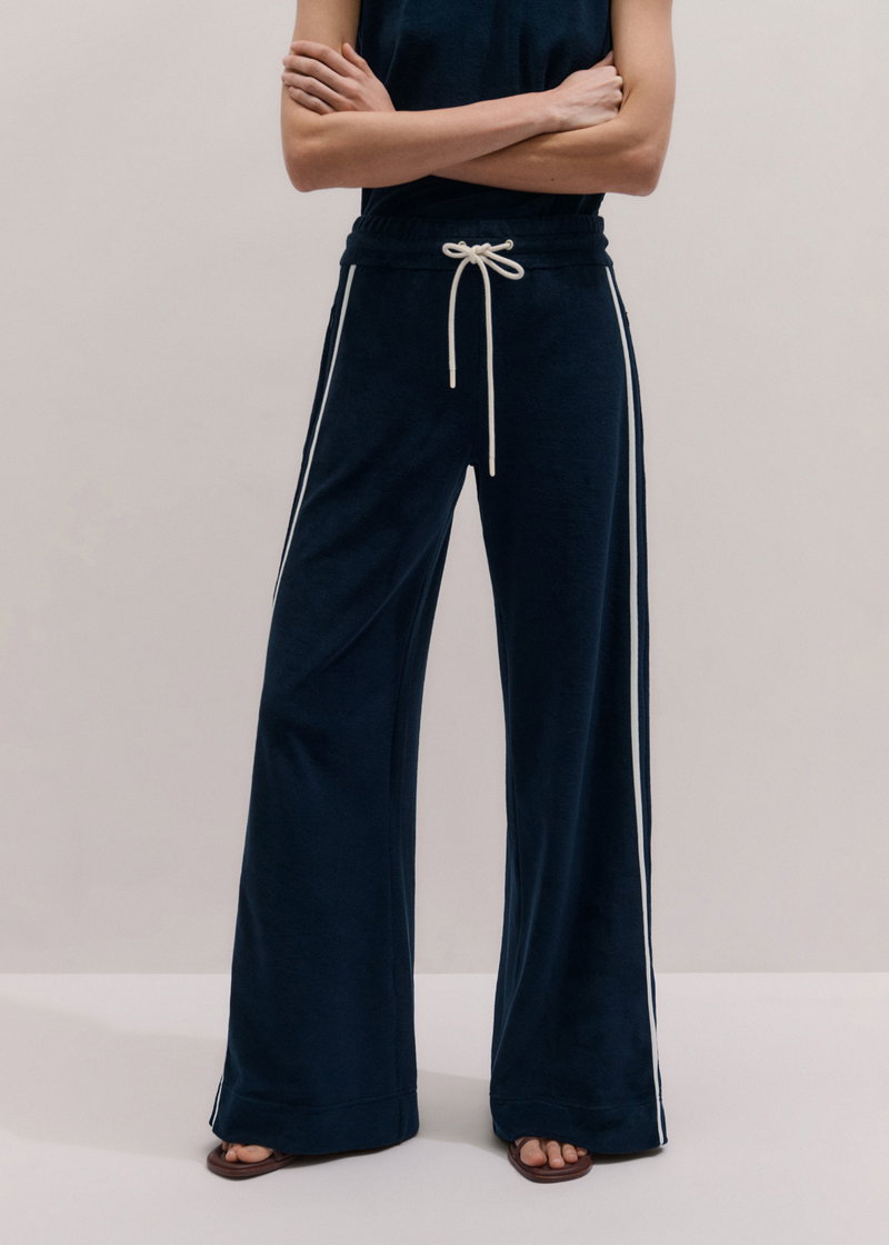 ME+EM's Navy Rib Trim Track Pant is crafted from textured towelling and fitted with an elasticated, drawstring waistband for all-day comfort.