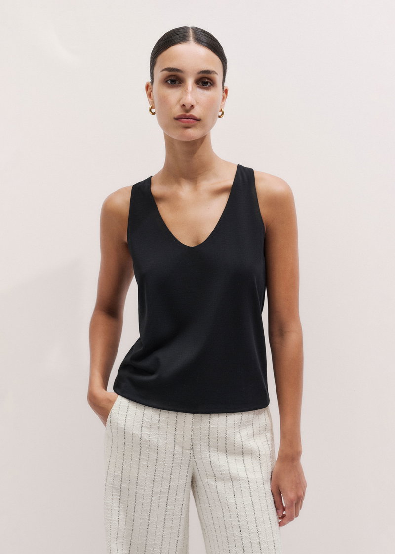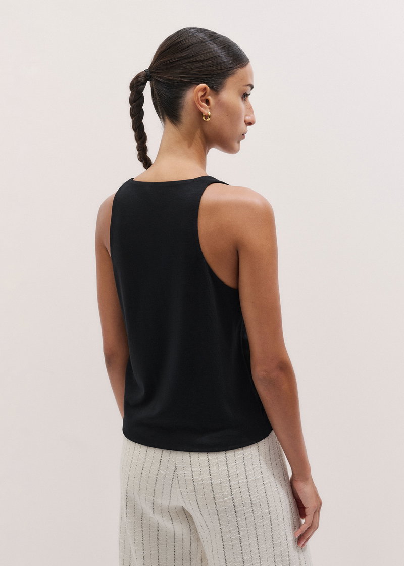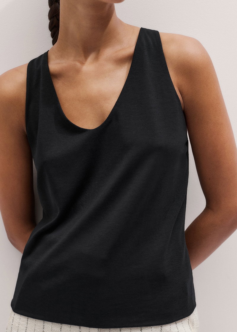ME+EM's Black Scoop Neck Vest complements seamless styling with tailoring and knitwear for bulk-free layering.