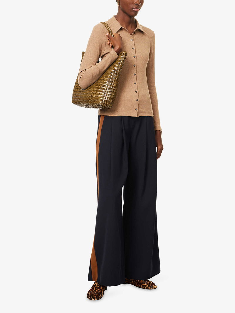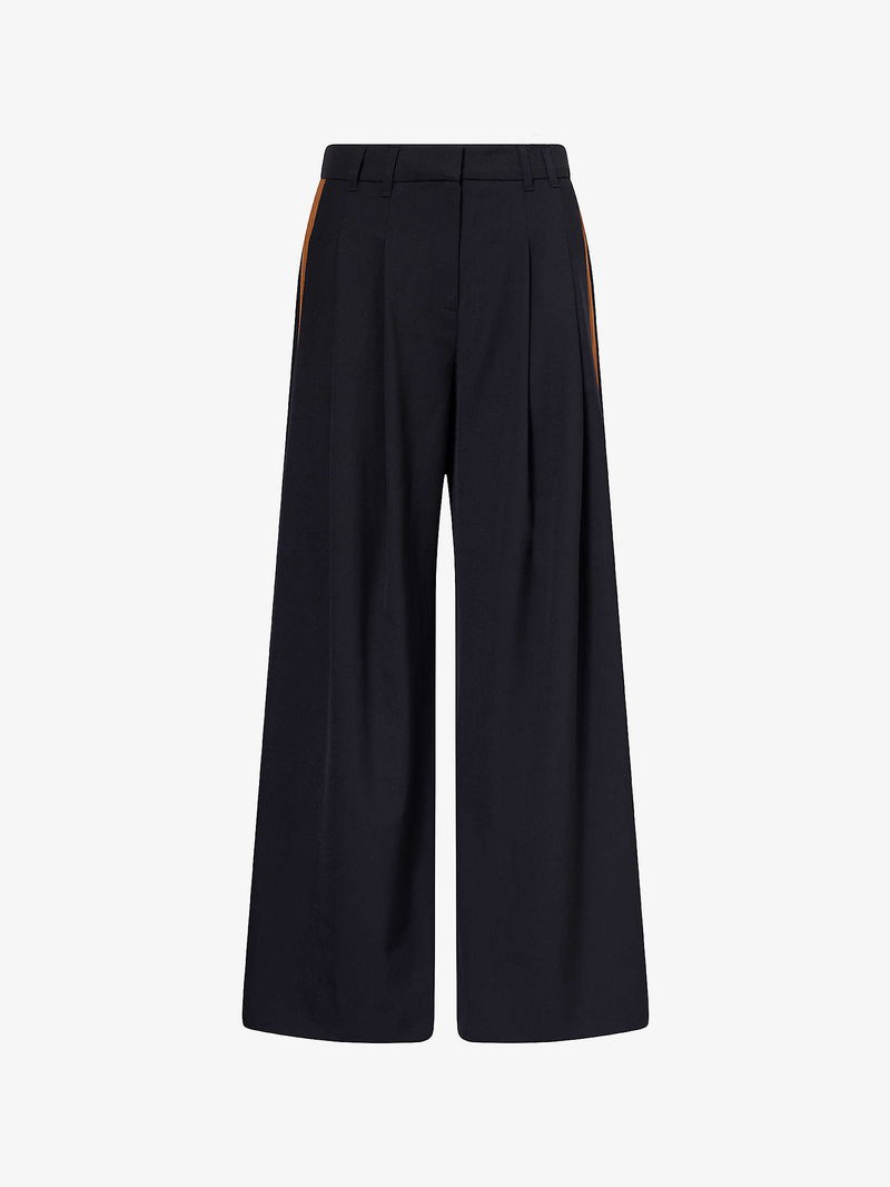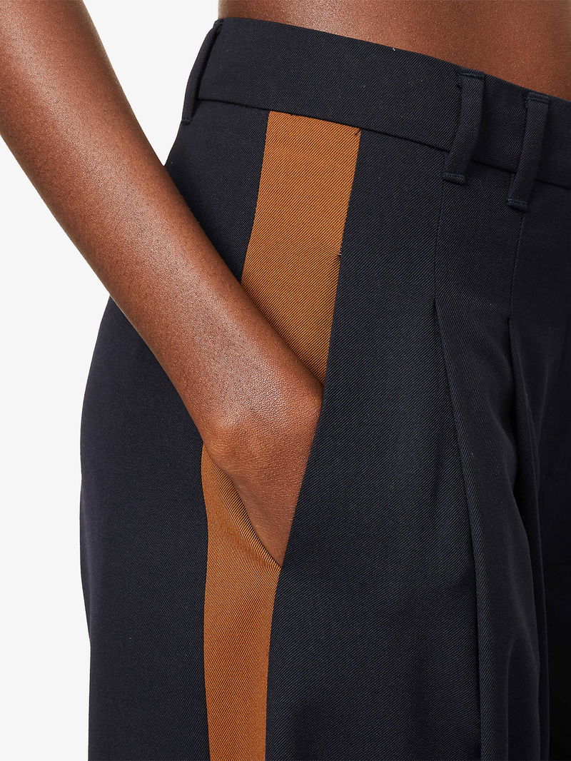Side-Stripe Wide-Leg Wool-Blend Trousers