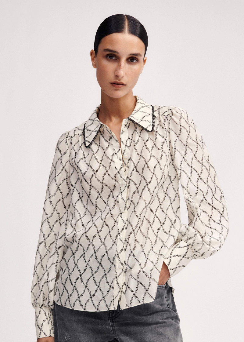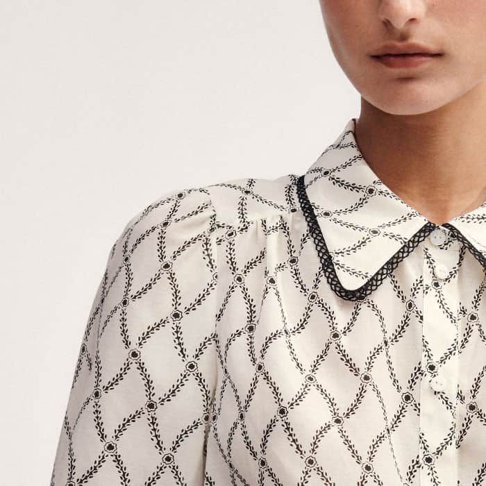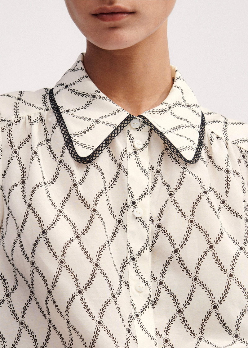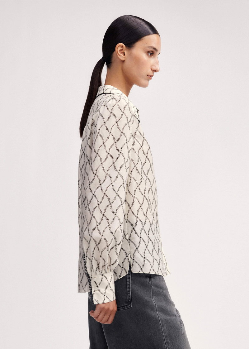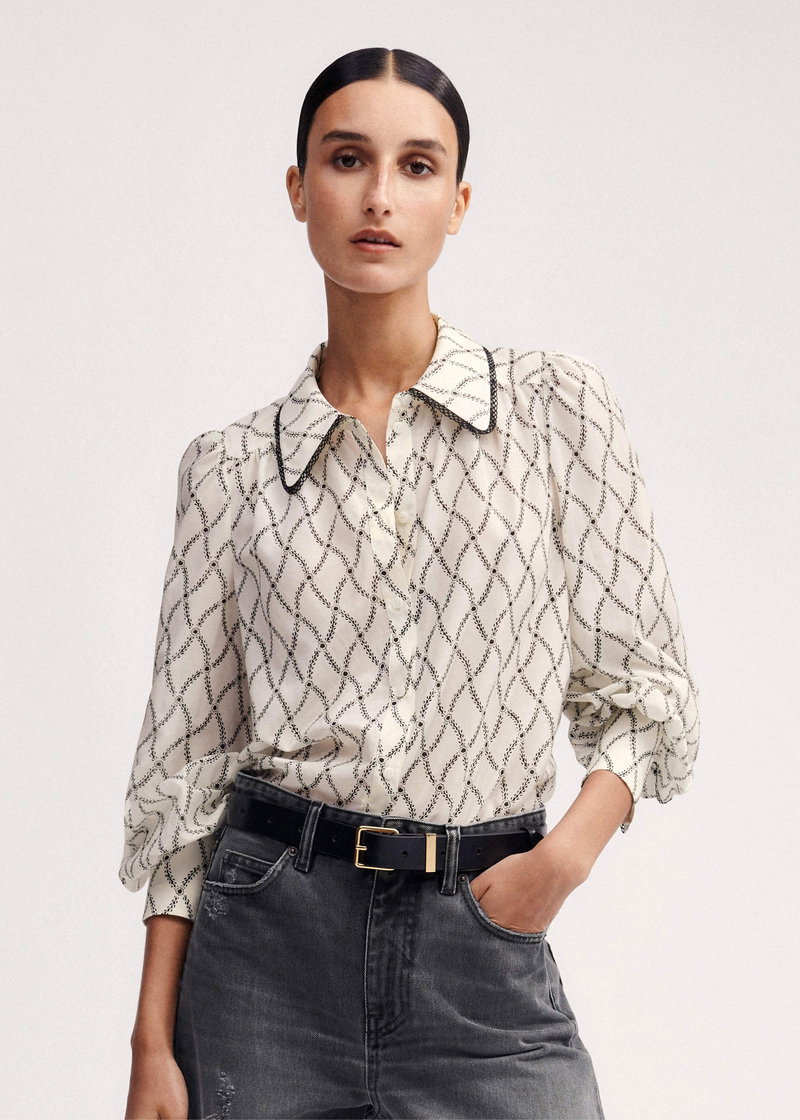 ME+EM's Cream Silk Cotton Trellis Floral Print Blouse is made from a soft blend of silk and cotton with a slight sheen for a lightweight, breathable finish.