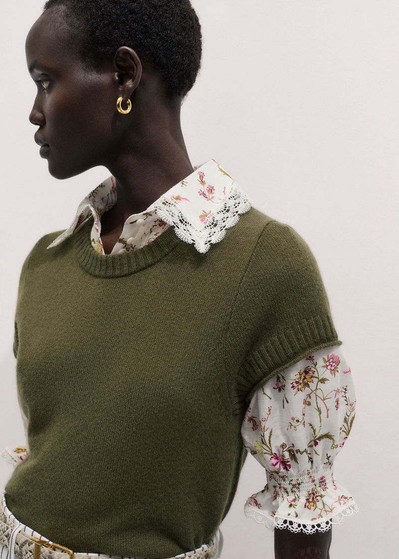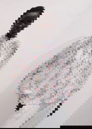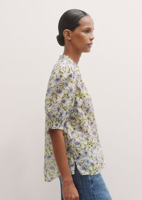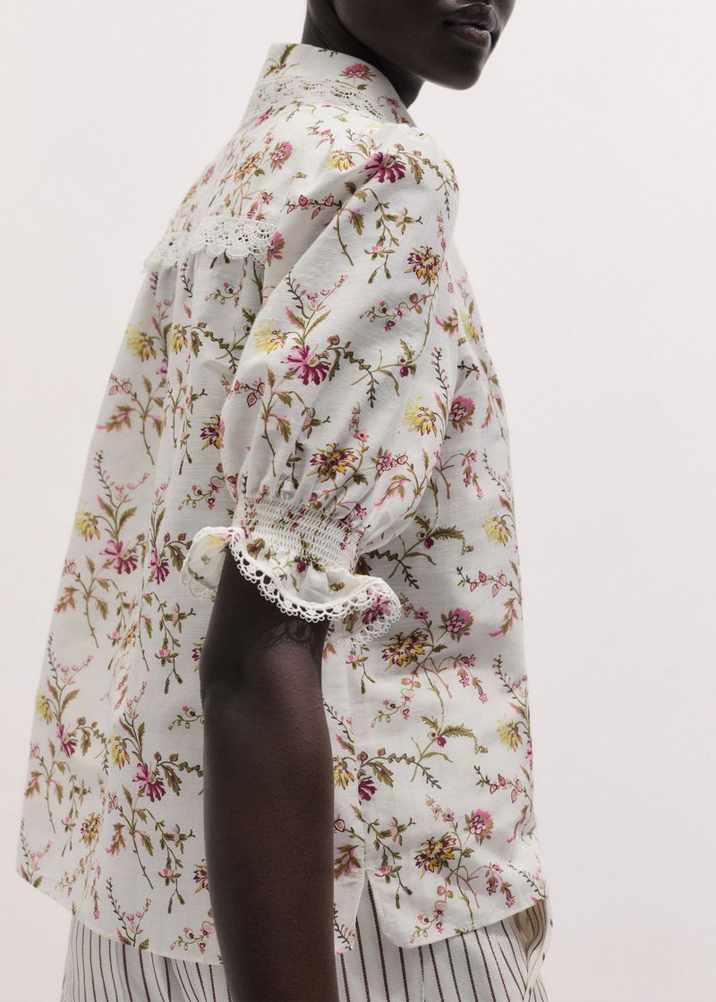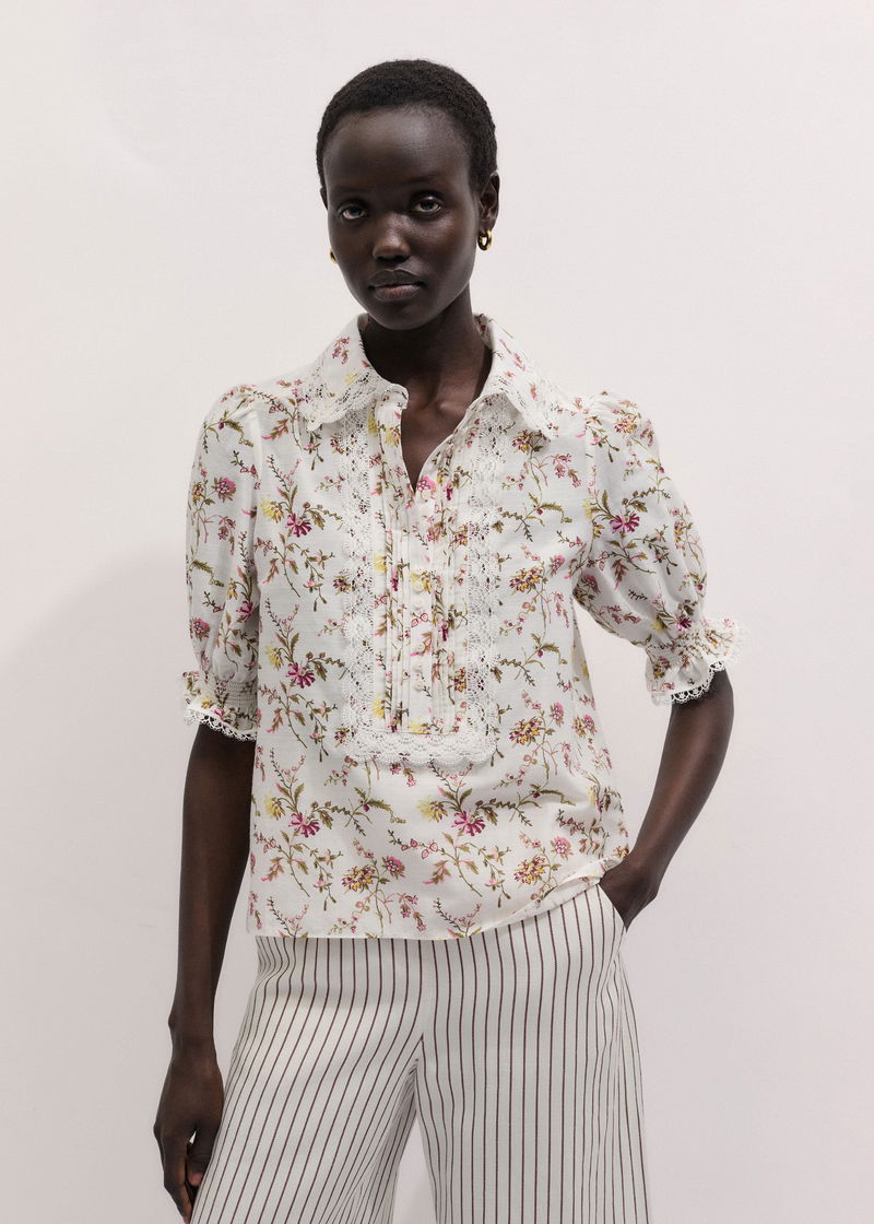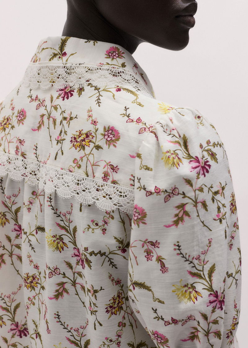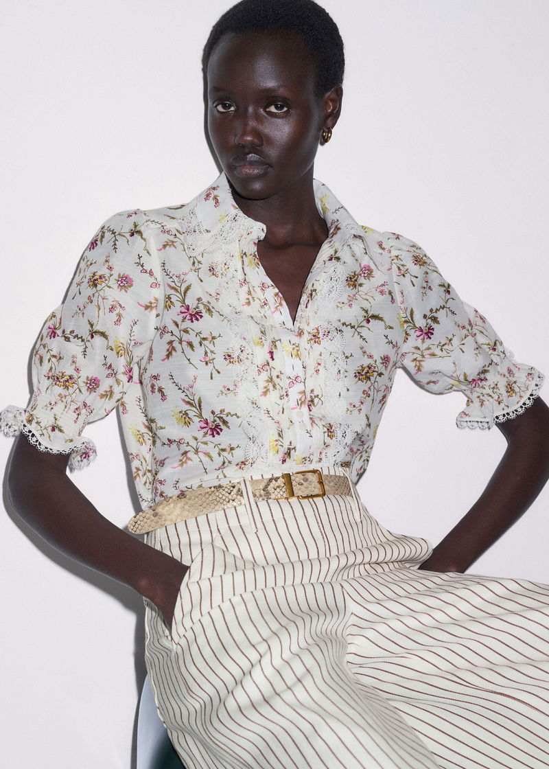 ME+EM's Cream Silk Cotton Wild Spring Floral Print Blouse is crafted from a blend of silk and cotton with a contrasting lace trim.