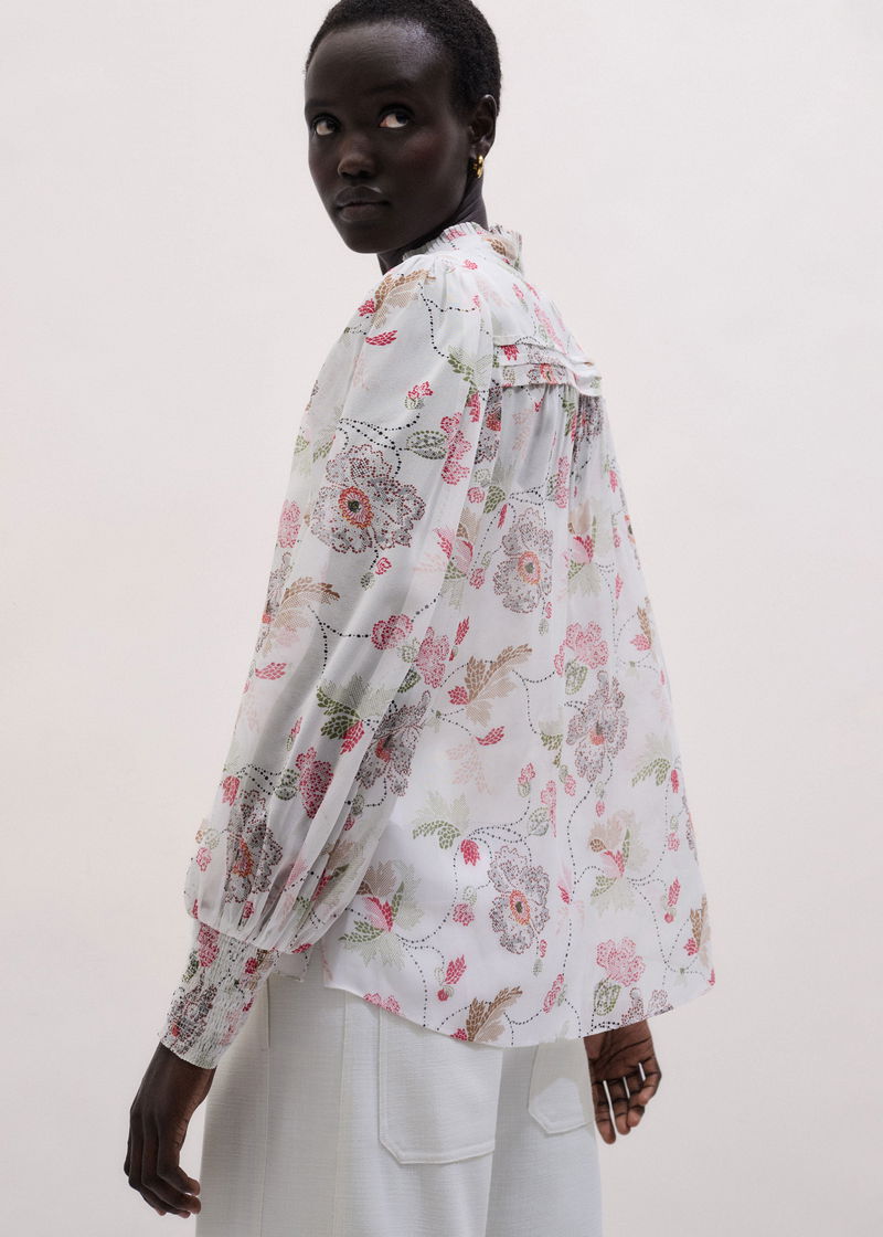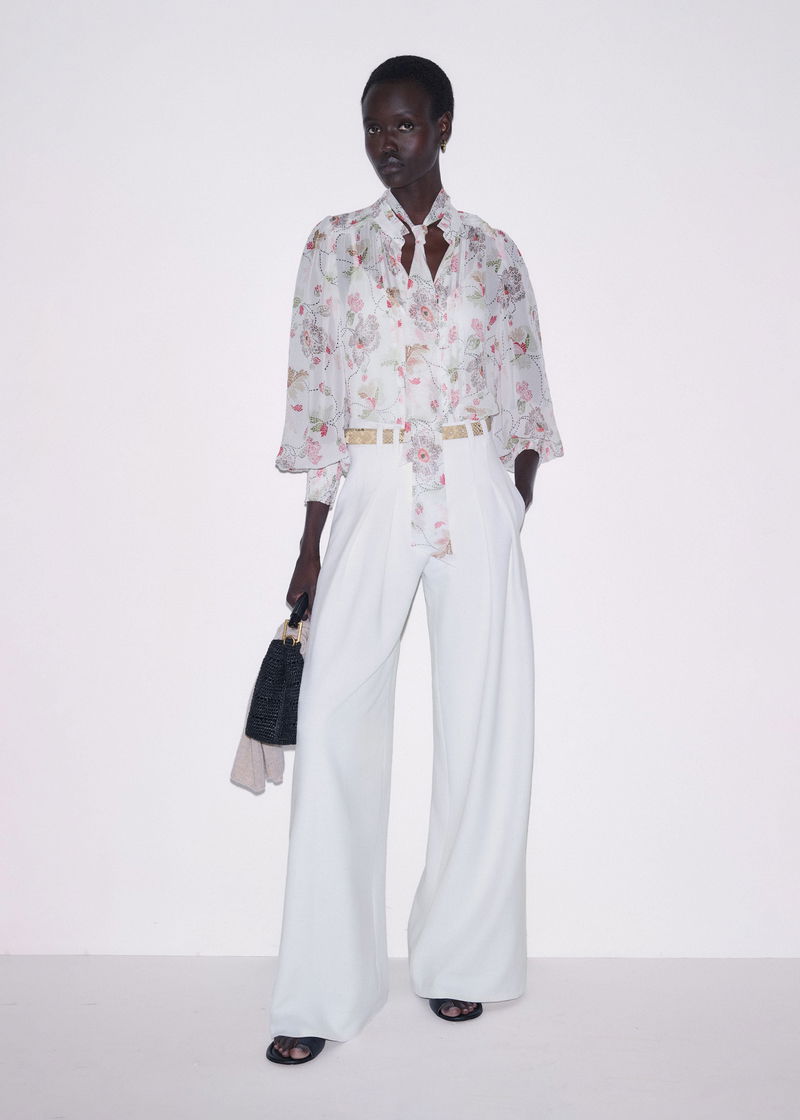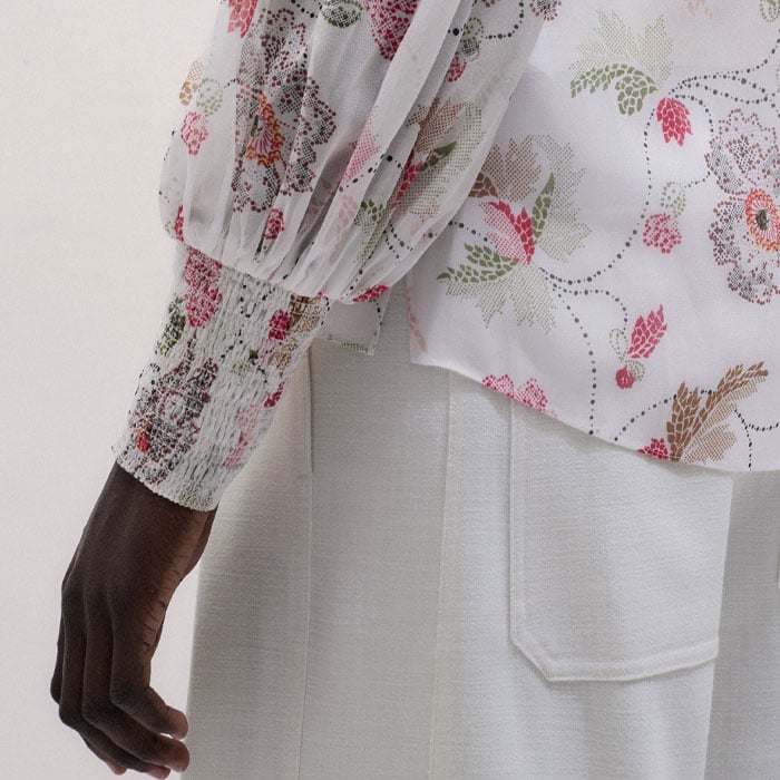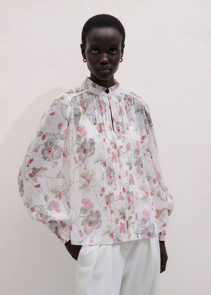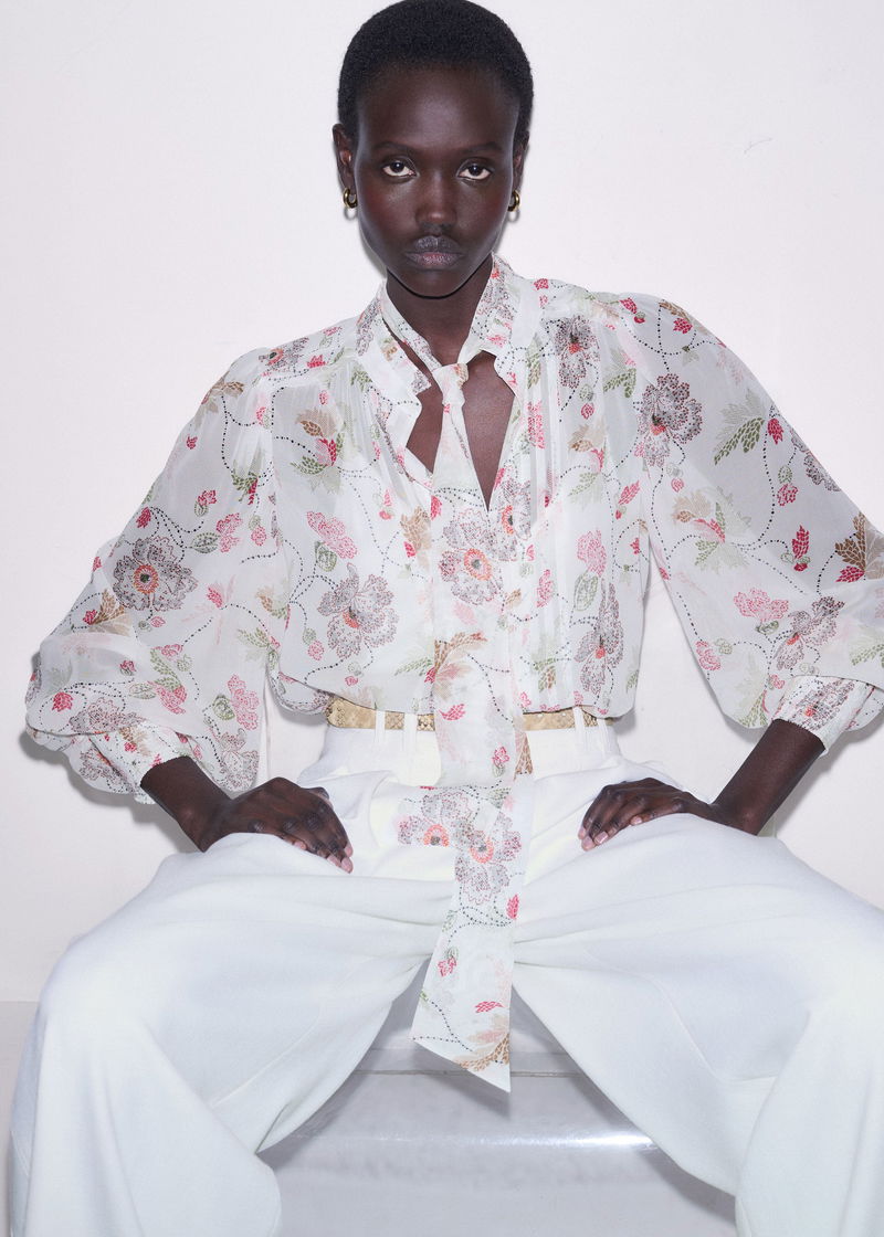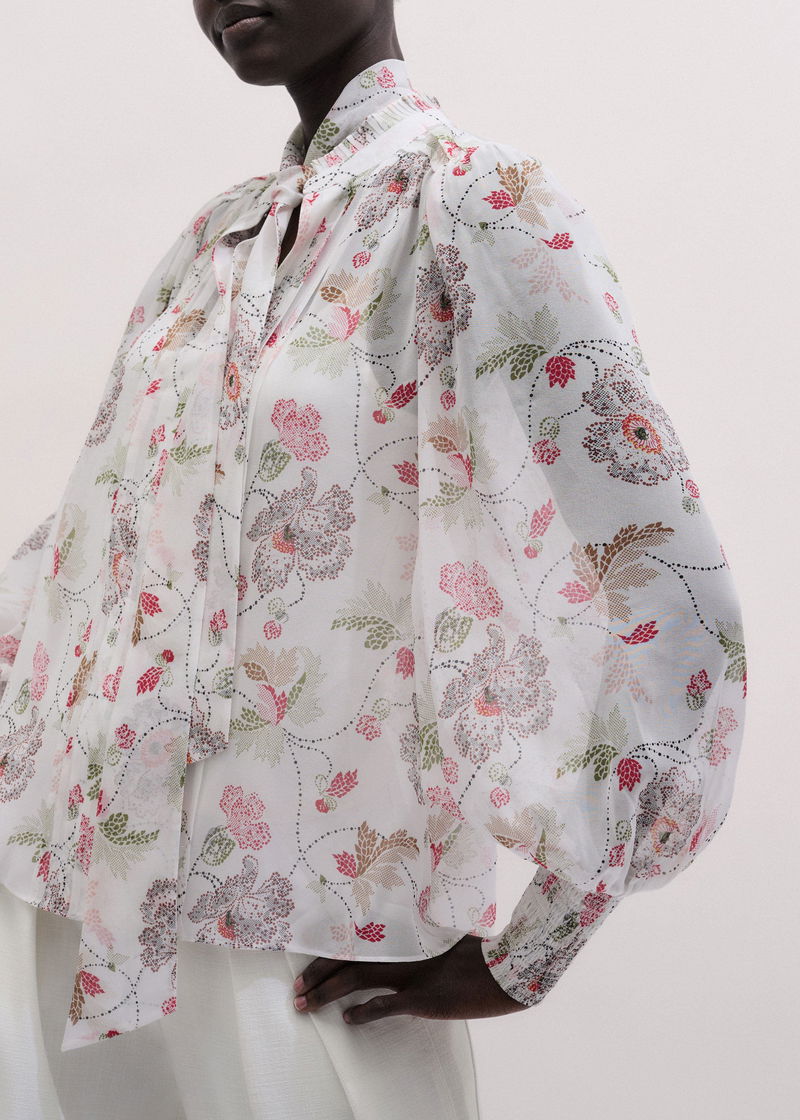 ME+EM's Cream Silk Balloon Sleeve Blouse is cleverly crafted with a matching necktie and an optional cami top for coverage through the silk fabric.