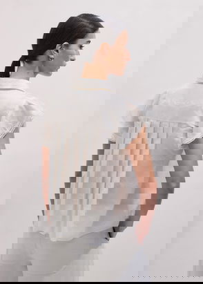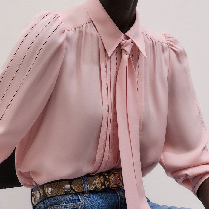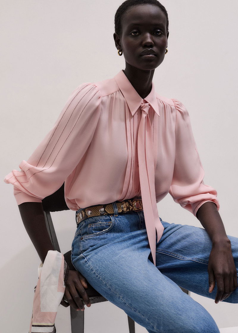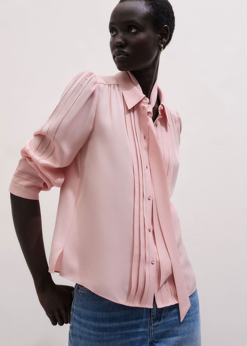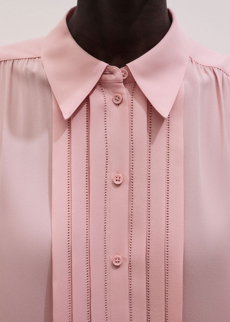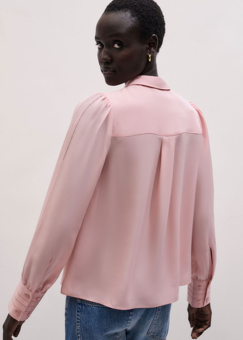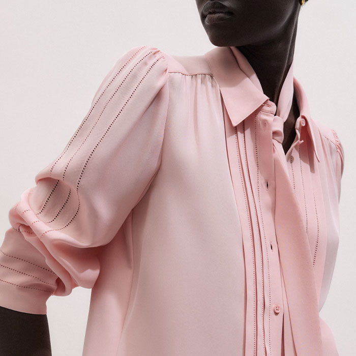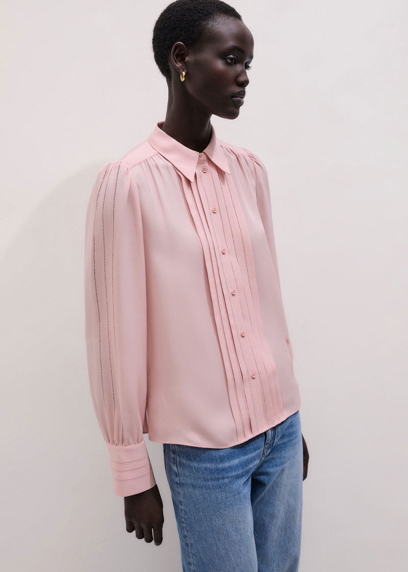 ME+EM's Pink Silk Feminine Embroidered Fluid Straight Blouse features a split at the hem to ensure a fluid drape and to tuck into trousers with ease.