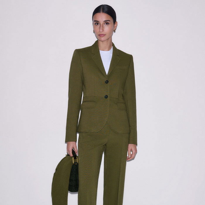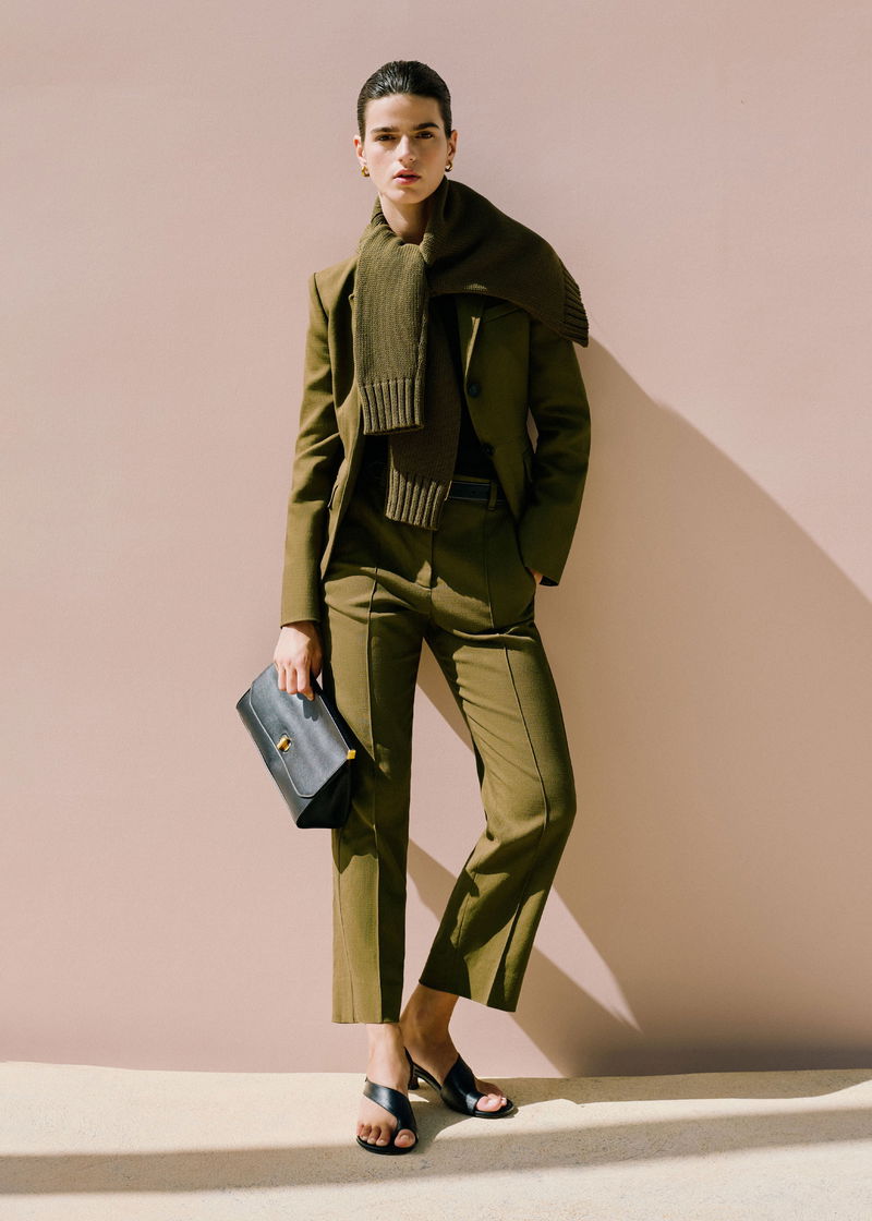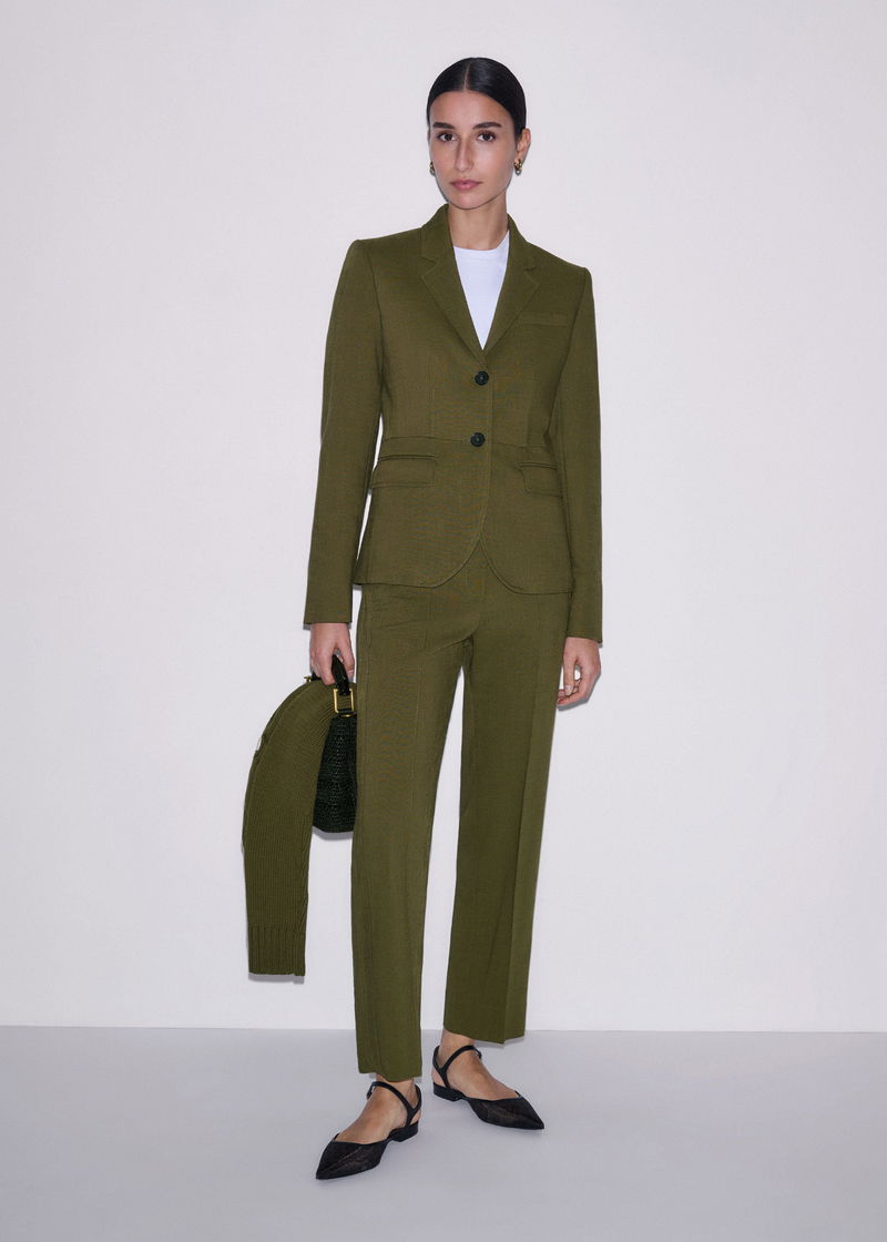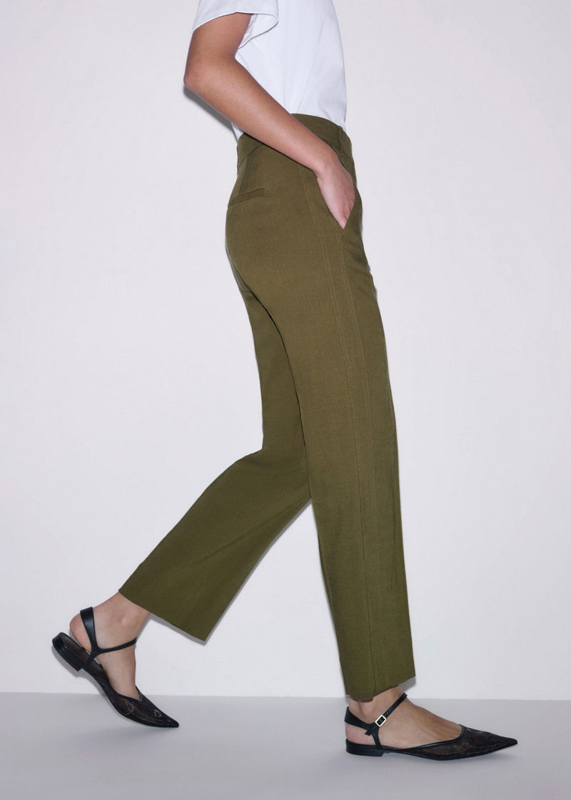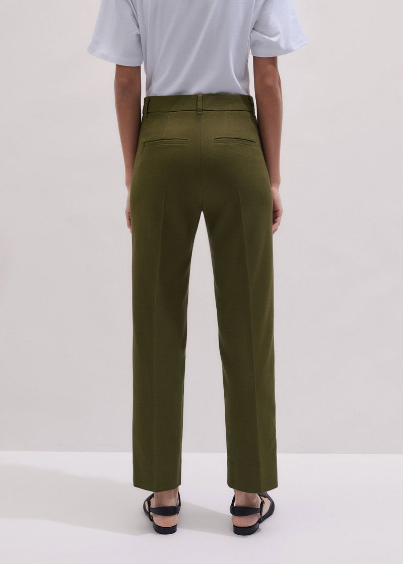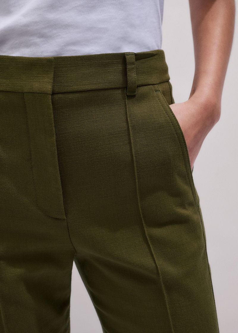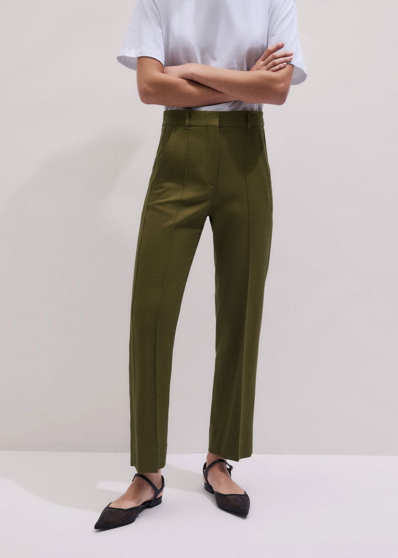 ME+EM's Olive Green Slim Crop Trouser is crafted from a classic textured tailoring fabric, imbued with elastane for subtle stretch.