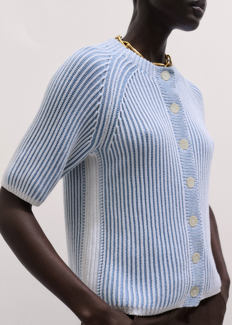 ME+EM's Blue Soft Touch Cardigan features raglan shoulder seams for a relaxed fit.