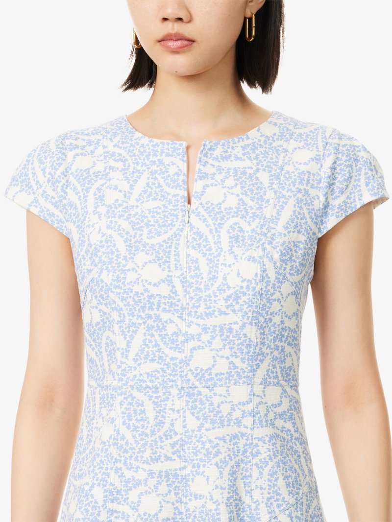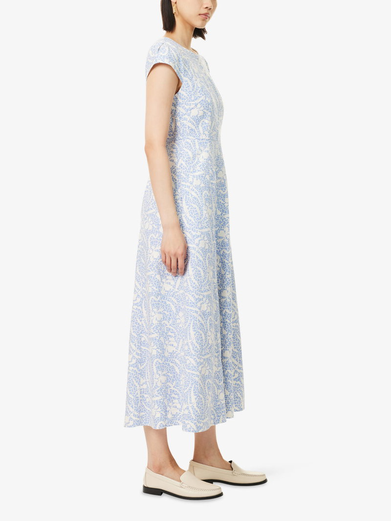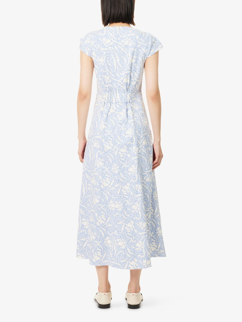 Speckled Bloom-Print Fit-and-Flare Cotton-Blend Maxi Dress