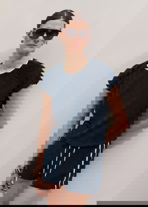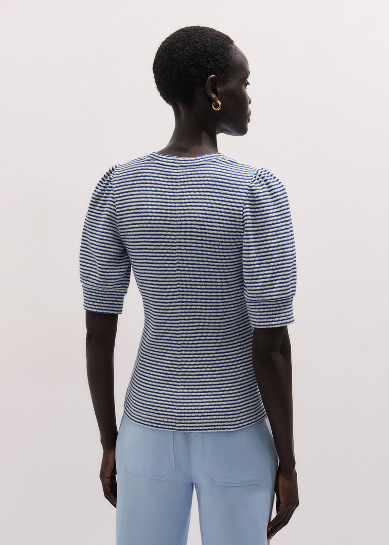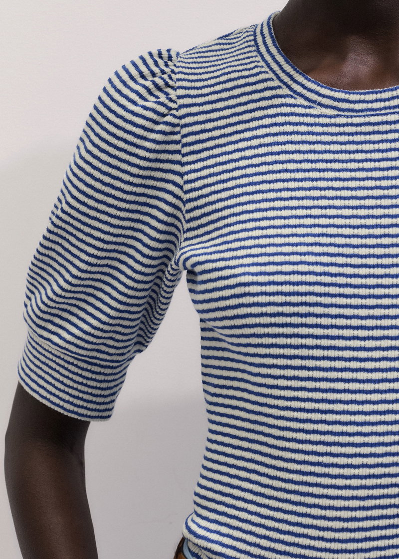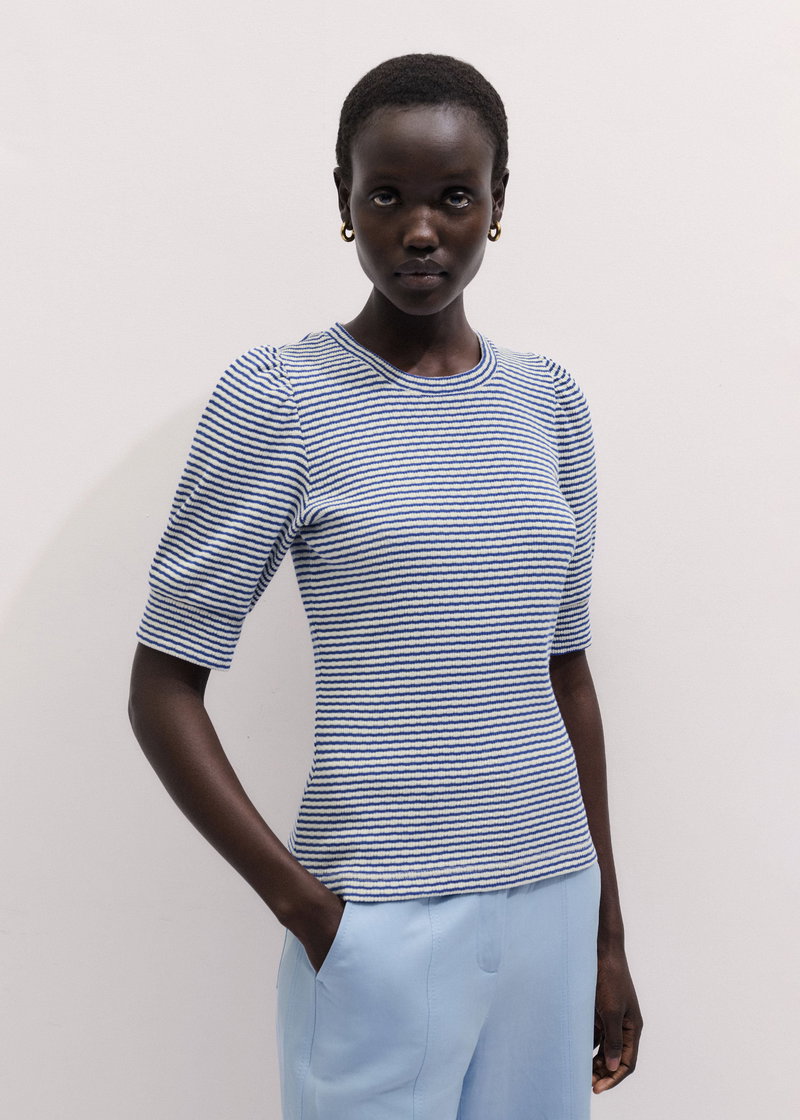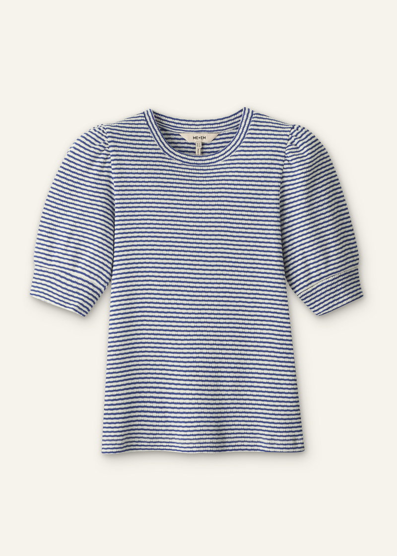ME+EM's Blue Feminine Sleeve Tee is crafted from textured cotton jersey.