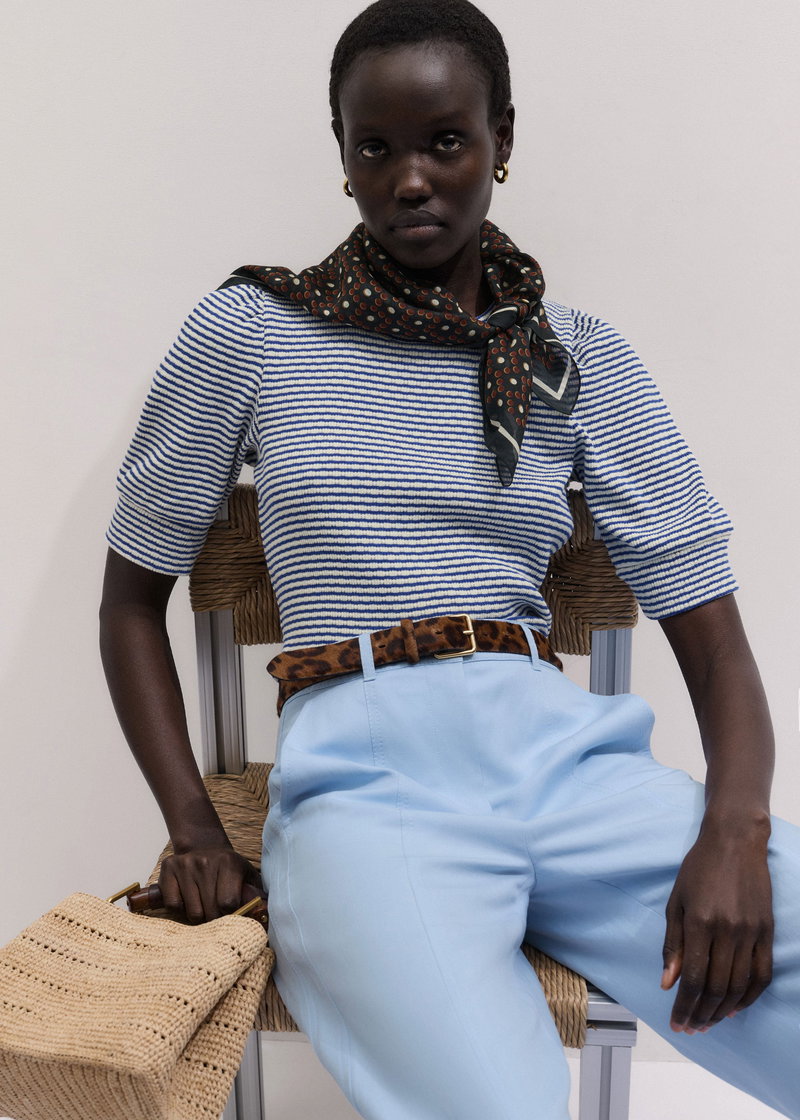 Founded by Clare Hornby in 2009, ME+EM offer what they like to call “intelligent clothes for now, this season and beyond”. Always flattering and timeless, their pieces are created to look good when styled together, and that includes their essential Breton tops, shirts and palazzo trousers.