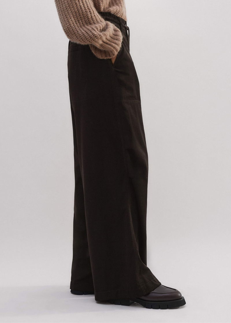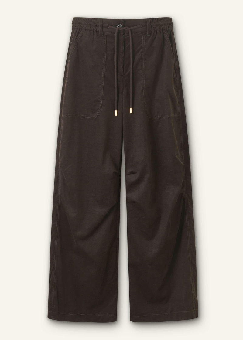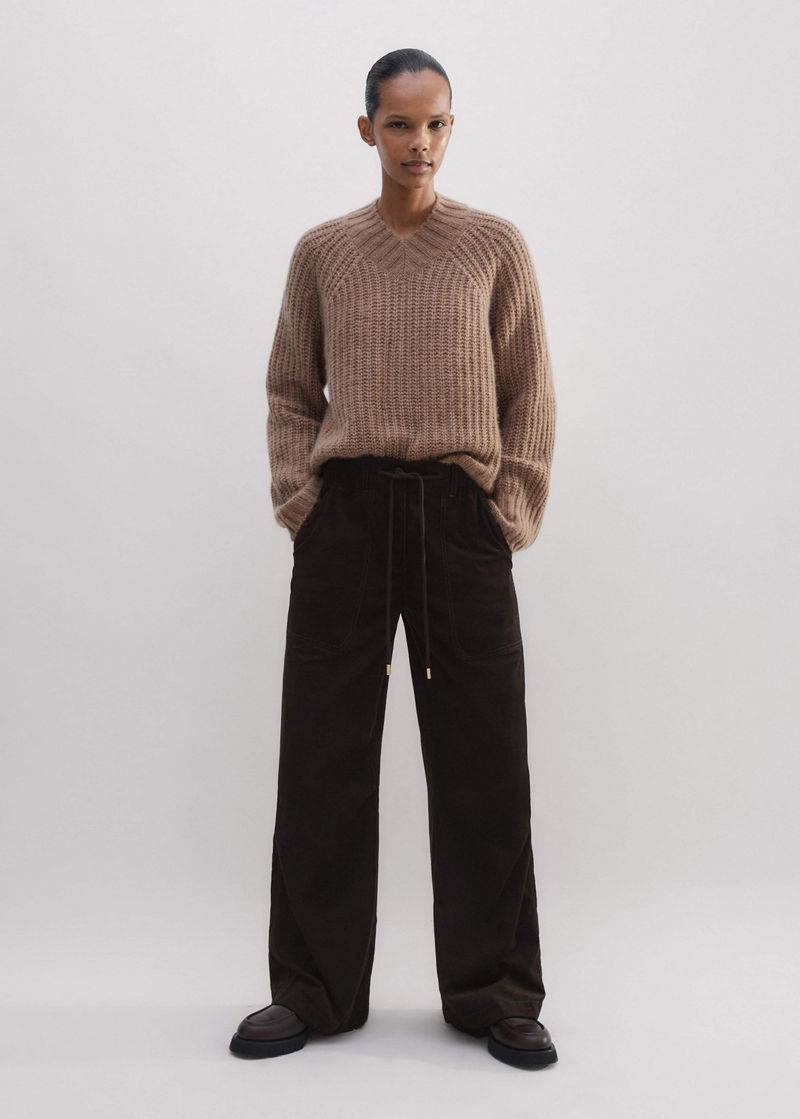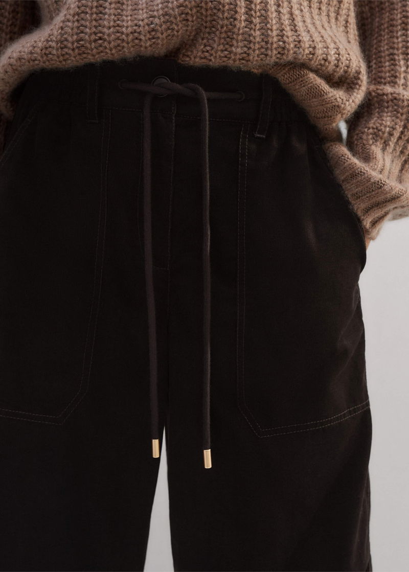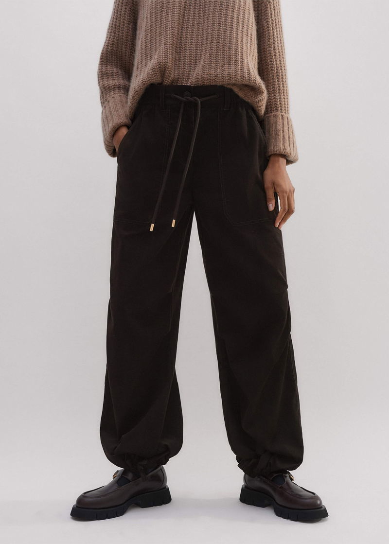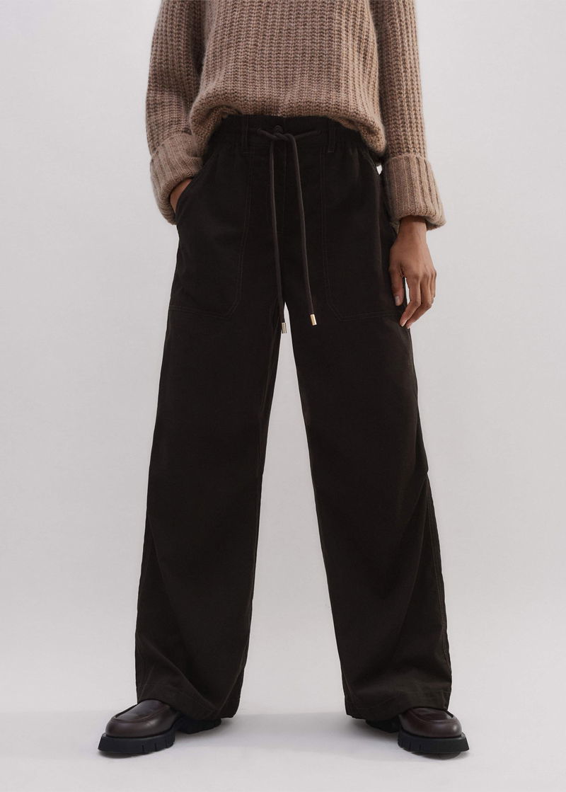 ME+EM's Brown Super Soft Micro Cord Trouser is intelligently designed with drawstring hems to customise the shape of the leg from a straight leg to a parachute style.