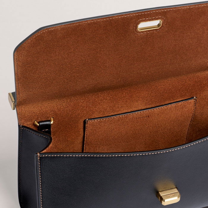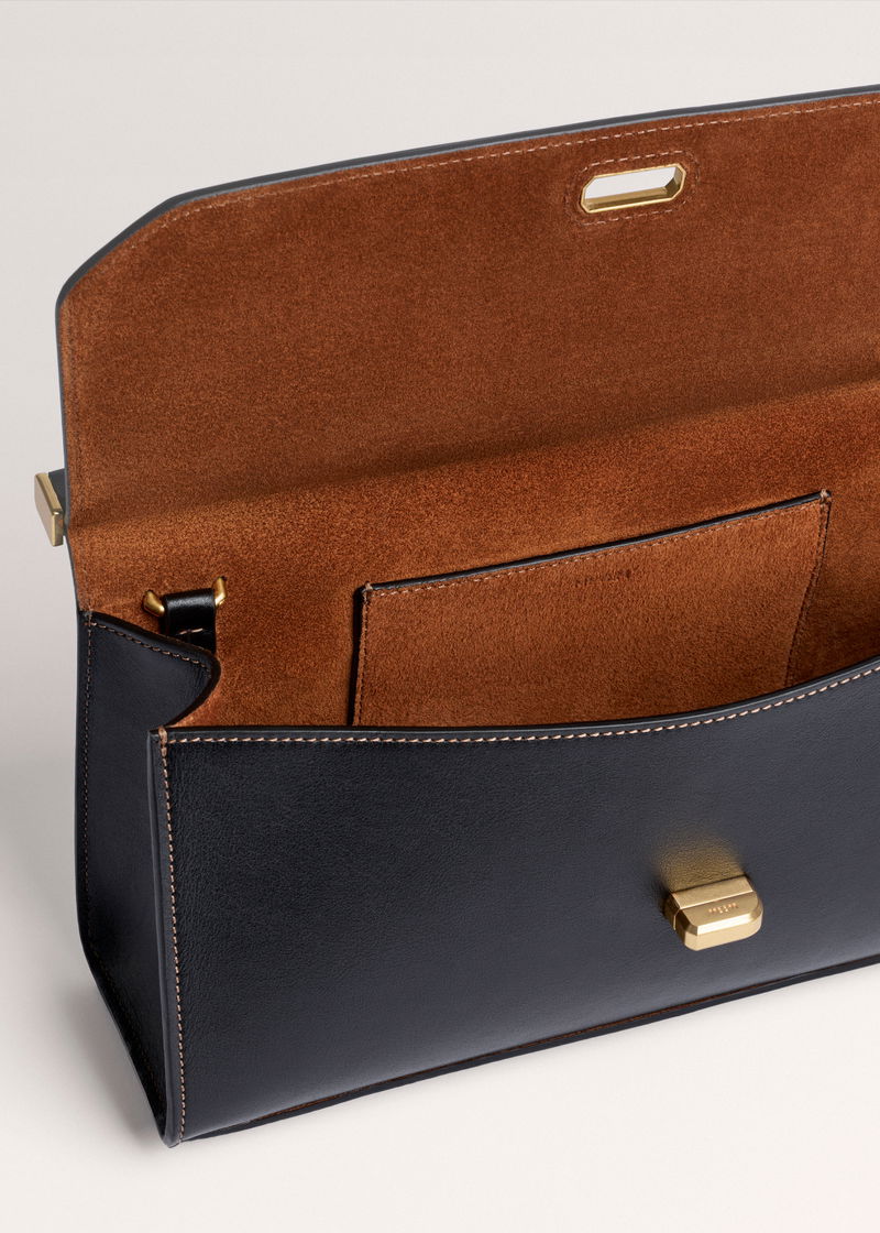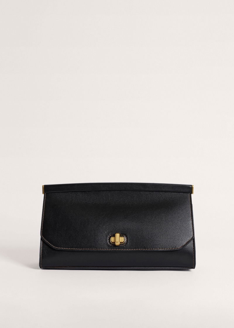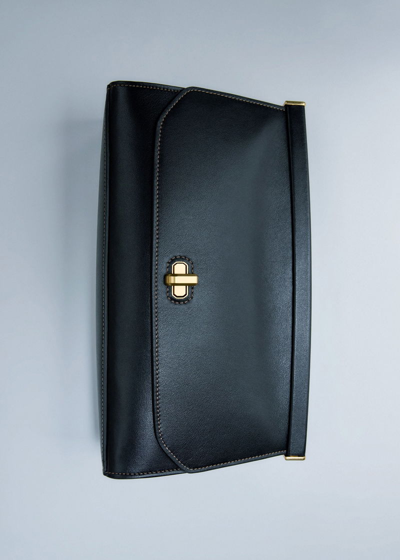 ME+EM's Black Tailored Clutch Bag is crafted from supple Italian leather, topped with a leather-wrapped metal bar for a secure, structured shape.