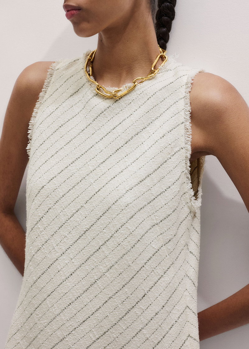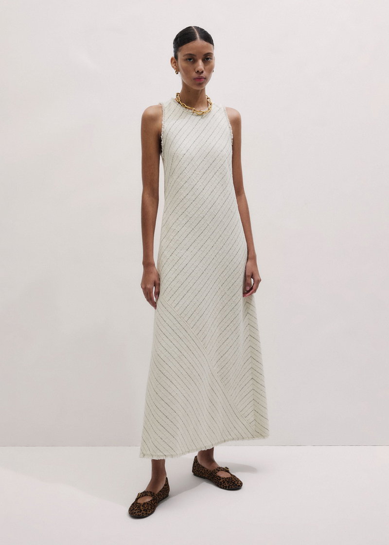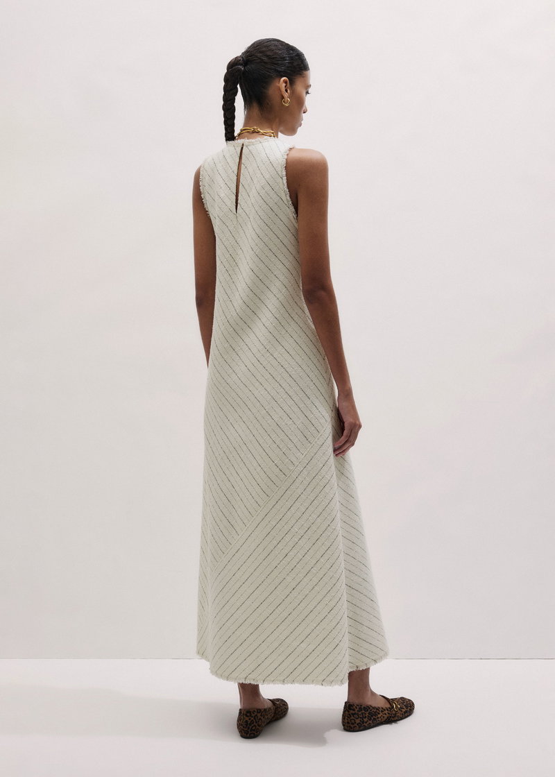Textured Stripe Bias Cut Maxi Dress Ivory