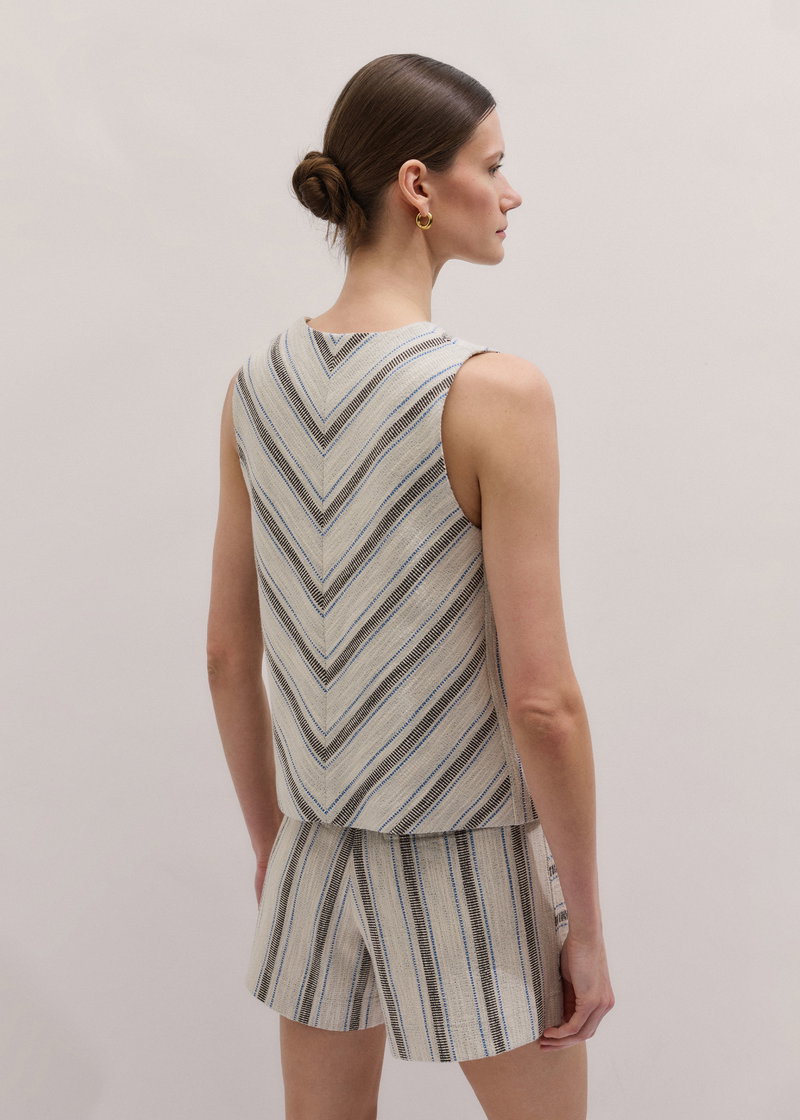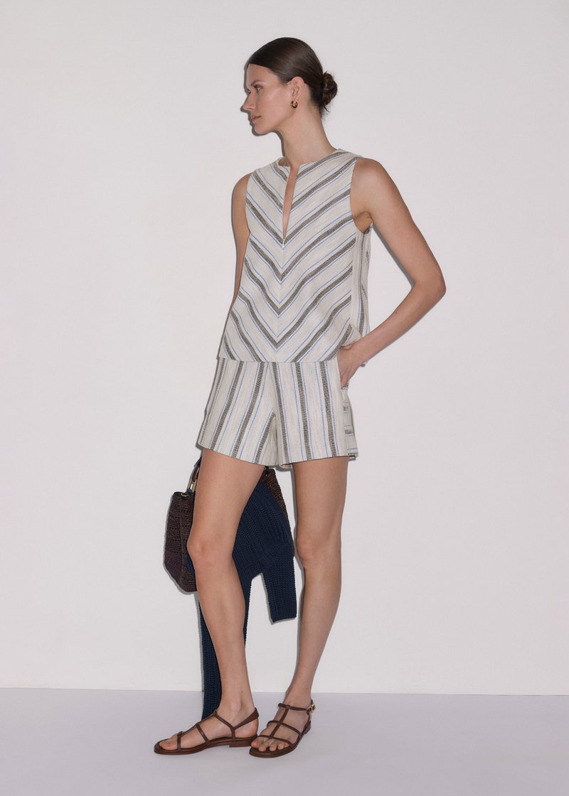 ME+EM's Cream Stripe Swing Top features a subtle zip fastening at the neckline for a customisable amount of coverage.