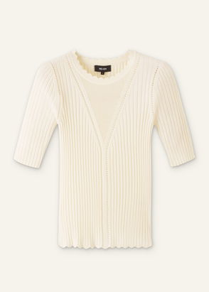ME+EM's Cream Two-Way Zip Stripe Slim Tee is crafted from a merino wool-blend with comfortable stretch and recovery.