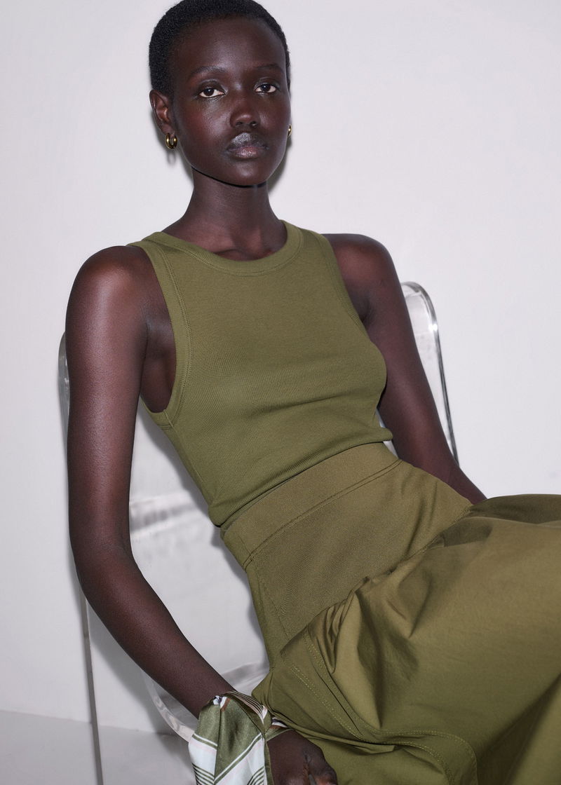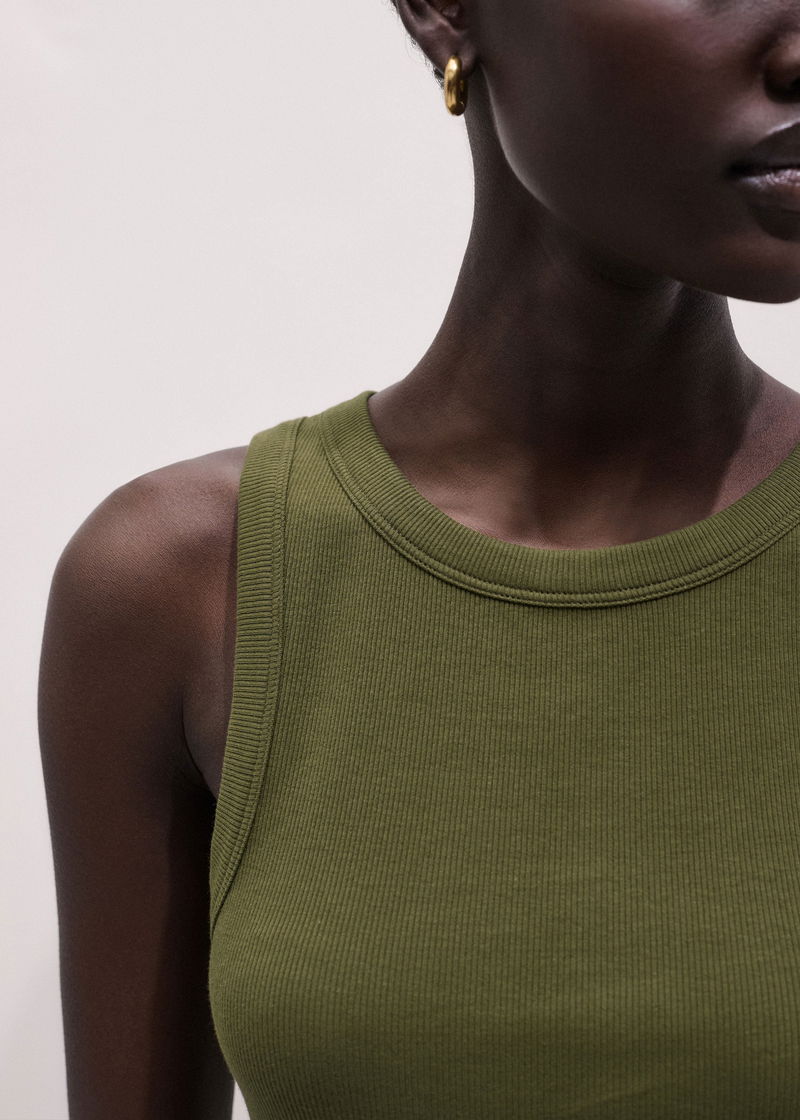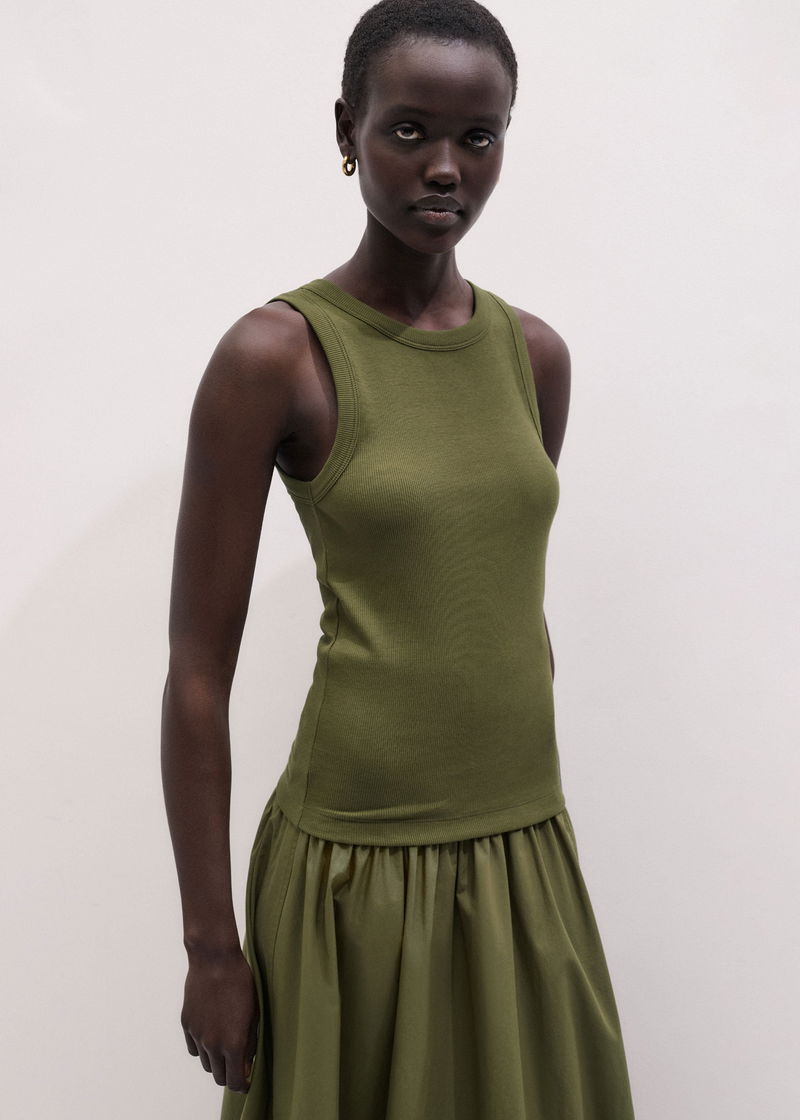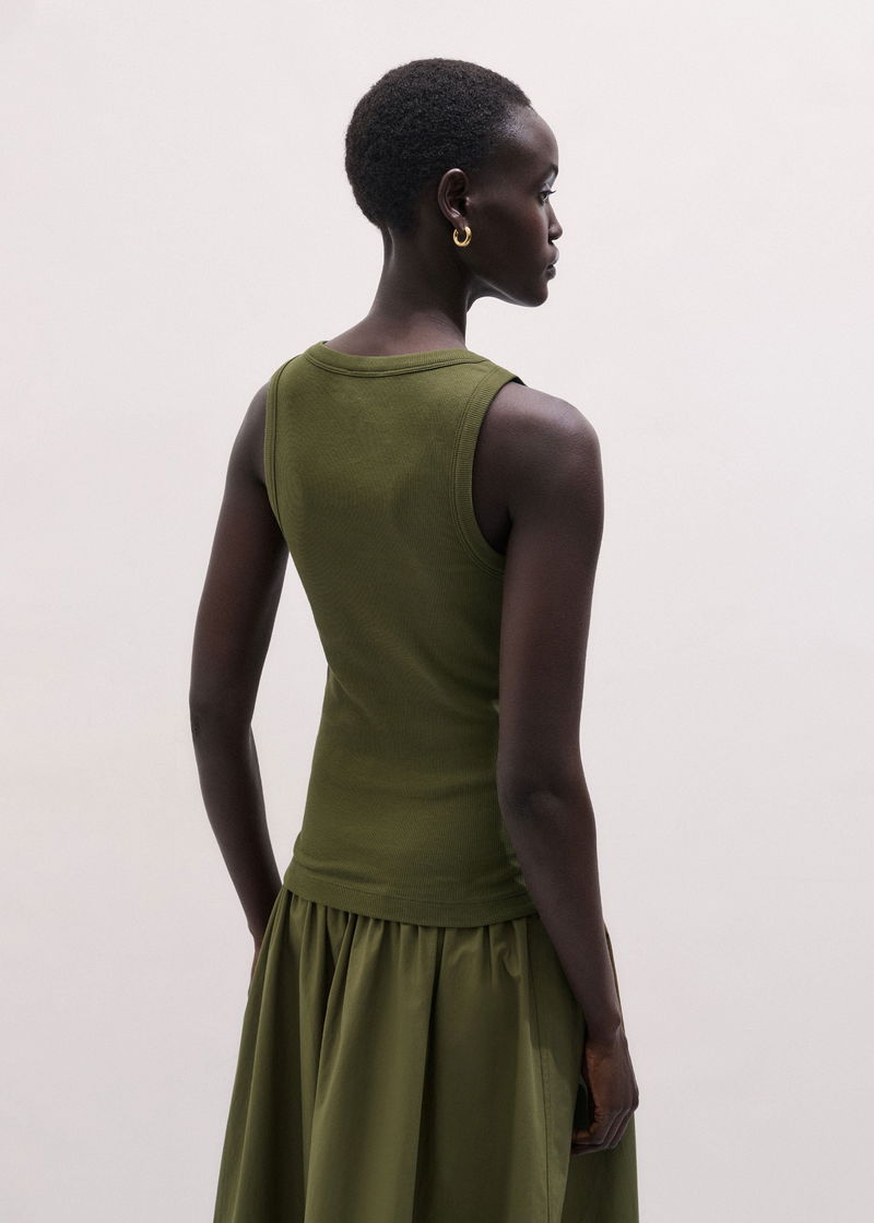 ME+EM's Olive Green Perfect Basic Vest is made from a lightweight cotton-rib jersey infused with stretch for extra comfort and a slim fit.