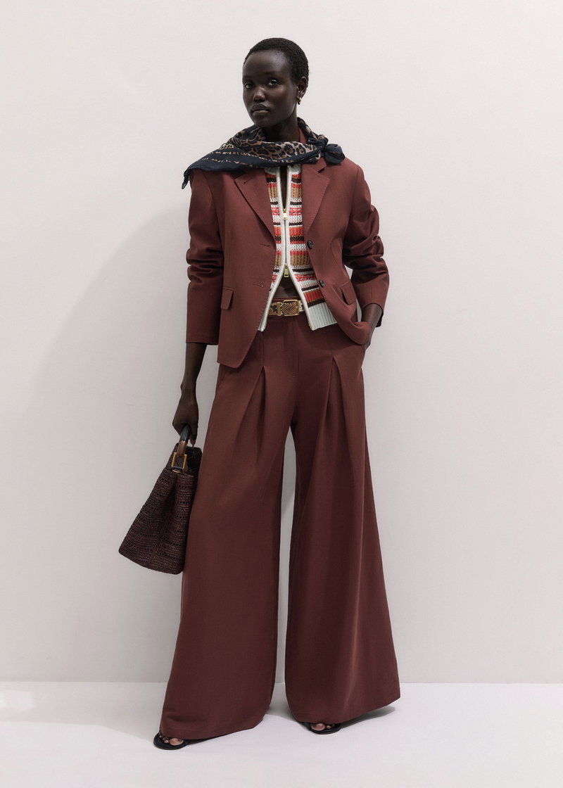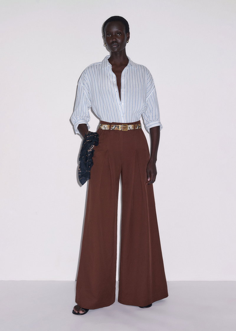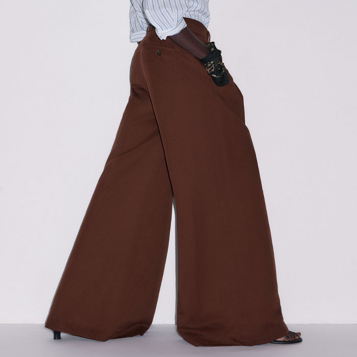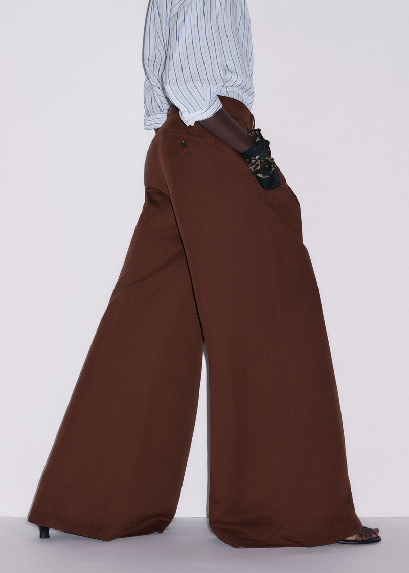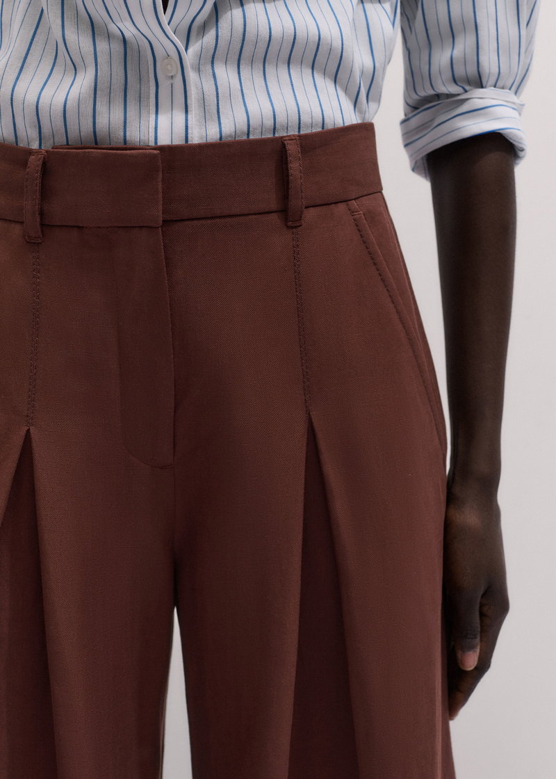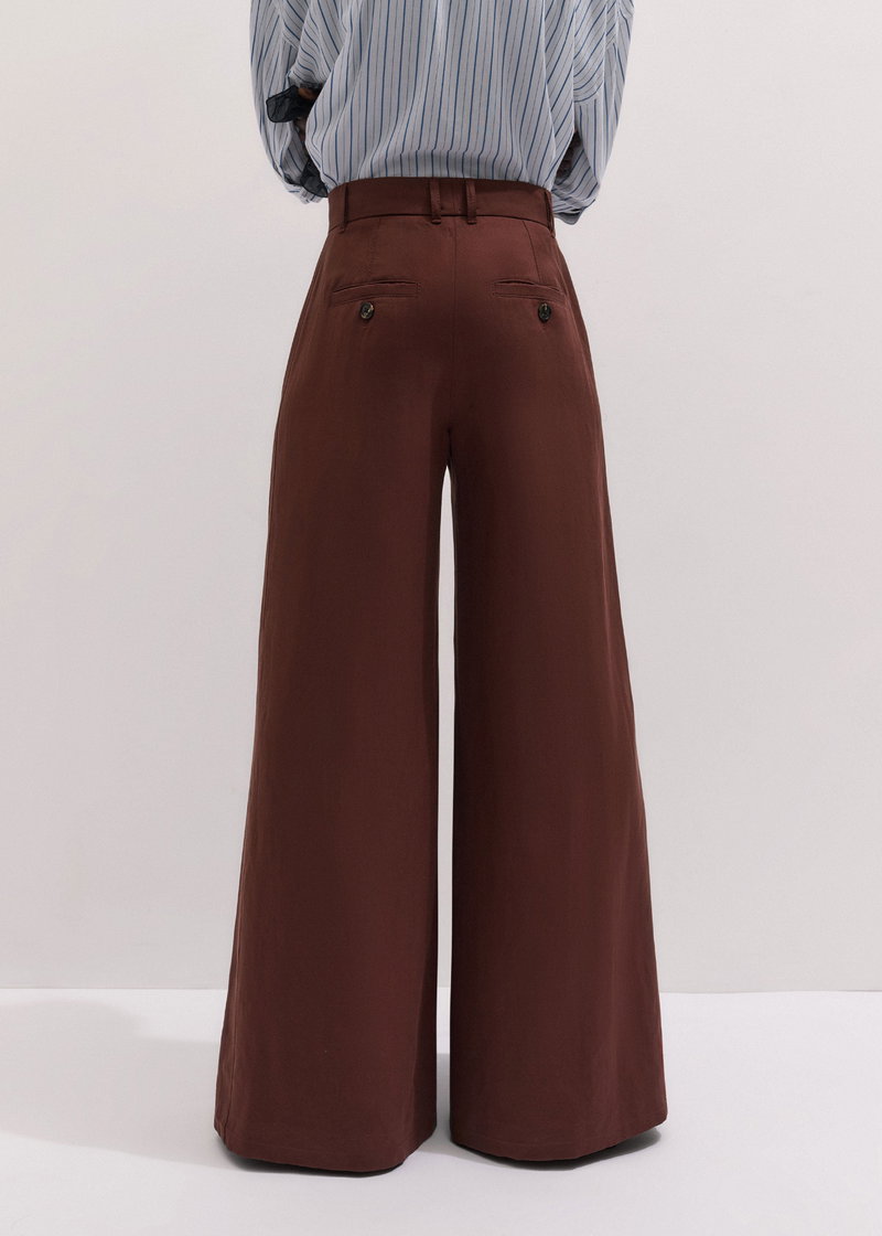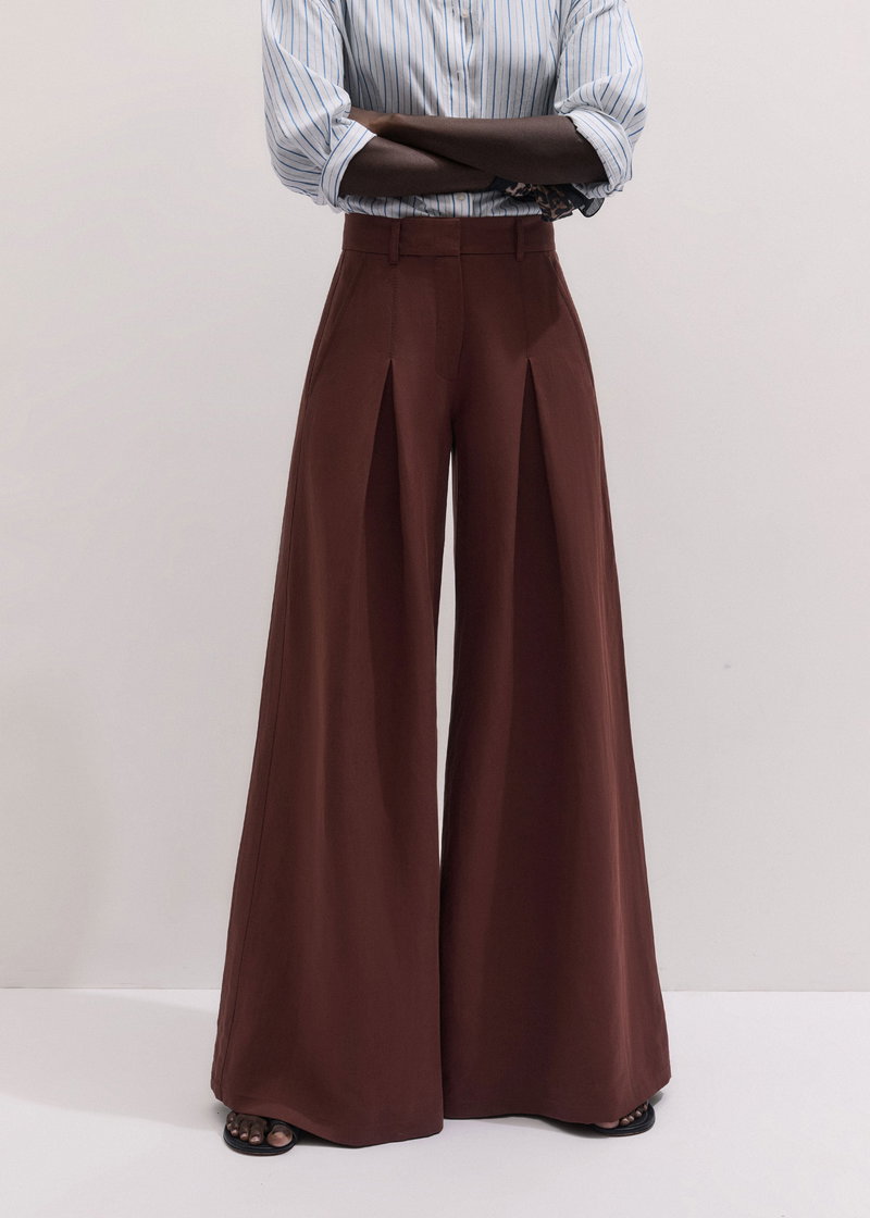 ME+EM's Cinnamon Brown Very Wide-Leg Trouser is made from a linen blend with a twill weave that achieves the perfect balance between soft and structured.