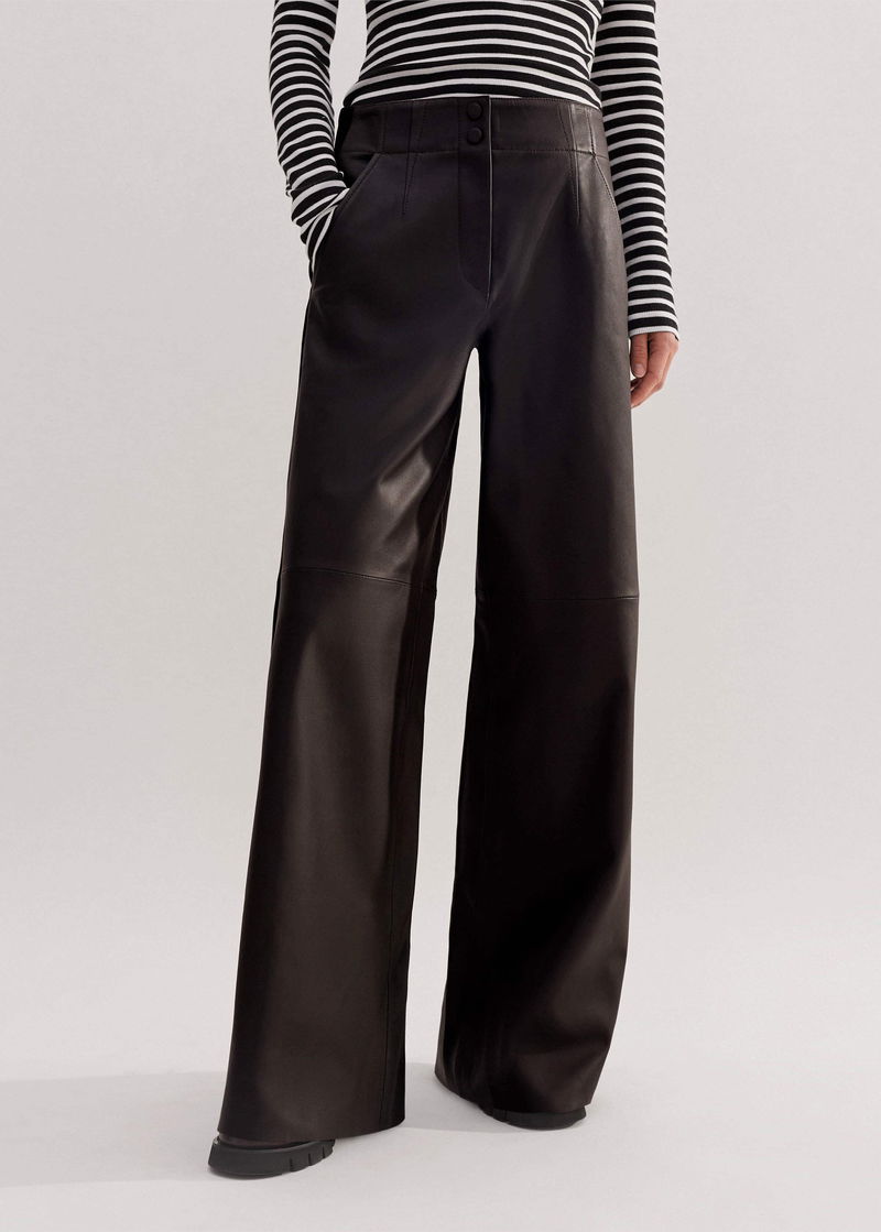 ME+EM's Brown Ultra-Soft Leather Wide-Leg Trouser is cut to a flattering wide-leg silhouette and signed off with a raw hem, granting you the option to alter the length of the leg.