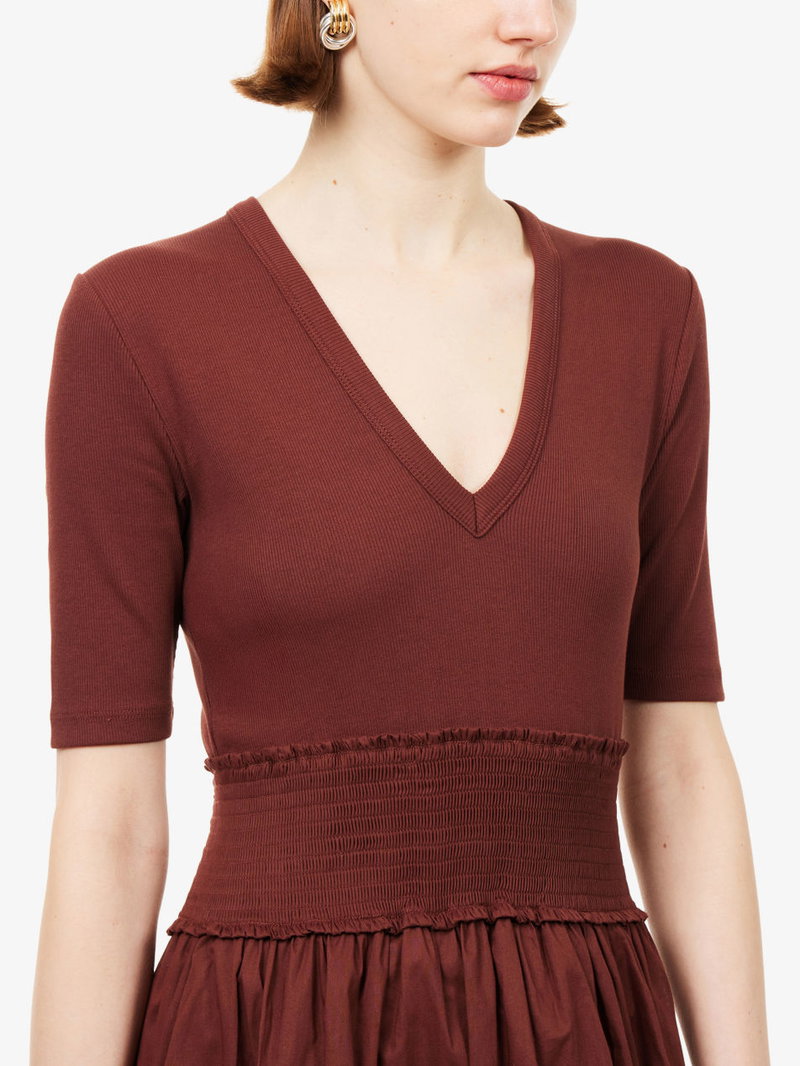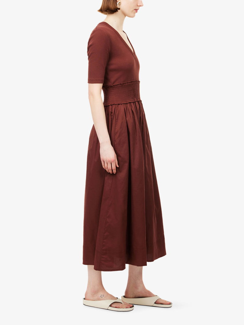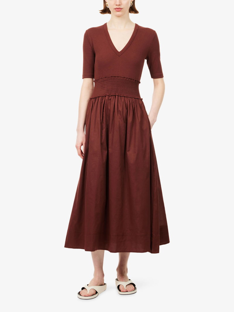 V-Neck Smocked Stretch-Cotton Maxi Dress