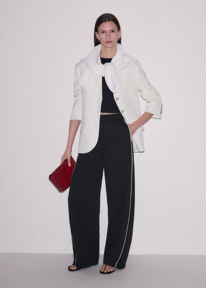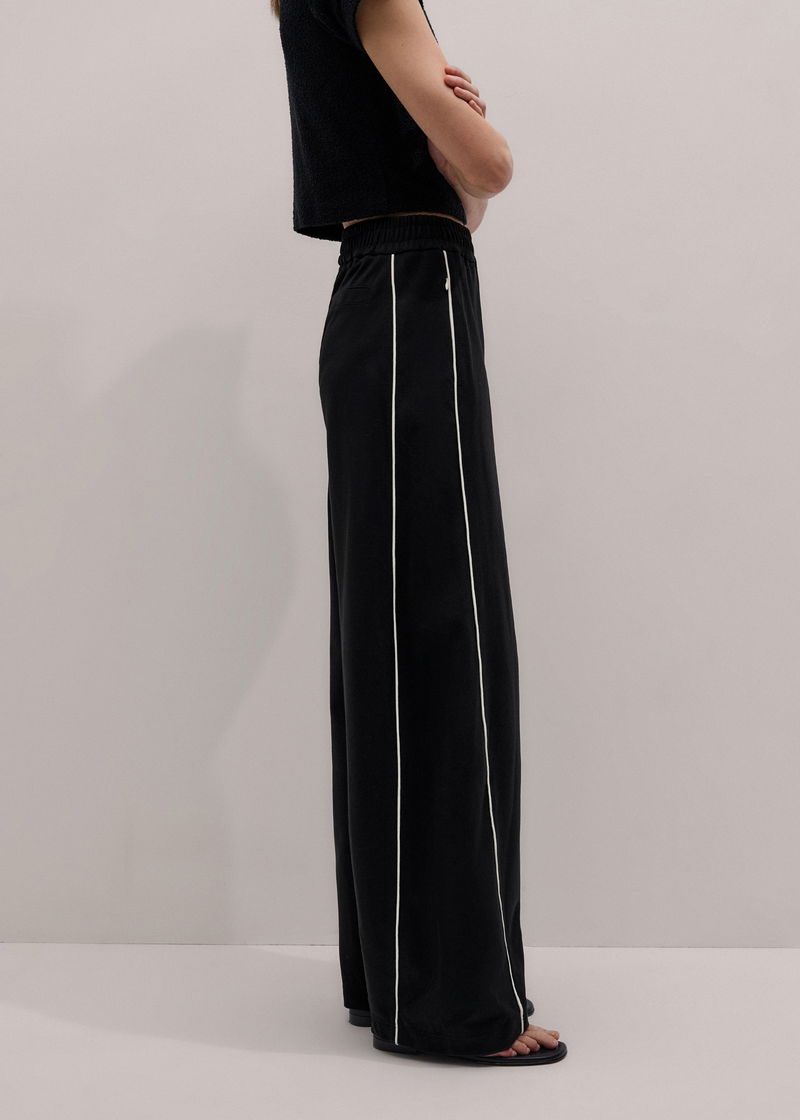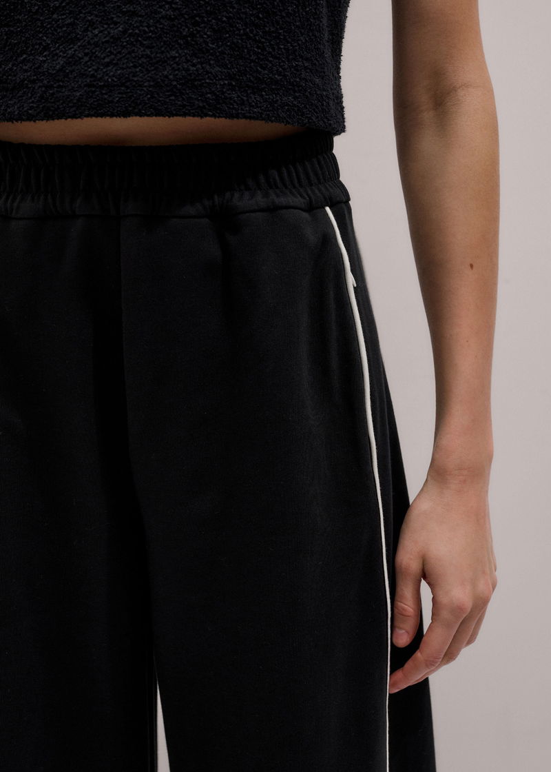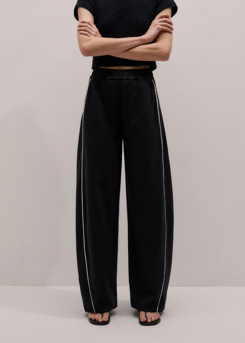 ME+EM's Black Wide Barrel Track Pant is made from a ponte jersey fabric, which perfectly balances the clean look of tailoring with the ease of loungewear.