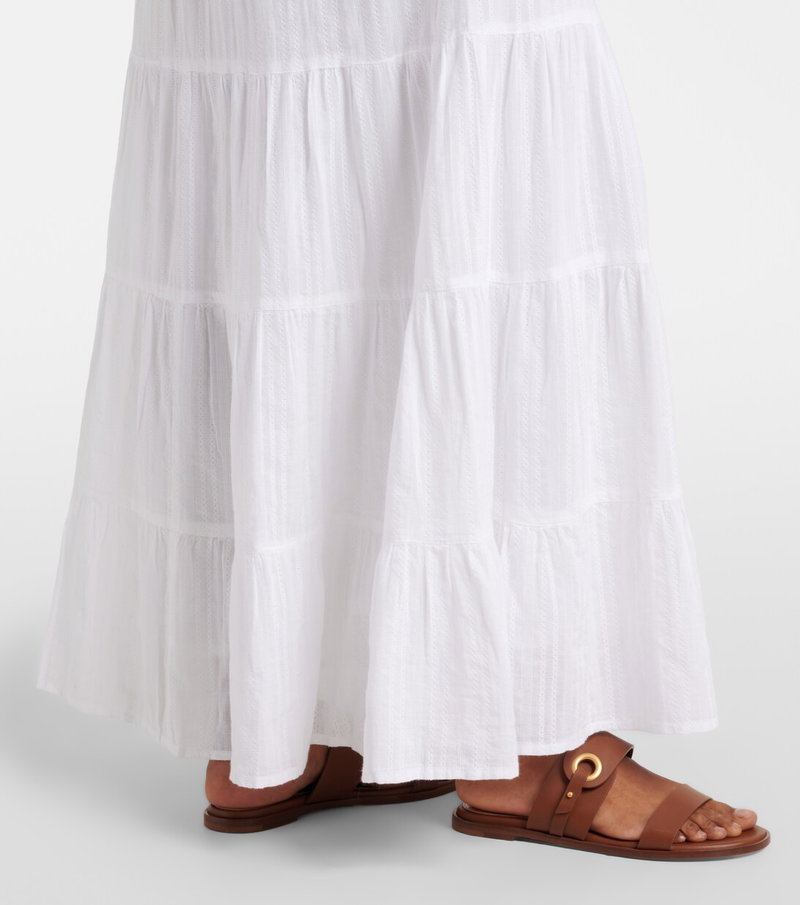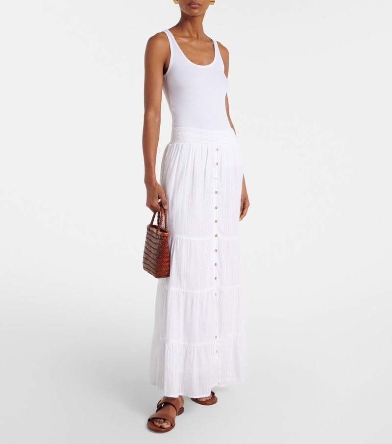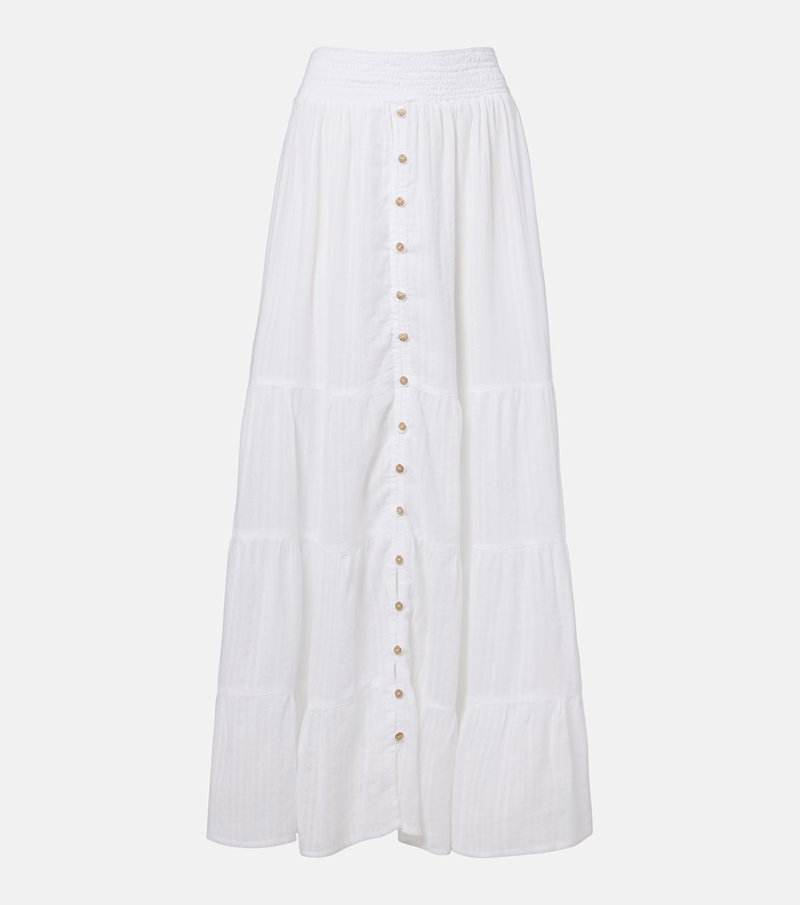 After working as a swimwear model, Melissa Odabash used her experience to create designs that are equal parts stylish and comfortable. The Dee maxi skirt is made from airy cotton with a tiered silhouette and buttons down the front.