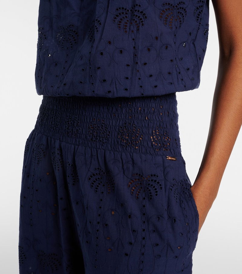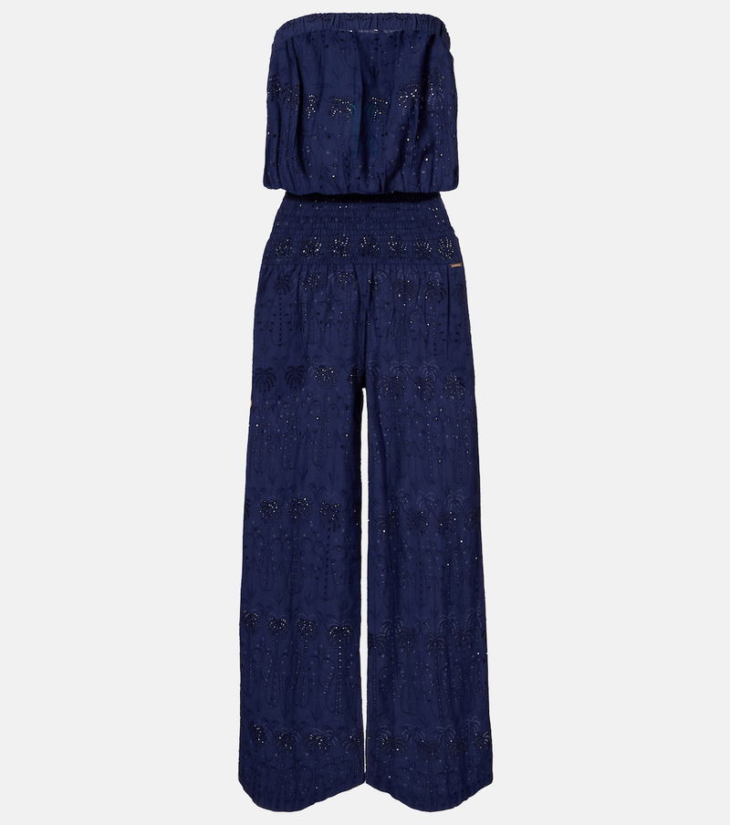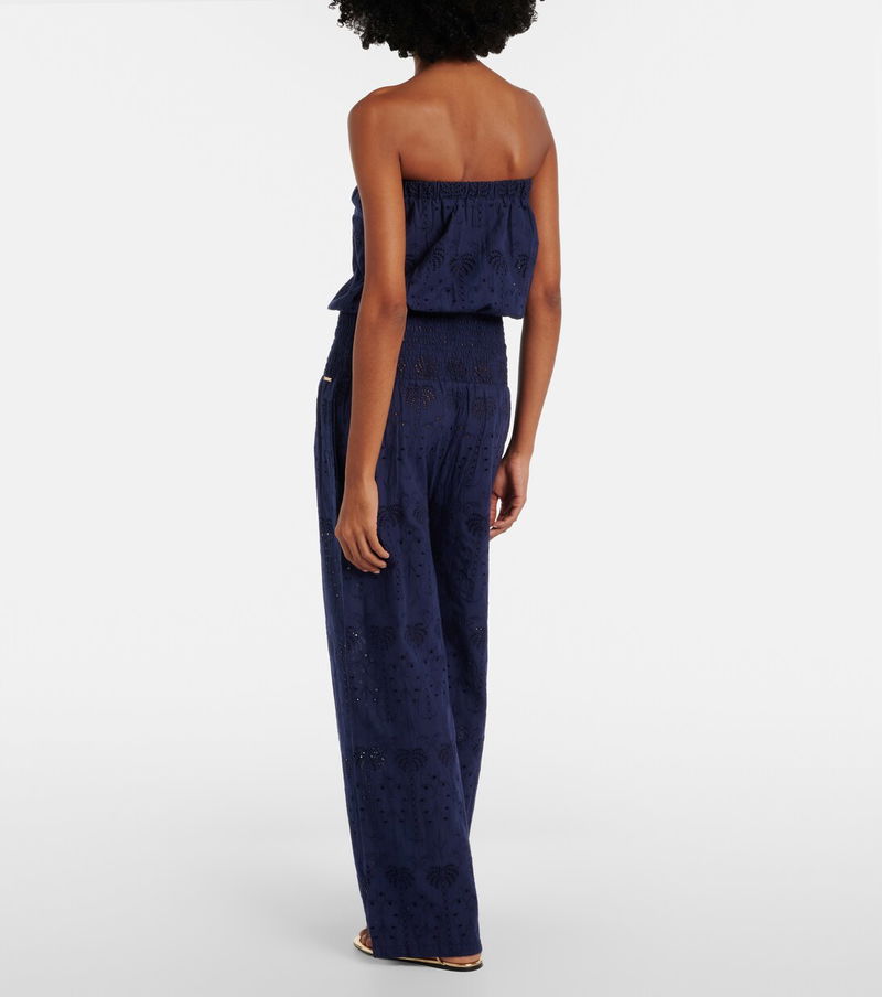 Choose Melissa Odabash's Naomi jumpsuit for unmatched ease. Perfect for warmer temperatures, the design is made from lightweight cotton with a strapless bodice, a shirred waistband, and relaxed, wide legs.