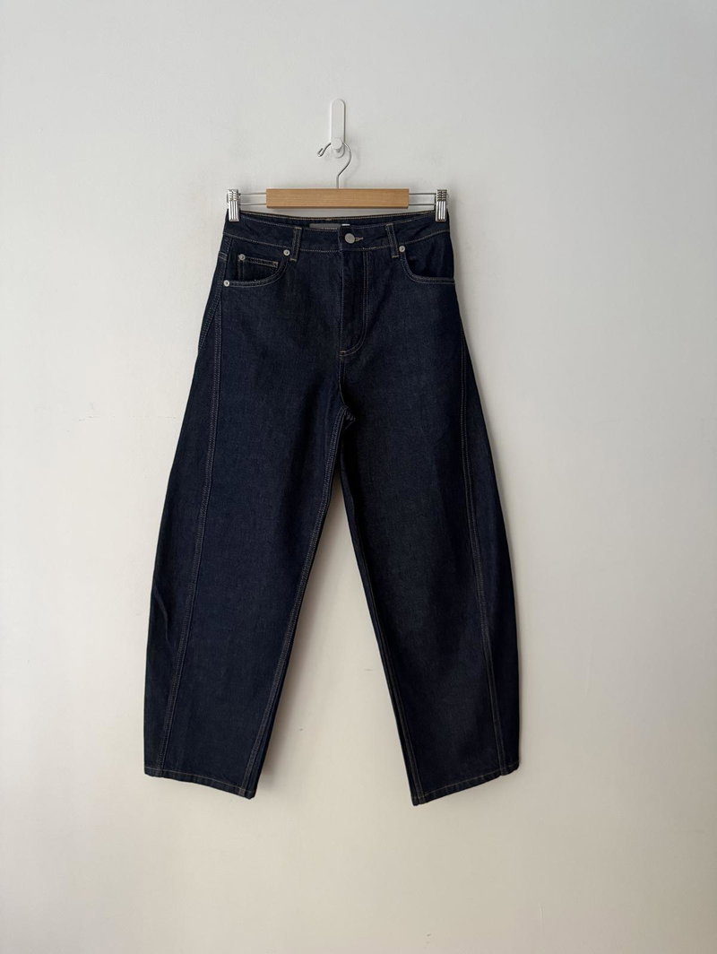 Comfort stretch. High rise. Barrel shape. Ankle grazing hems jeans.