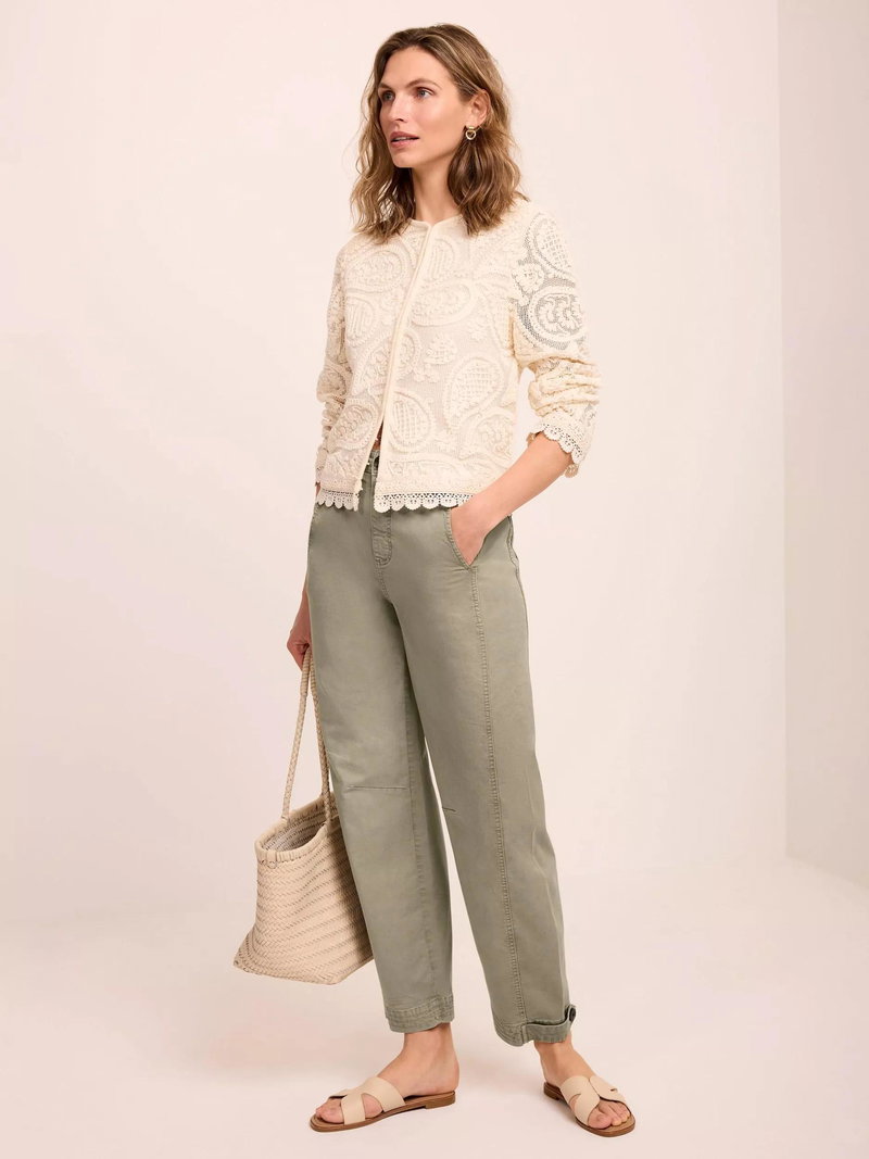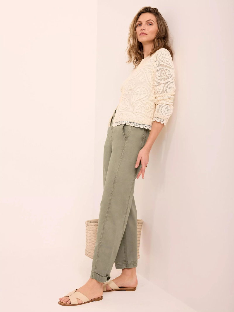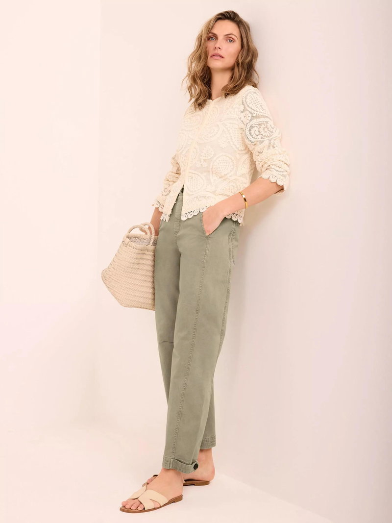 A sharp pair of chino trousers by Mint Velvet, made from a cotton-blend fabric. Mid-rise comfort, a classic straight cut, and handy zip-button fastening make everyday dressing effortless.