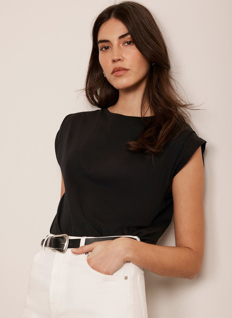 Woven with cotton for added softness and breathability, this black t-shirt is a wardrobe essential.