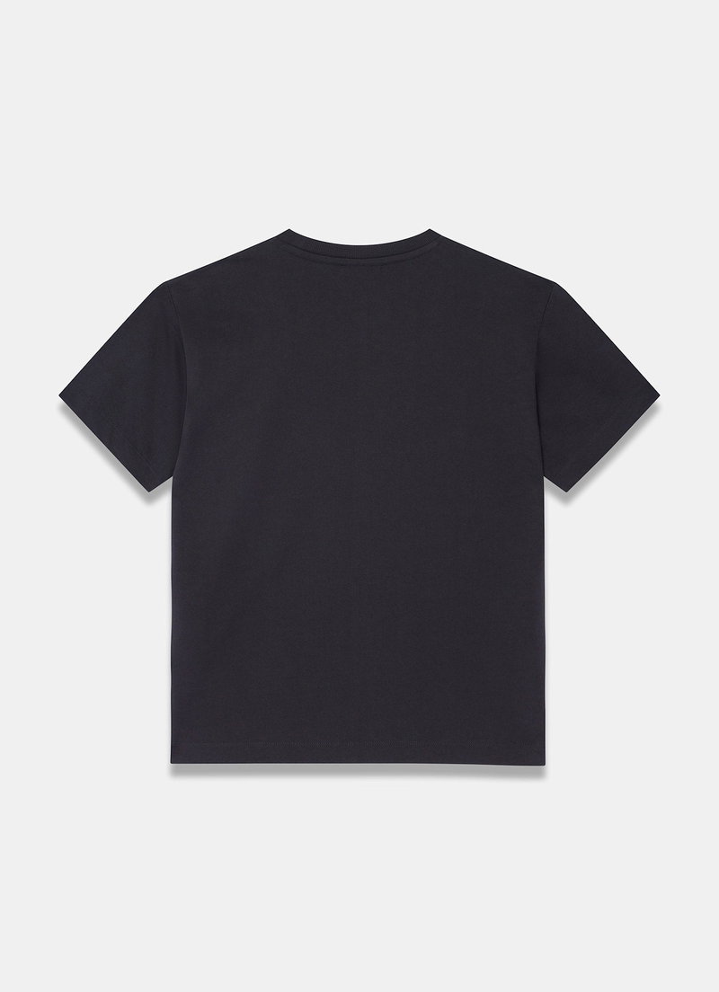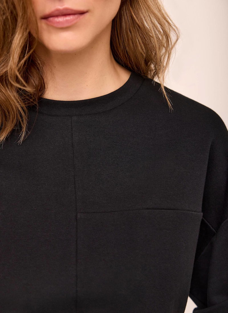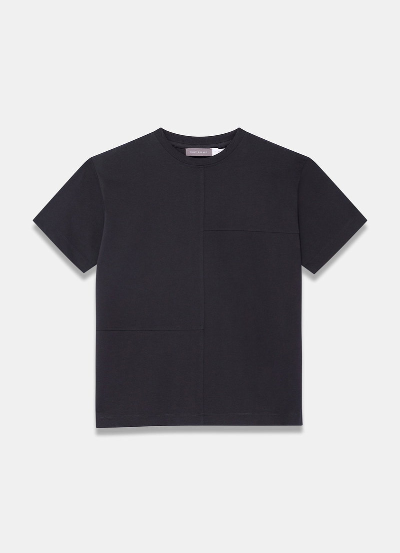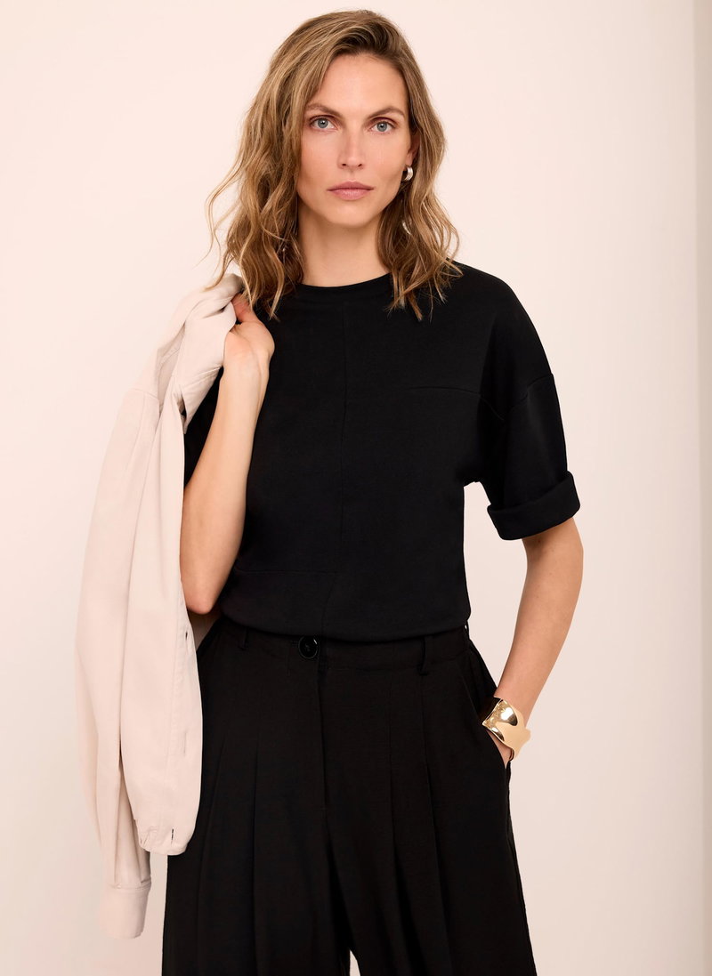 • Black T-shirt featuring a crew neckline, short sleeves and seam detailing.