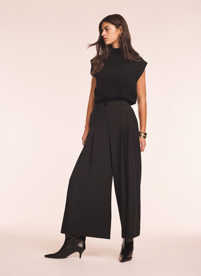 Pleat Detail Crop Wide Trousers.