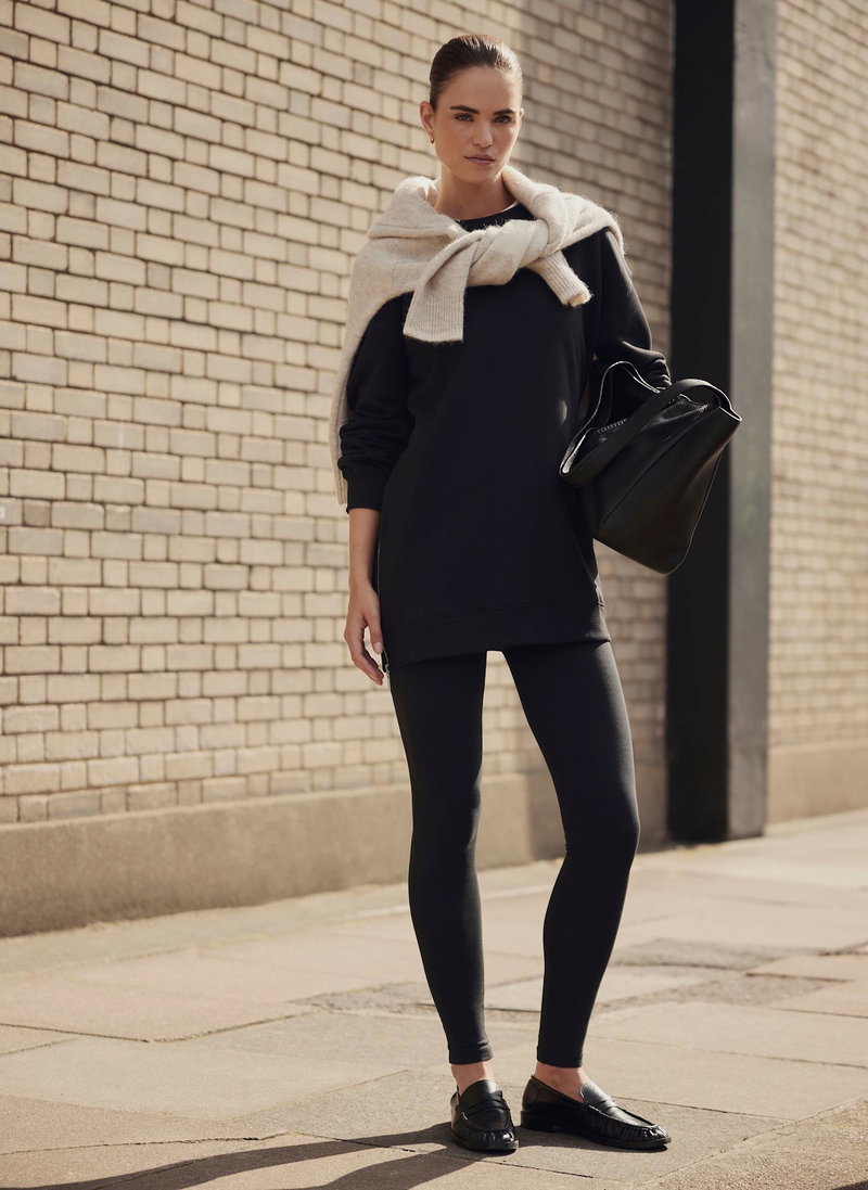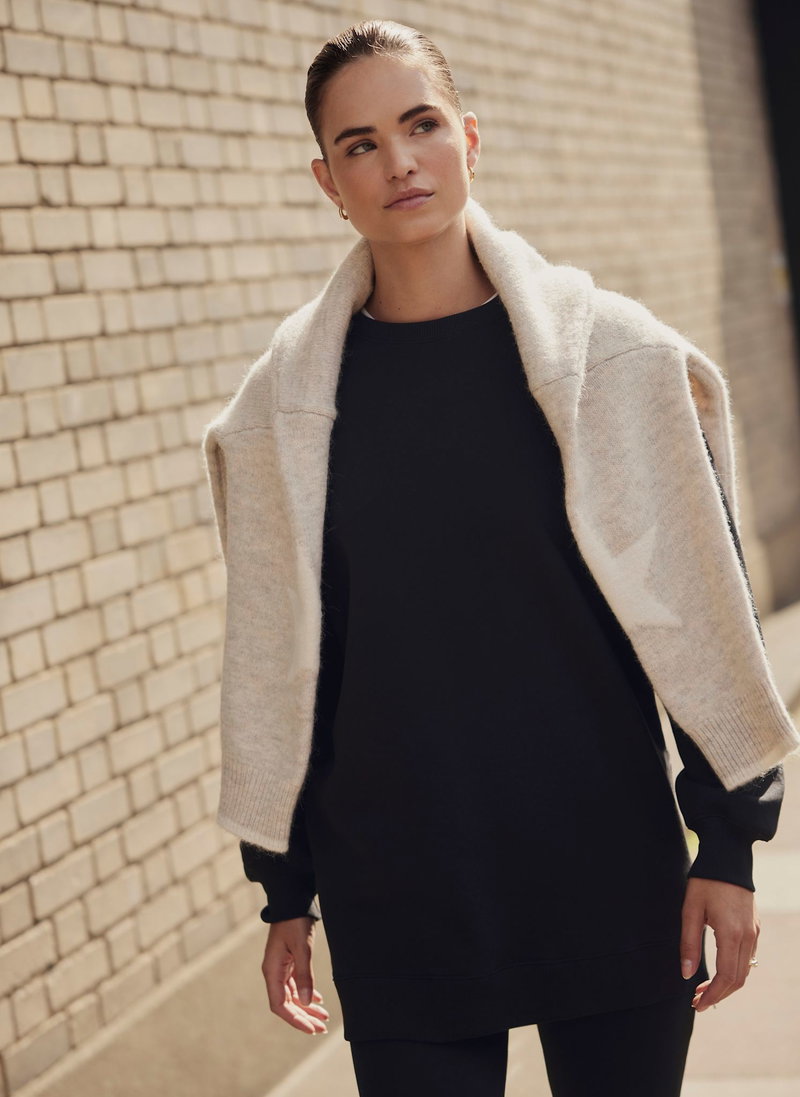 This black sweatshirt is designed in a relaxed, longline silhouette that's framed by a round neckline and long sleeves. We've finished it with metallic zips on each side.