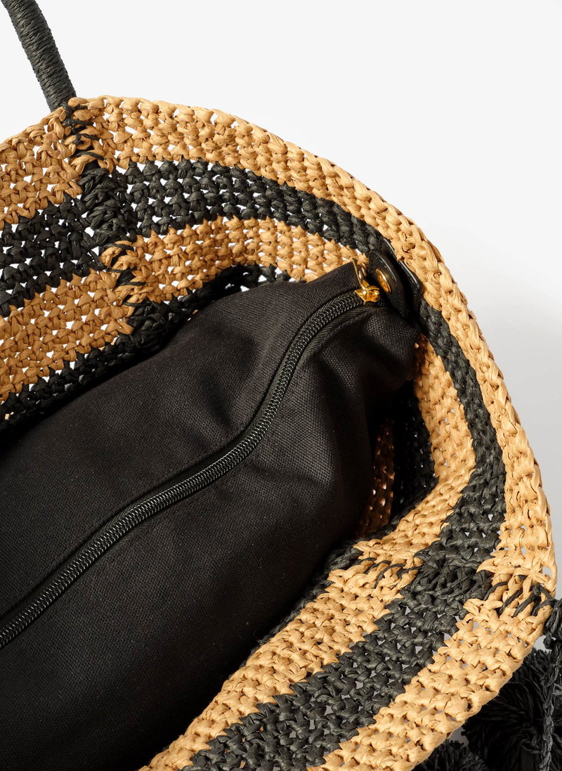 Blake Neutral Stripe Woven Tote Bag