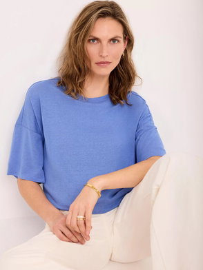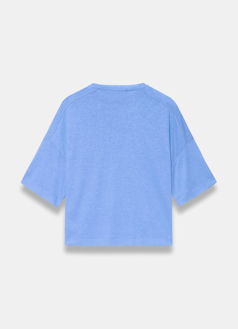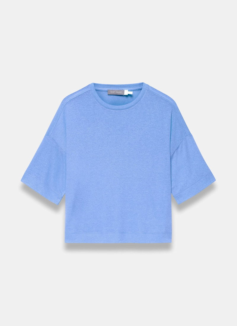 Blue t-shirt in a boxy silhouette featuring a crew neckline and short sleeves.