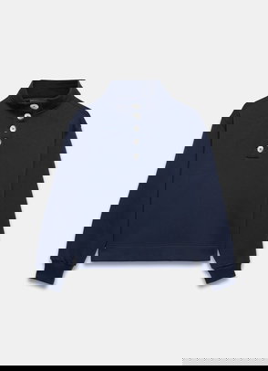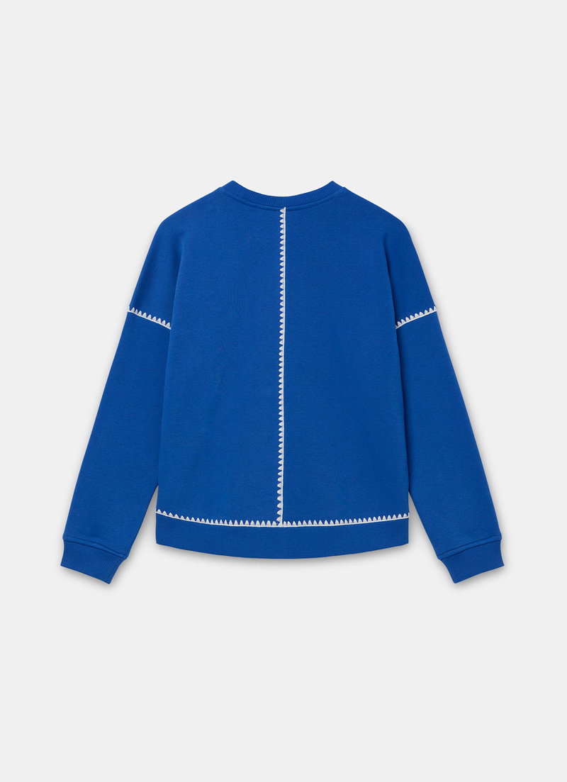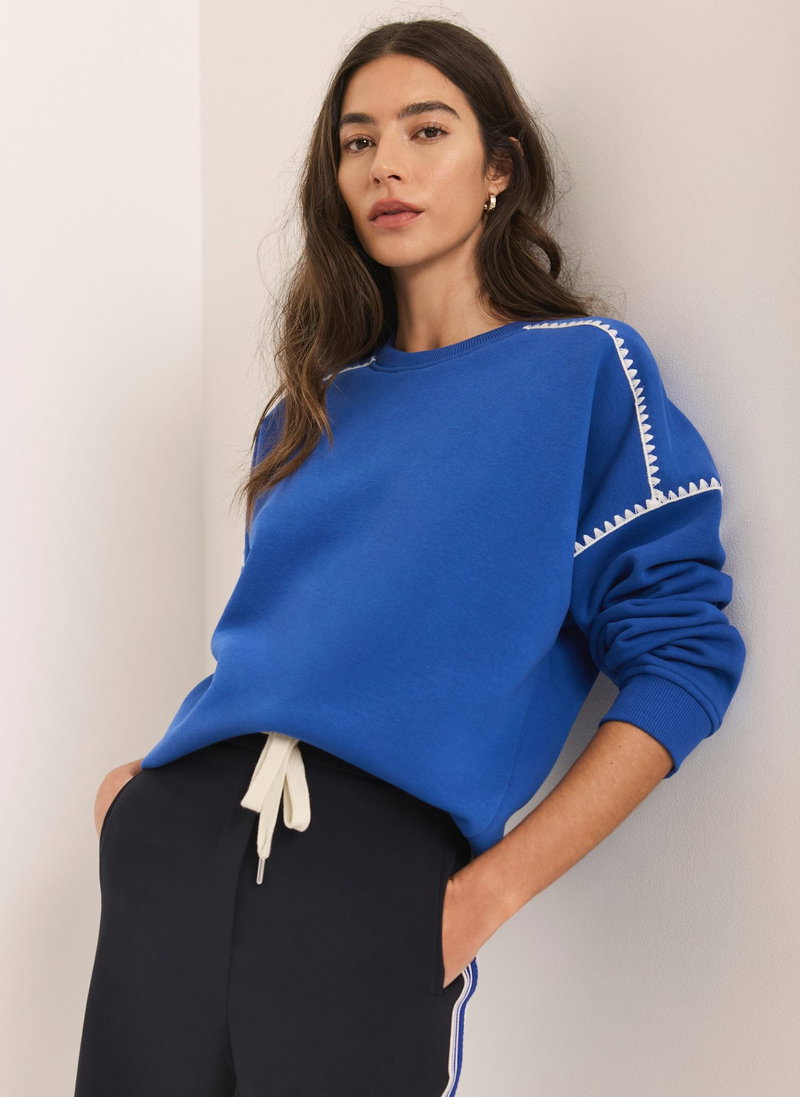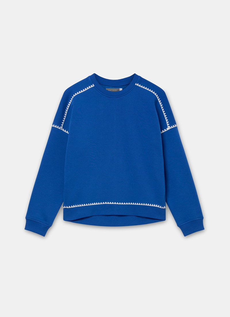 Cobalt blue sweatshirt featuring a crew neckline, long sleeves and whipstitch detailing.