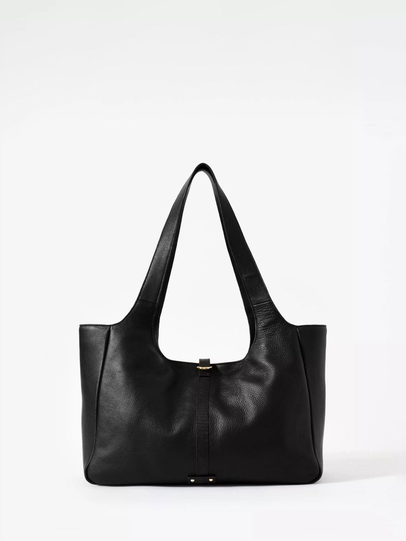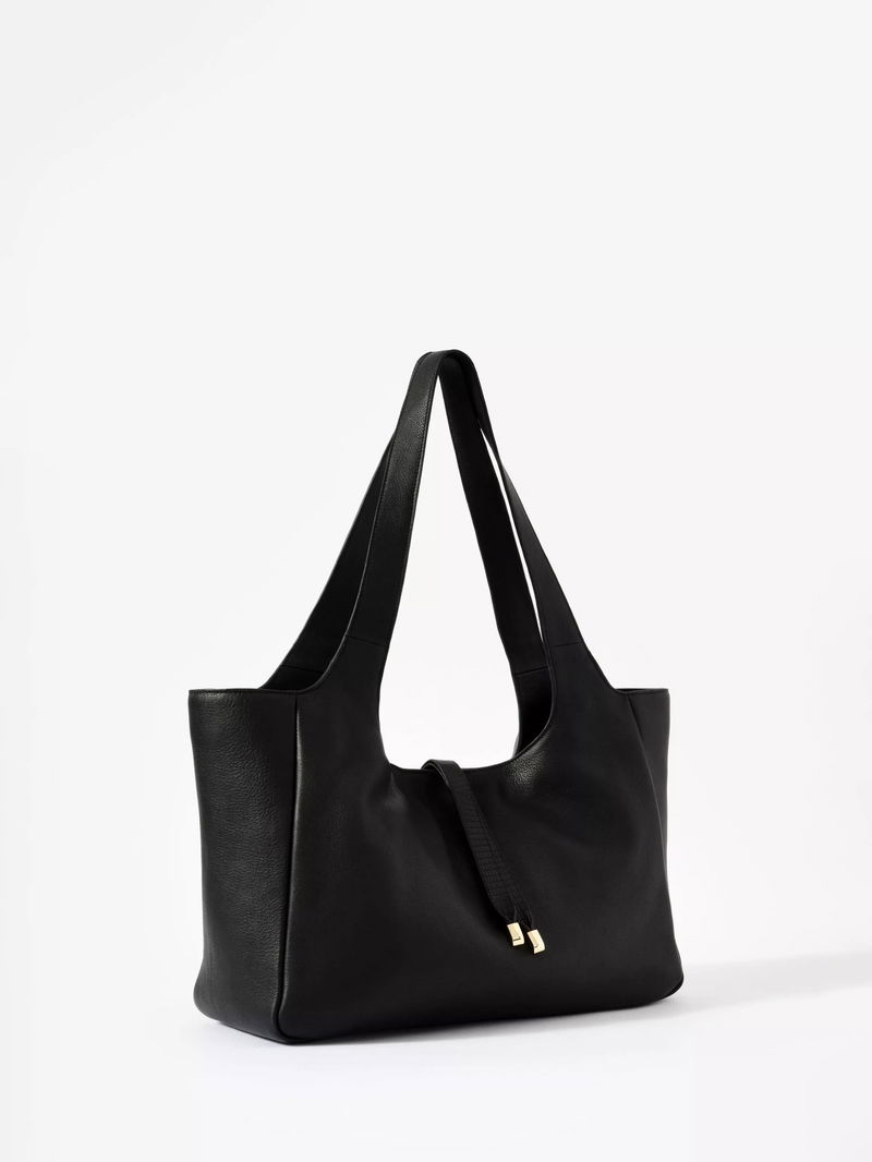 A pure leather shoulder bag with a shoulder strap. Fully lined.