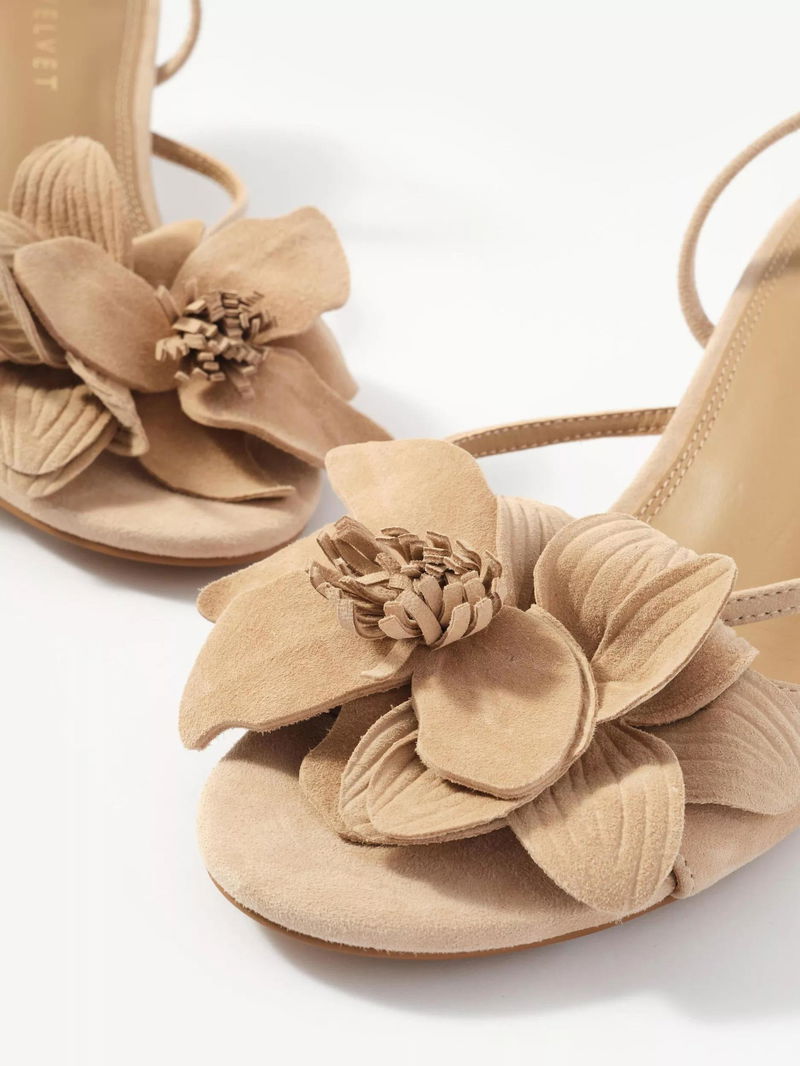 Bri Suede Floral Sandals, Natural