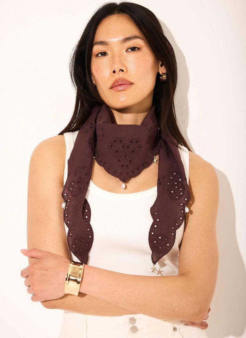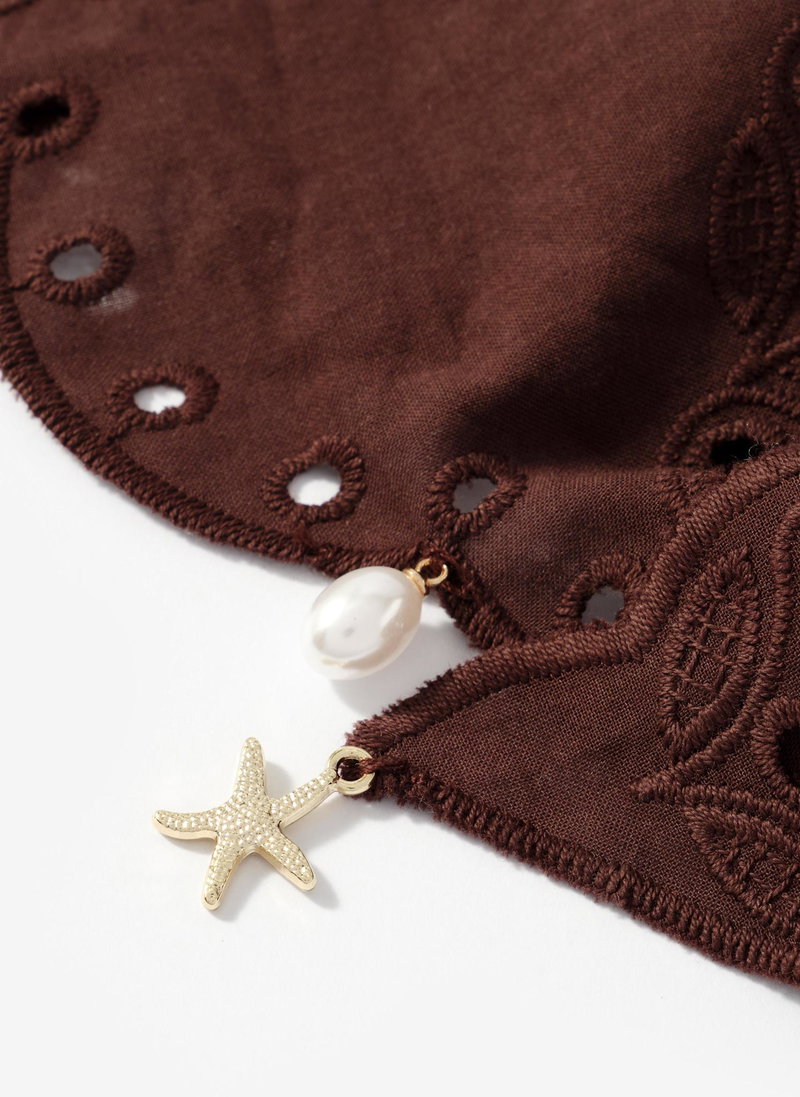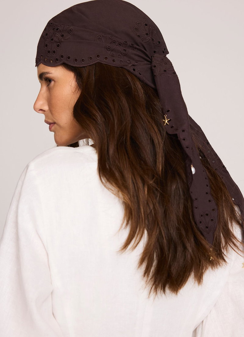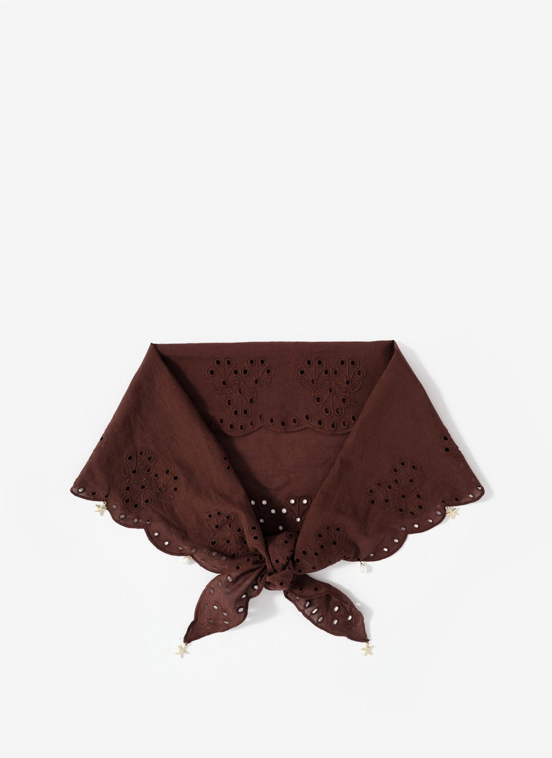 Brown cotton broderie scarf with gold-tone starfish charms.