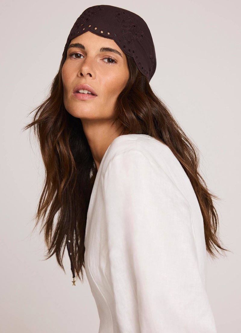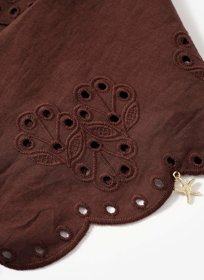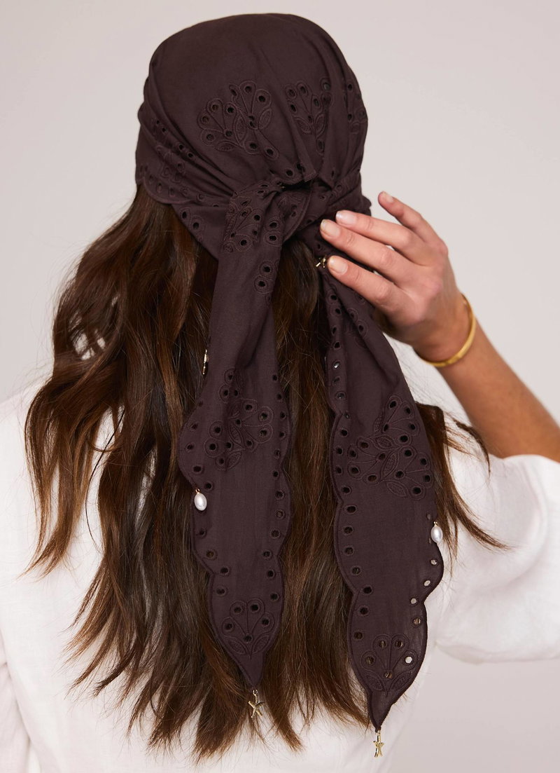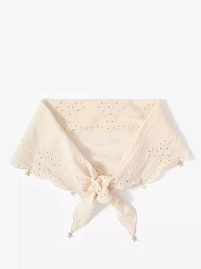 Brown cotton broderie scarf with gold-tone starfish charms.