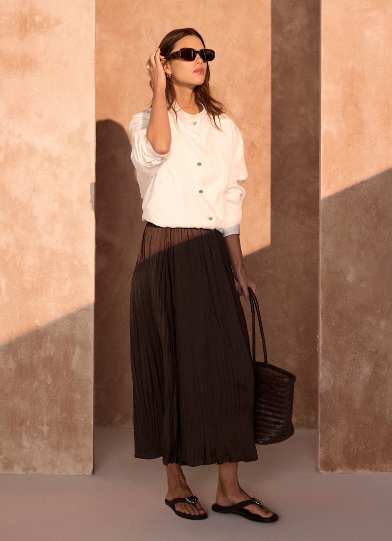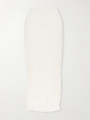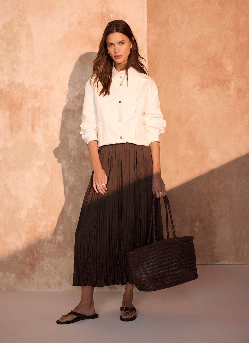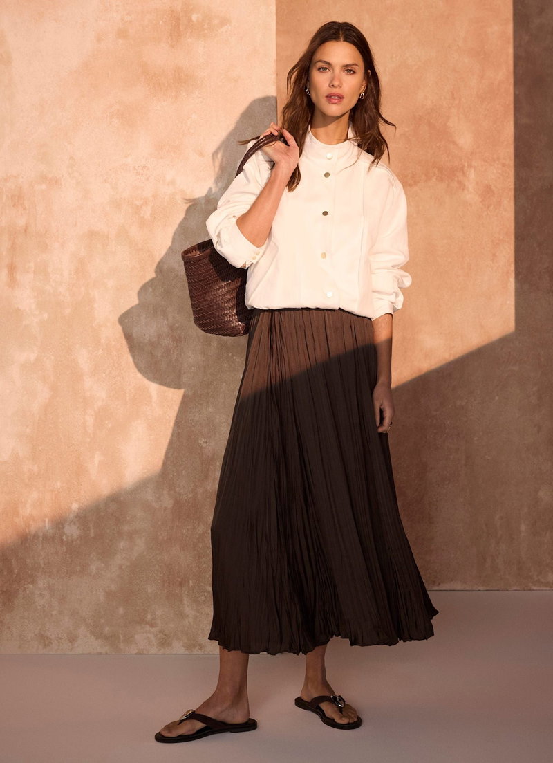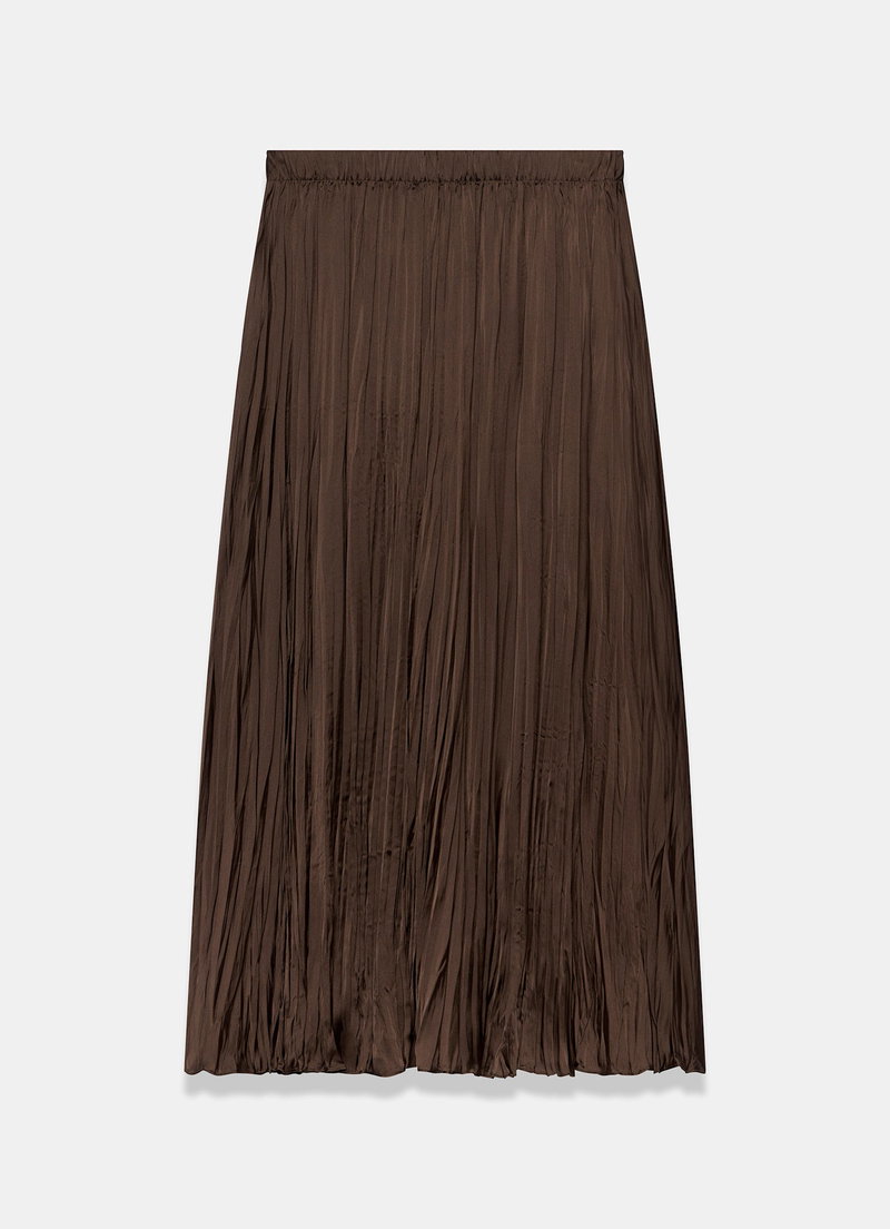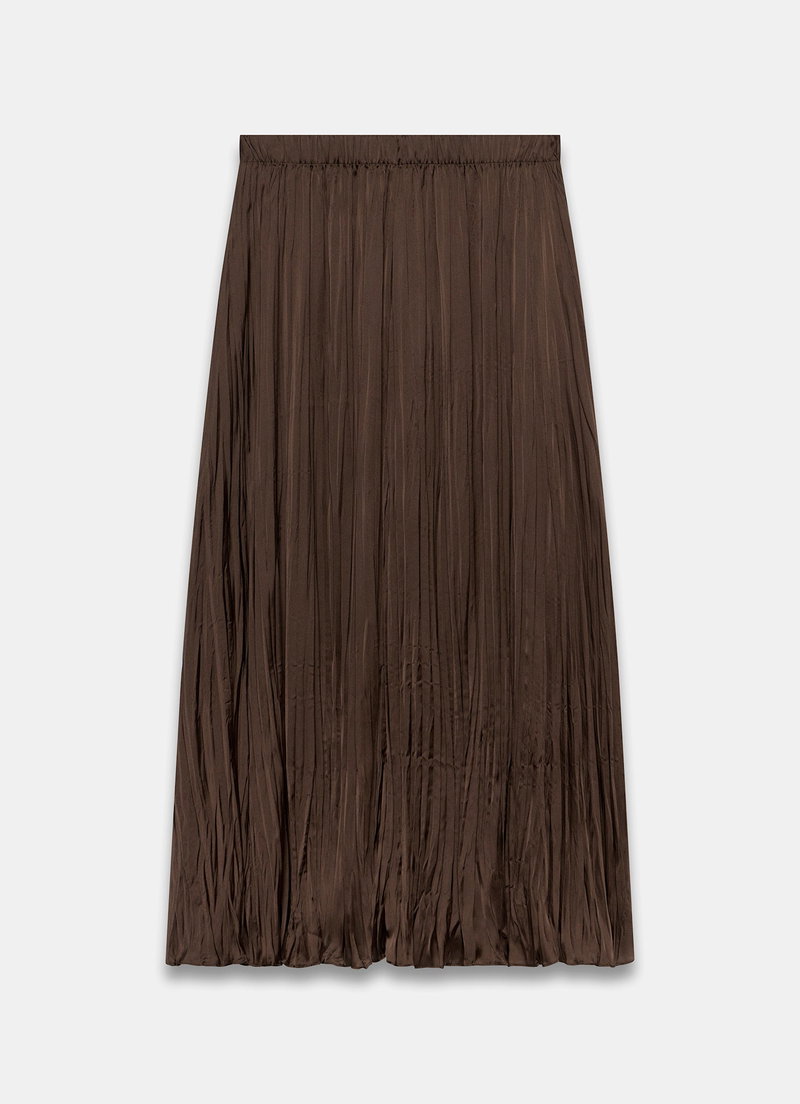 Brown crinkle skirt in a maxi silhouette featuring an elasticated waistband.