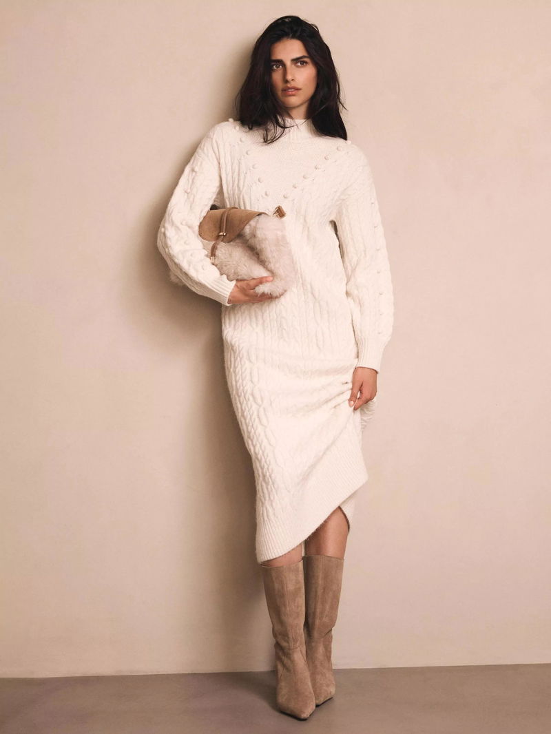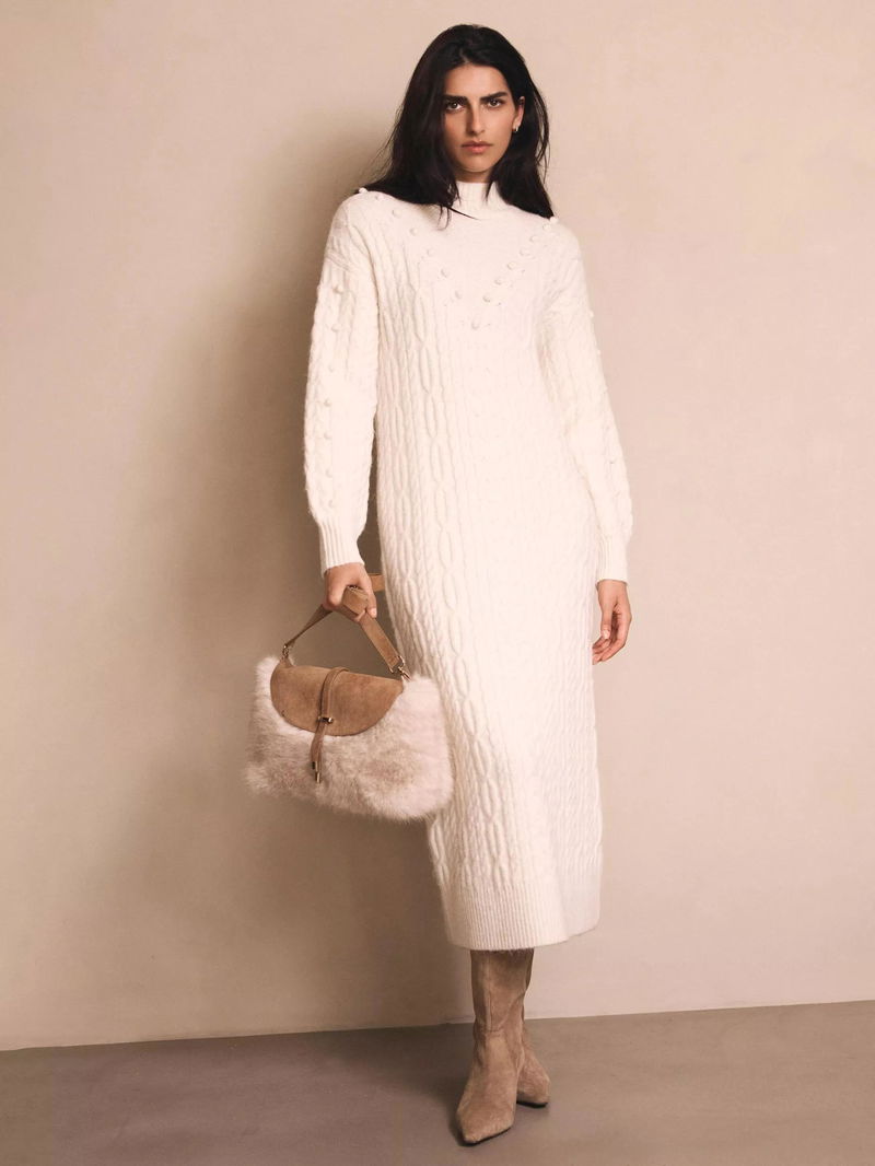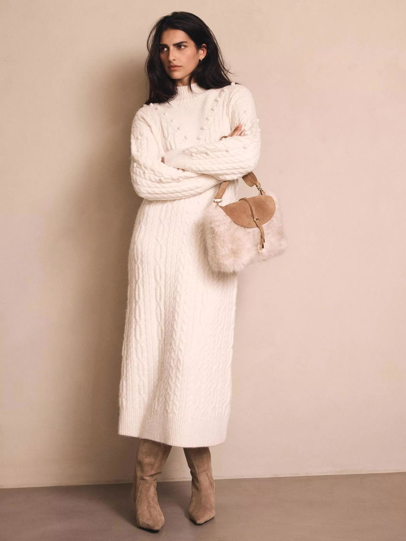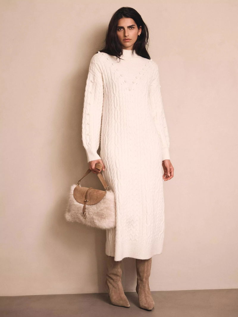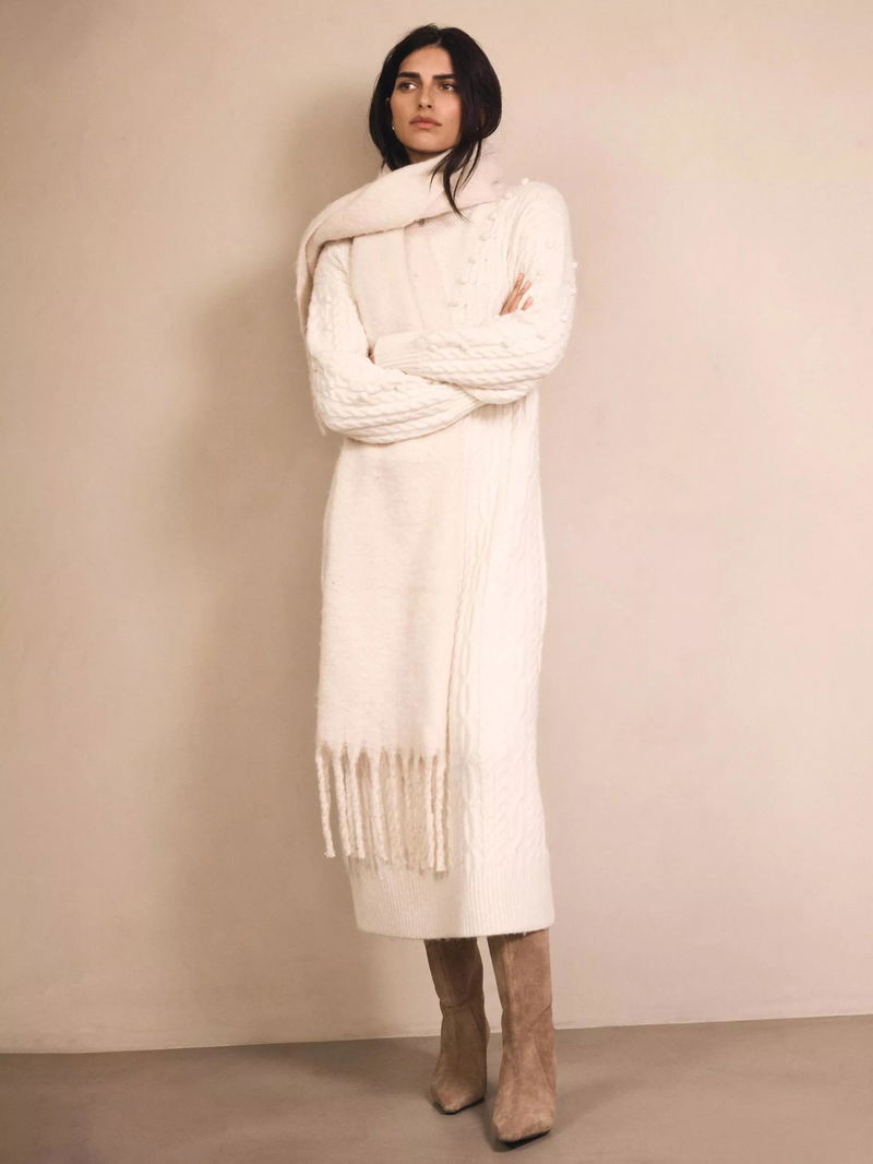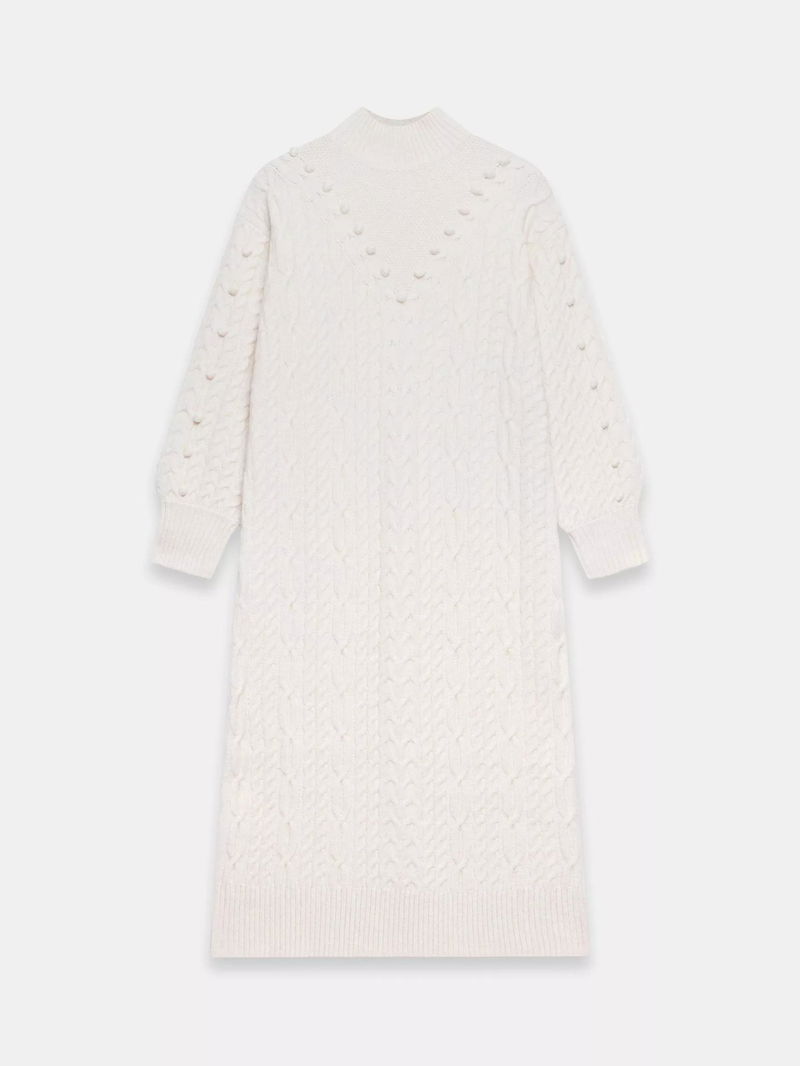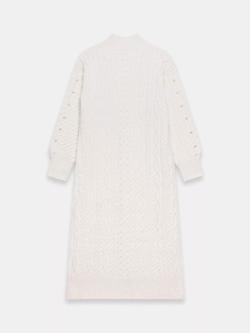 Cable Knit Bobble Jumper Dress, Natural Cream