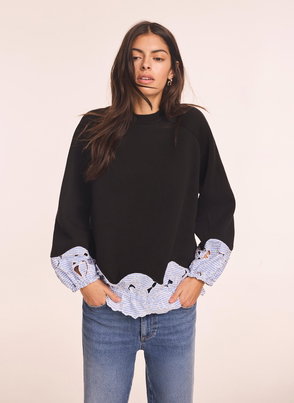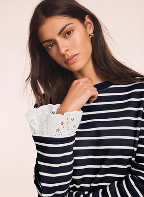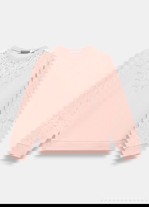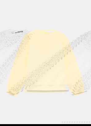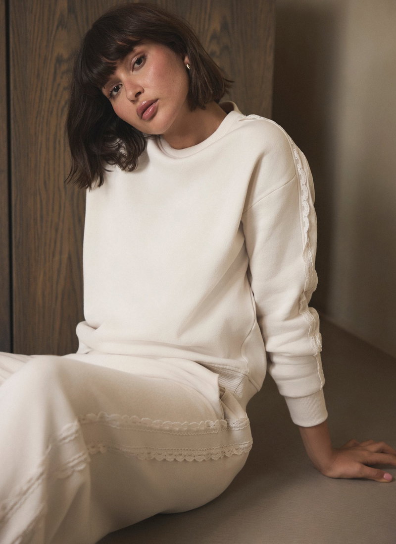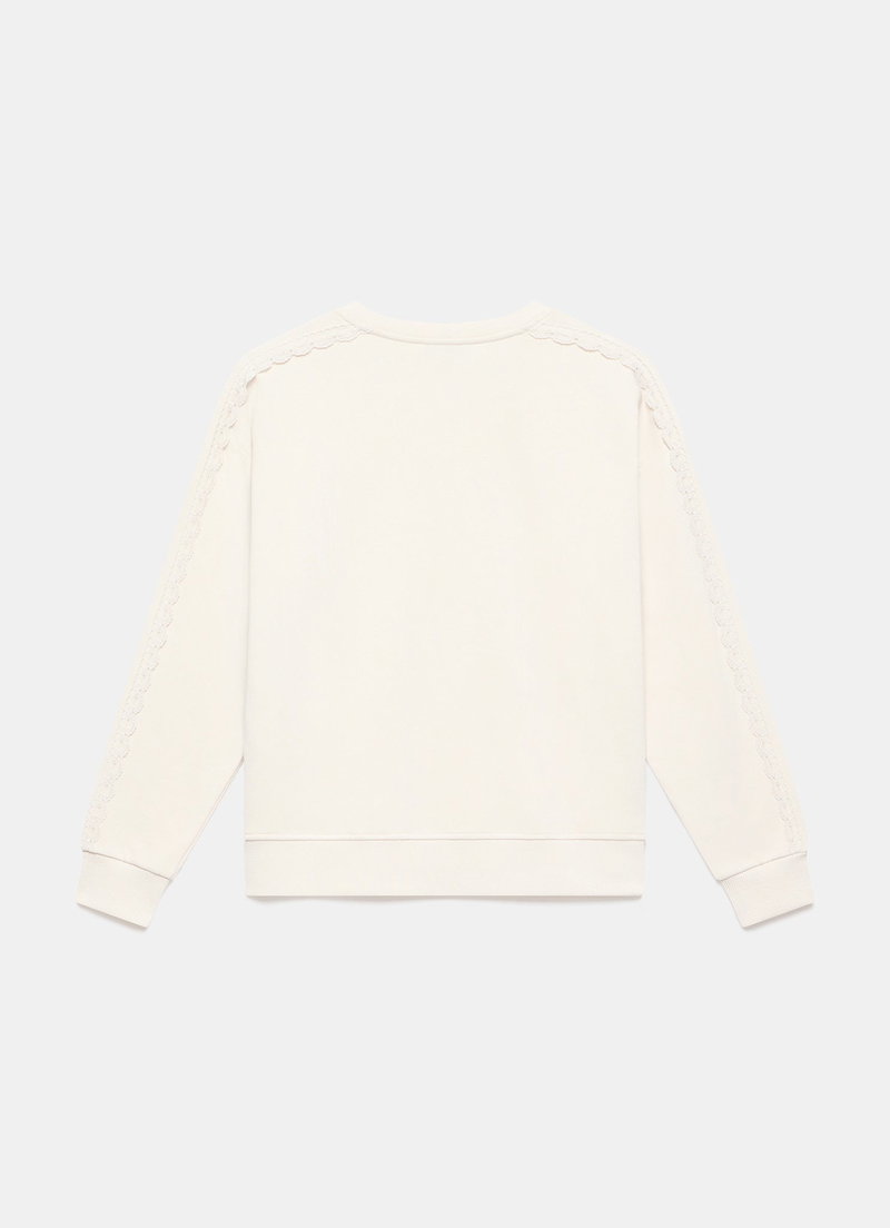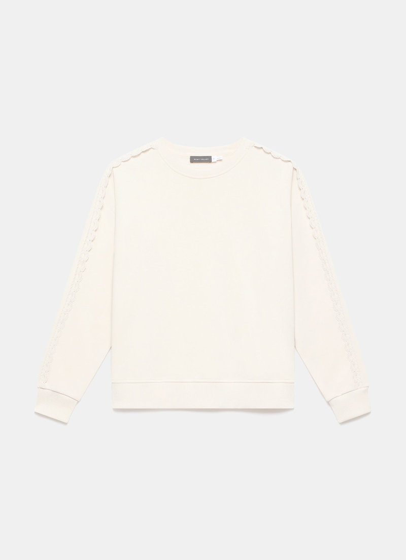 Cream Cotton Blend Lace Trim Sweatshirt