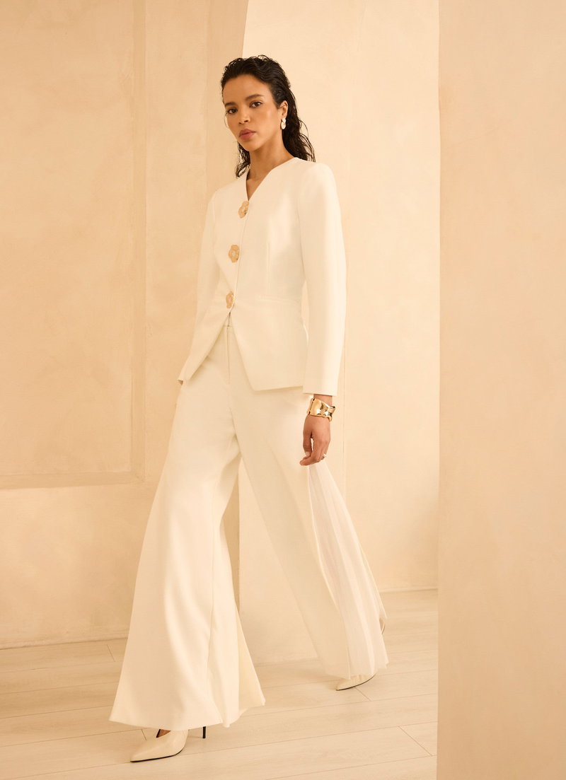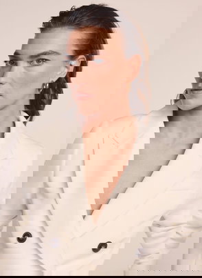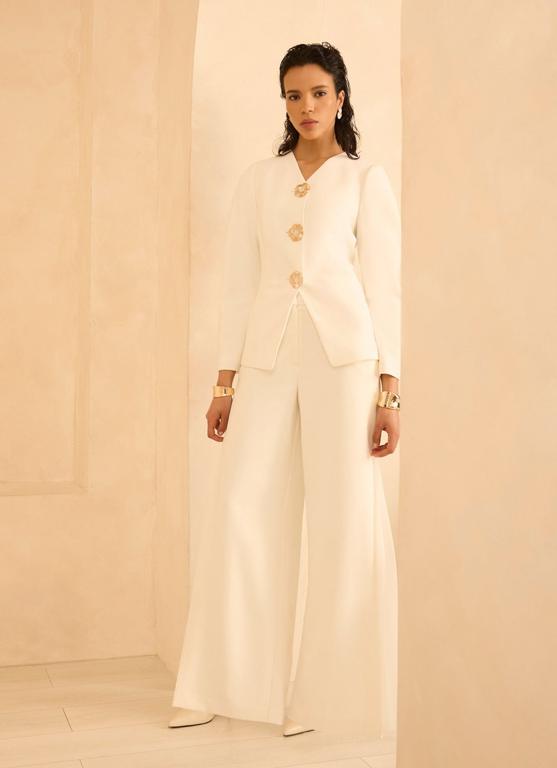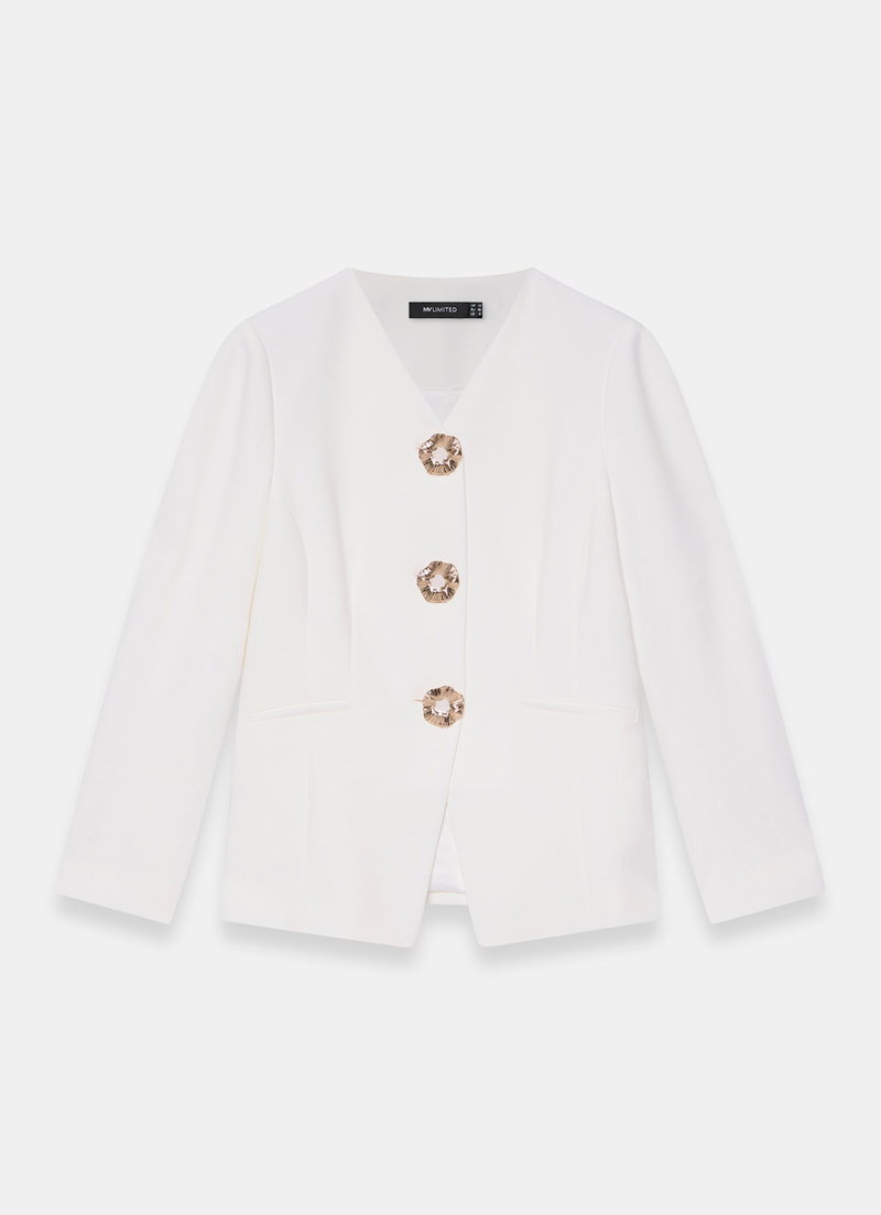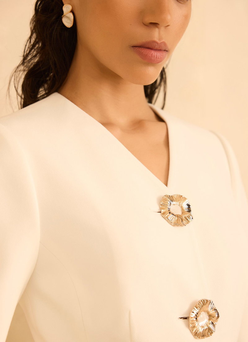 Cream Statement Button Sculpted Jacket