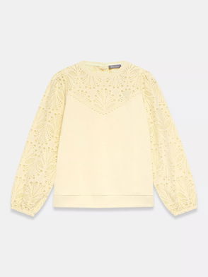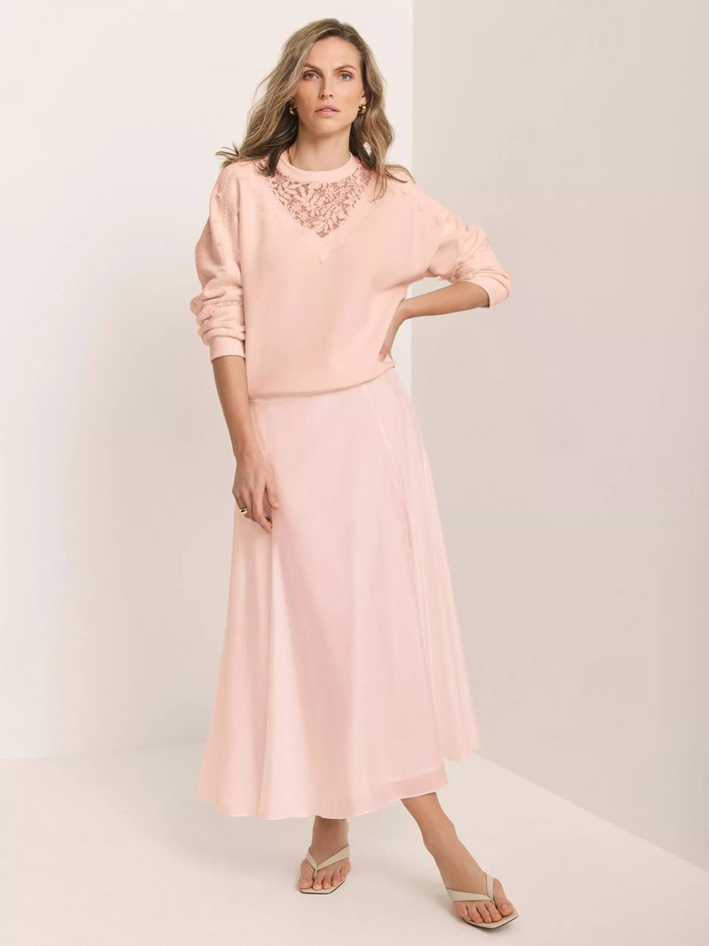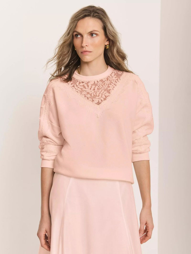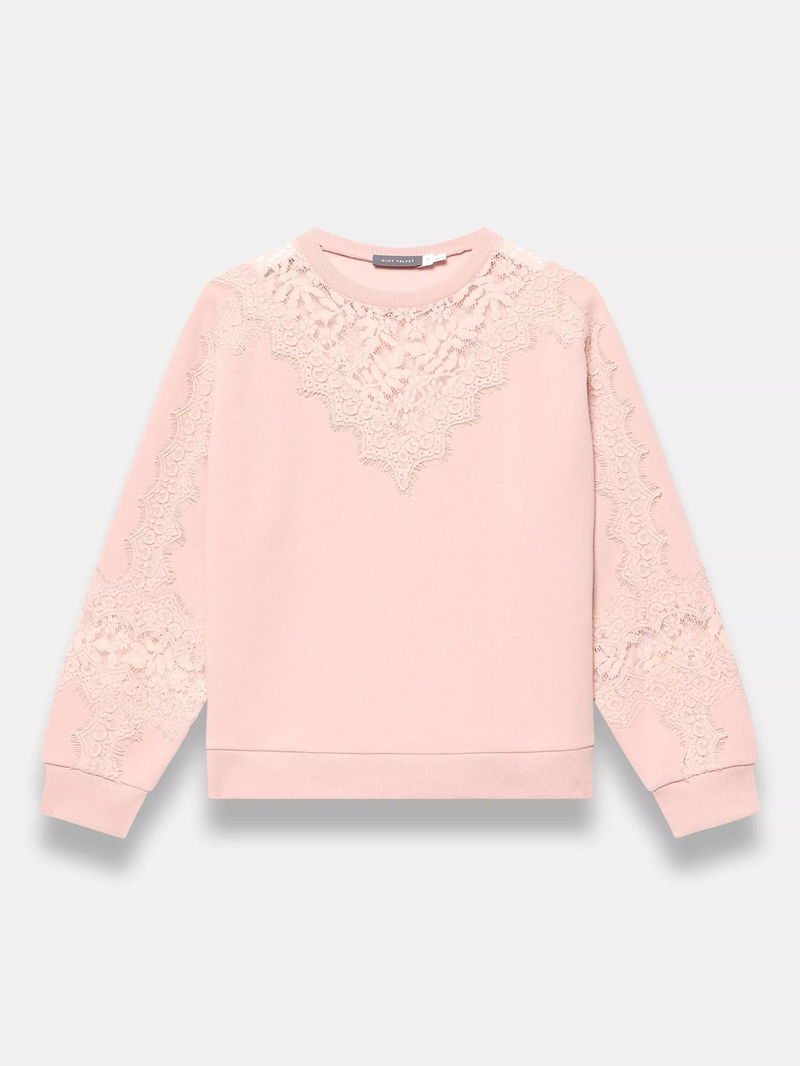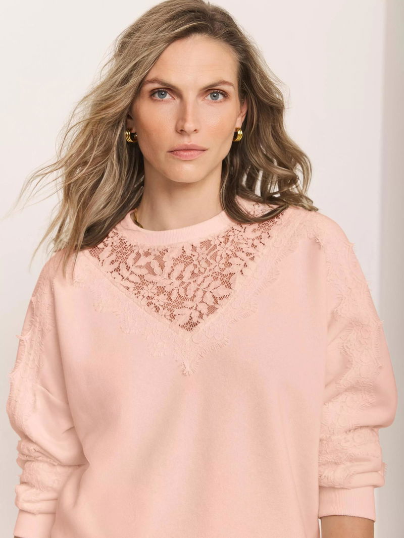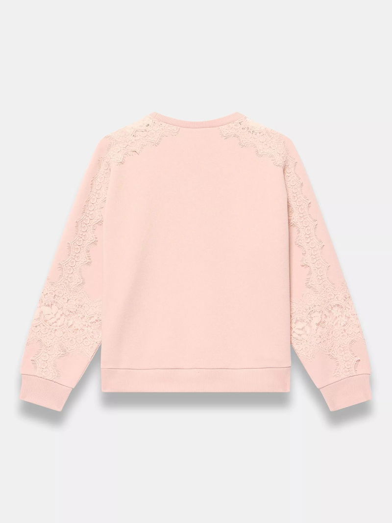 Crew Neck Lace Detail Sweatshirt, Light Pink
