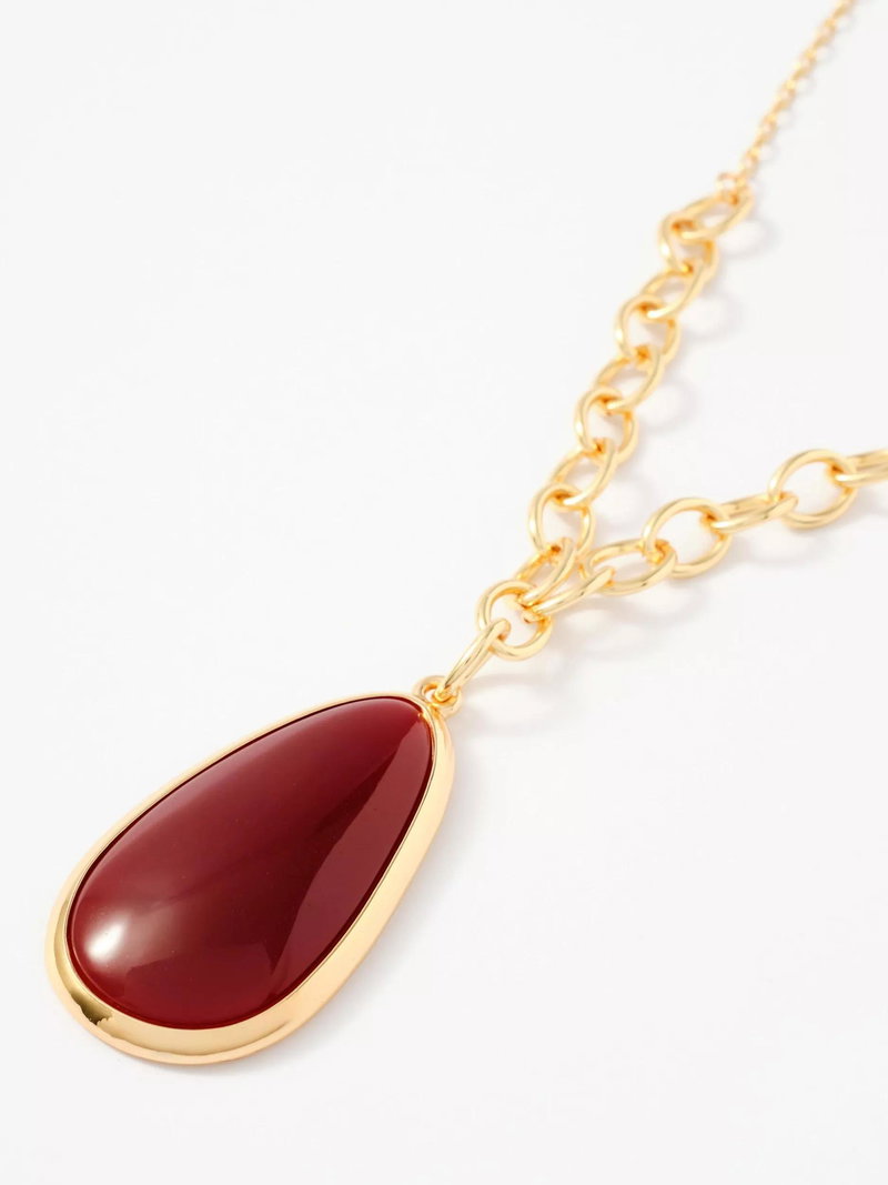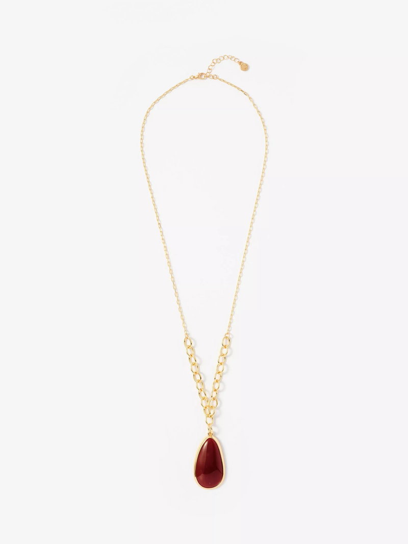 This elegant drop chain necklace features a vibrant resin stone pendant for a sophisticated pop of colour. Finished with a secure lobster clasp and an adjustable fastening.