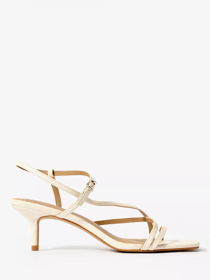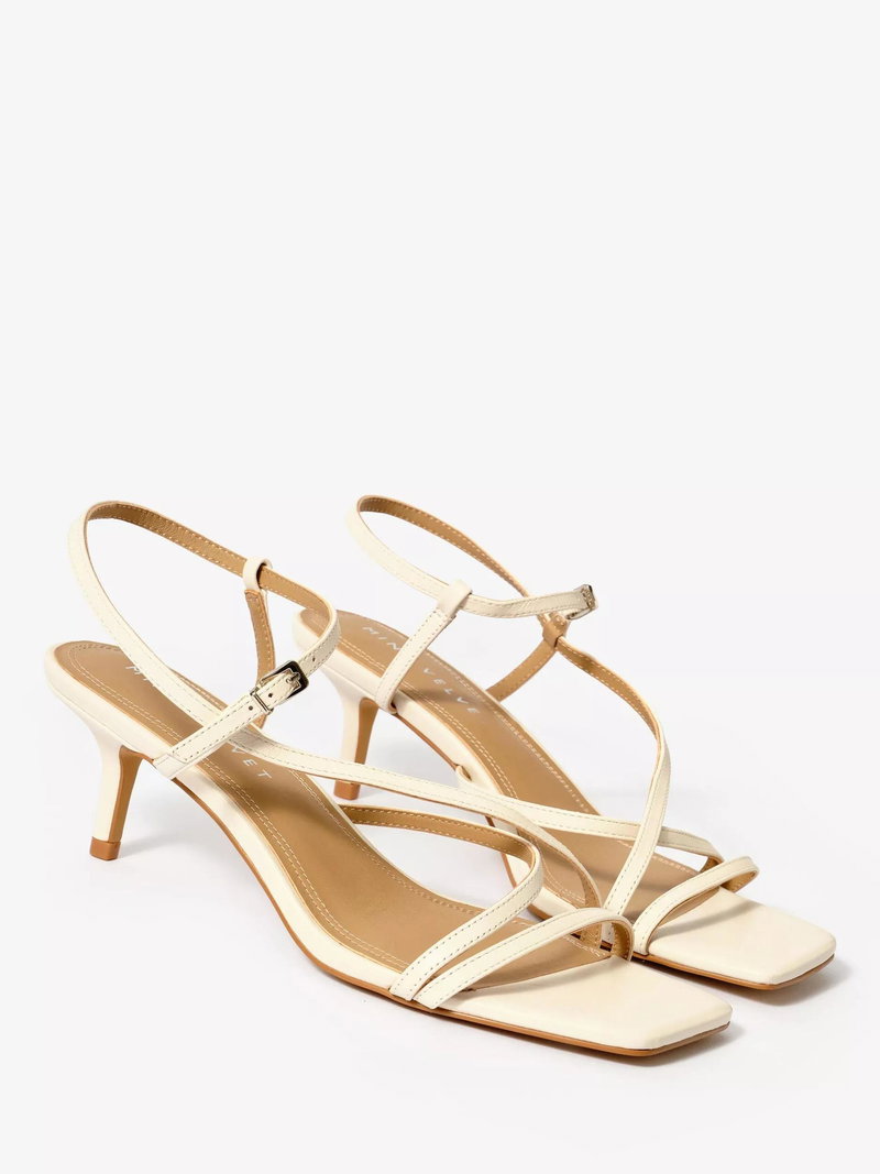 Heeled thin strappy sandals by Mint Velvet with supple leather uppers, an adjustable buckle and a square open toe. A mid-height kitten heel ensures subtle lift for summer days, while the leather lining keeps you comfortable from midday to evening.