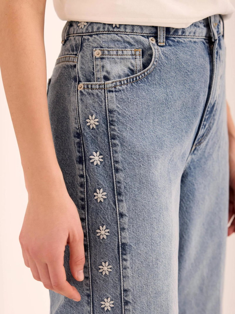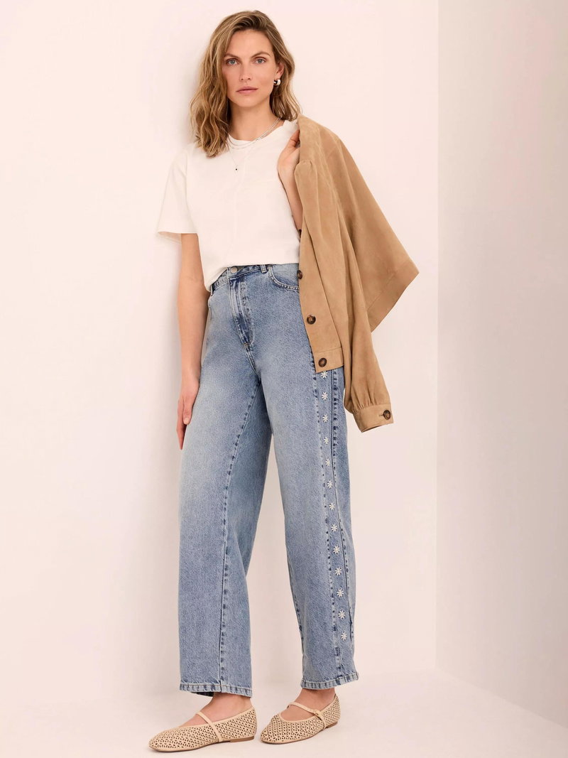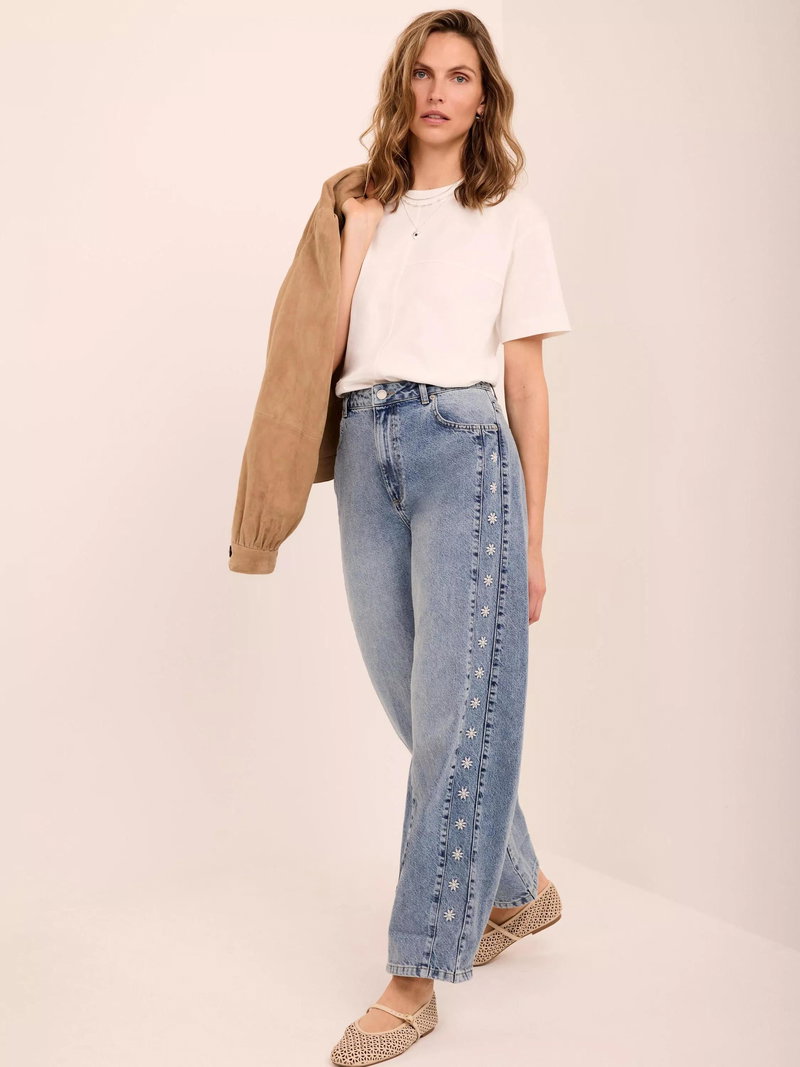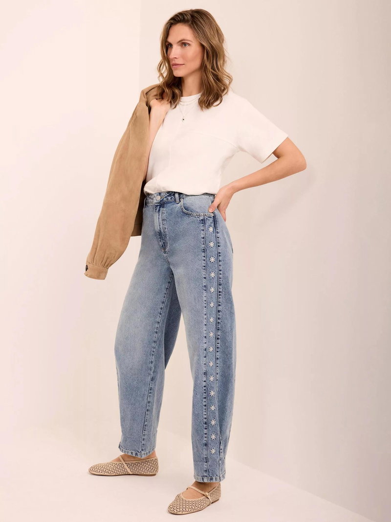 Straight-leg jeans from Mint Velvet, crafted in soft denim with floral embroidery, a mid rise waist and zip fastening.