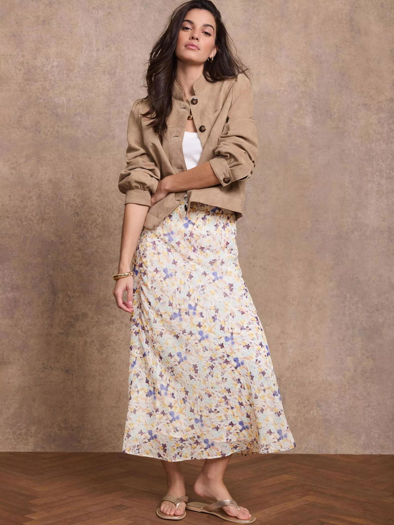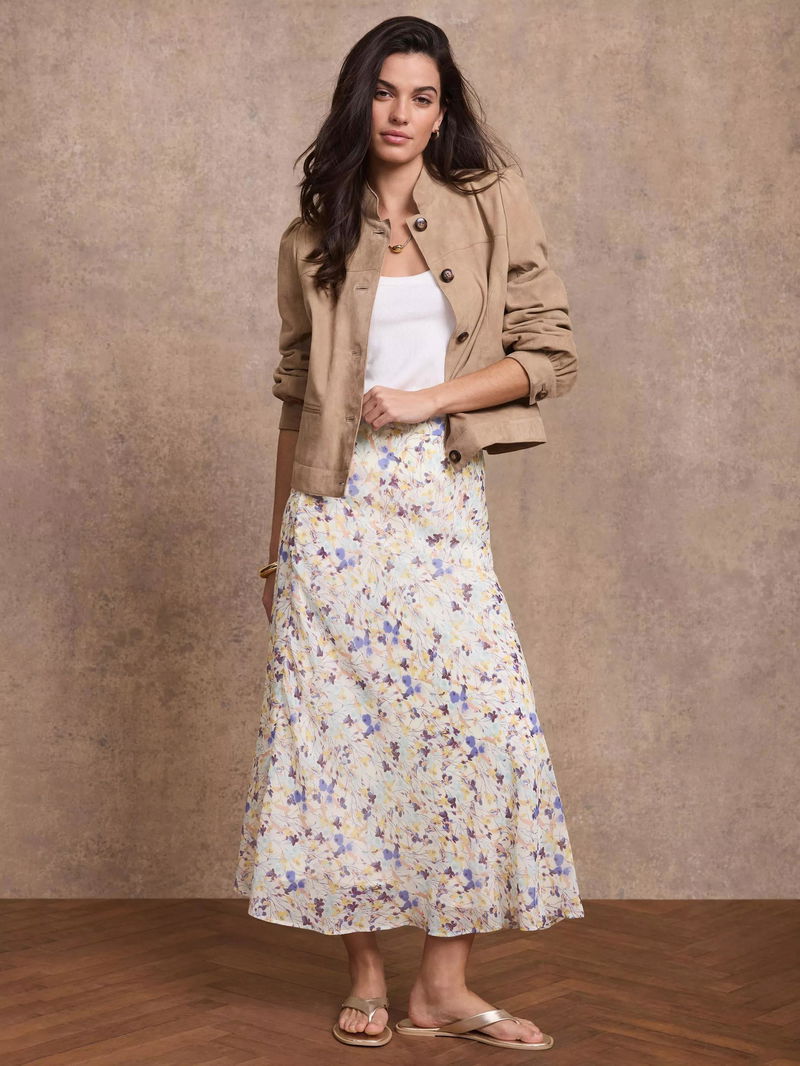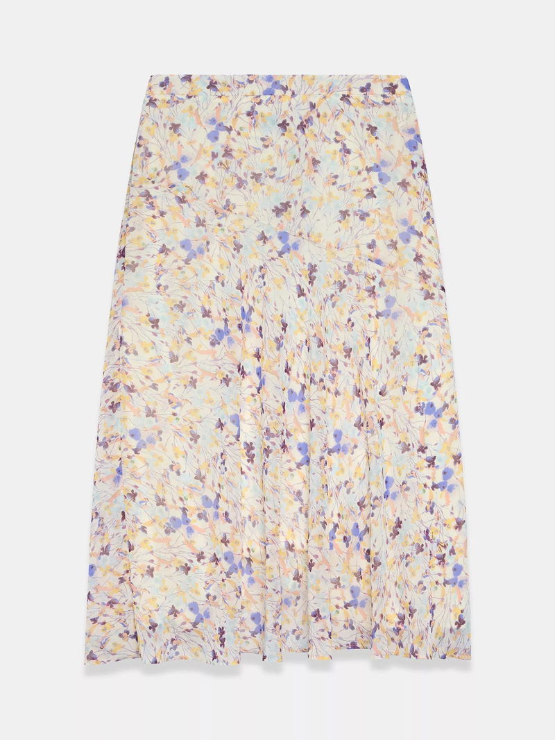 A floral print skirt in a midi silhouette featuring a zip fastening.